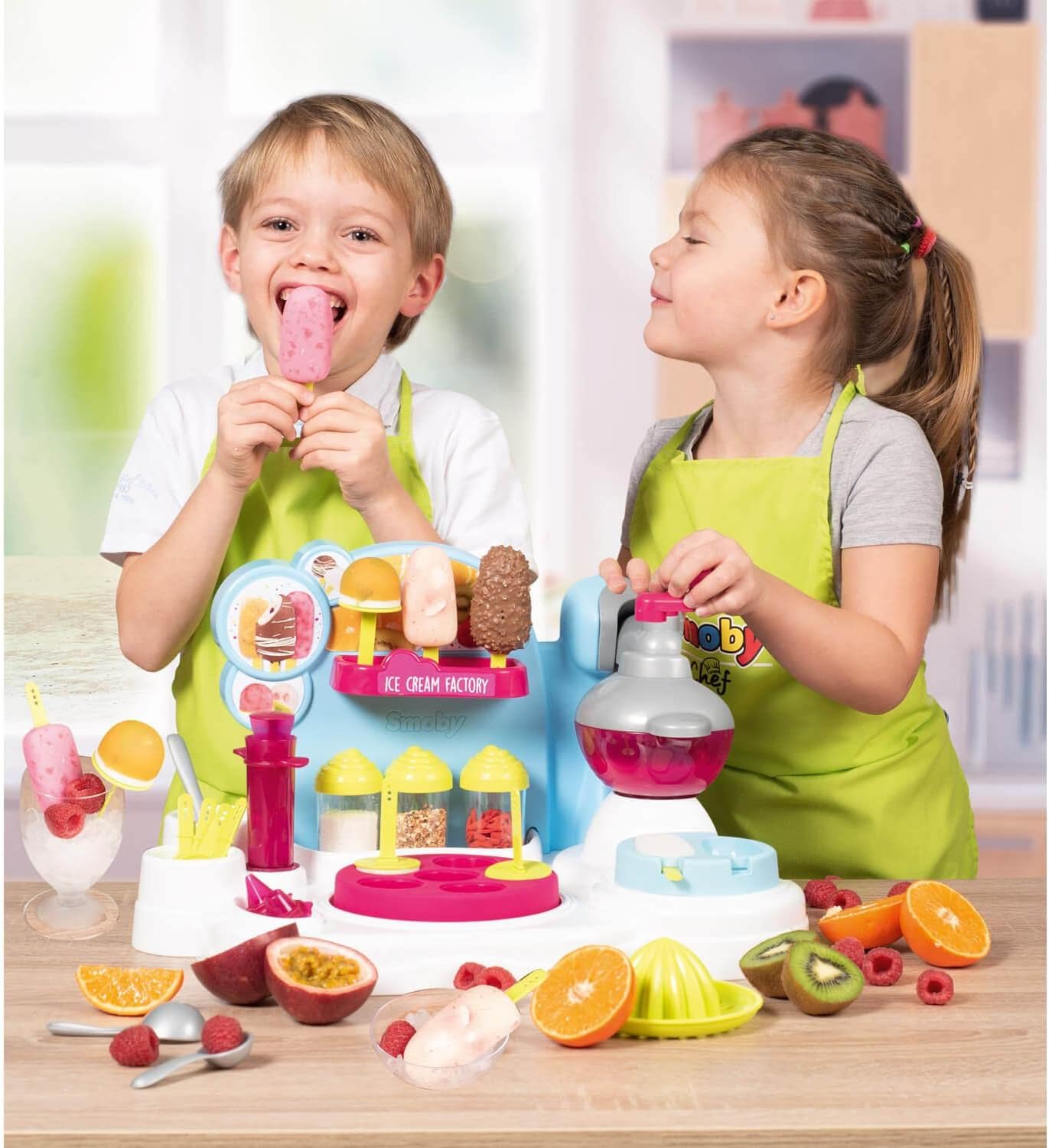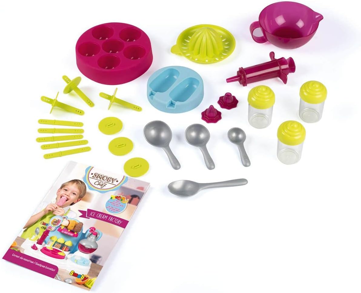 Per fare il gelato fai da te, rinfrescante e delizioso: con i gelati fatti in casa dalla fabbrica di gelati, i giovani colonne possono decidere come gustare, apparire e decorare Veloce e facile – Dopo che gli ingredienti (non inclusi) sono stati mescolati nel mixer, vengono versati nella forma desiderata e poi vanno nello scomparto del ghiaccio. Successivamente vengono decorati a piacimento. Set di gelato e ricette – Oltre alla Smoby Ice Factory, il set include un vassoio per il gelato rimovibile e un libretto di ricette illustrato. Tutti i materiali sono adatti alla saliva e agli alimenti. Fantastica attività in estate – raffreddamento durante le vacanze estive? La macchina per il ghiaccio è l'occupazione ottimale nelle giornate calde o per il compleanno dei bambini, adatta per bambini a partire dai 5 anni. Smoby Qualità dal 1924: grazie ai costanti controlli di qualità, alla lunga esperienza, all'uso di materiali di alta qualità e ai più moderni impianti di produzione, garantiamo giocattoli sicuri.