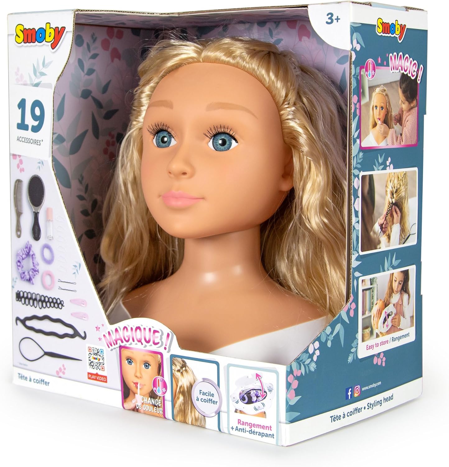 Questo è un giocattolo di Smoby, un'azienda amata dai bambini di tutto il mondo. Questo giocattolo proviene da una serie che si rivolge principalmente alle ragazze. Questa testa di parrucchiere rappresenta una ragazza con gli occhi azzurri e lunghi capelli biondi lucenti. La testa è dotata di un lucidalabbra magico che può cambiare il colore delle labbra della bambola a seconda della temperatura. Insieme agli accessori ci sono vari accessori per intrecciare i capelli. Con gli accessori in dotazione, ogni piccolo stilista puòuna varietà di innumerevoli creazioni di acconciature, l'unico limite qui è l'immaginazione del bambino. Composizione del kit: testa da parrucchiere, spazzola, pettine, fermagli per capelli, elastici per capelli, accessori per treccia. Con questo meraviglioso set, ogni ragazza può entrare nel ruolo di truccatrice e parrucchiere. Nia non solo darà ai bambini un sacco di divertimento, ma incoraggerà anche lo sviluppo del loro senso di estetica, immaginazione e coordinazione occhio-mano. Il giocattolo è anche un regalo interessante. Il set contiene una testa da parrucchiere e 19 accessori per parrucchiere realizzati in plastica di alta qualità. Il set contiene cosmetici sicuri per i bambini. Dimensioni della confezione: 27,5 x 18 x 30 cm. Altezza della testa di styling: circa 25 cm, il giocattolo è adatto per bambini dai 3 anni in su. Codice produttore: 320317