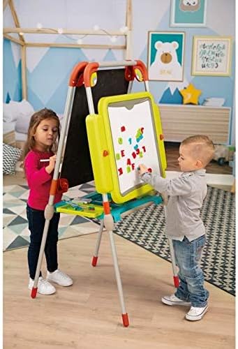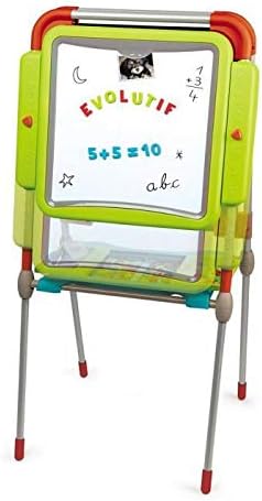 Un quadro dal design moderno e dai colori che cresce insieme ai tuoi bambini! i tuoi bambini potranno esprimere la loro creatività e fantasia disegnando o scrivendo su questa lavagna bifacciale! Grazie alle sue due lavagnette potranno usarlo contemporaneamente senza discussioni e gelosie. Uno con gesso su lavagna fissa sopra la S, e l'altro con pennarello sul lato bianco e magnetico! (6 gessetti e 1 pennarello sono inclusi). Grazie ad un semplice sistema in cui basta ruotare 2 manopole, l'ardesia bianca può essere regolata in altezza rapidamente. I tuoi figli potranno quindi utilizzare questa tavola per molti anni! Potranno anche continuare ad imparare la lettura e la matematica divertendosi. Potrai insegnargli nuove parole e nuovi calcoli grazie alle 72 lettere e numeri magnetici inclusi. L'ampio contenitore con doppi scomparti permetterà loro di avere a portata di mano tutti gli accessori necessari per le loro creazioni. Una volta finito il gioco potranno riporre al suo interno numerosi pennarelli, gessetti e calamite e chiuderlo in un batter d'occhio per non smarrirne nessuno! il tavolo occupa poco spazio; Infatti può essere riposto velocemente grazie alla piegatura facile e compatta. Essendo dotato di 4 piedini in metallo con puntali antiscivolo, il tavolo rimane stabile e solido nel tempo. Viene fornito con 1 set di 72 lettere e numeri magnetici, 1 pennarello cancellabile a secco, 6 gessetti colorati e 1 panno affilato. Dai 3 anni - Produzione francese.