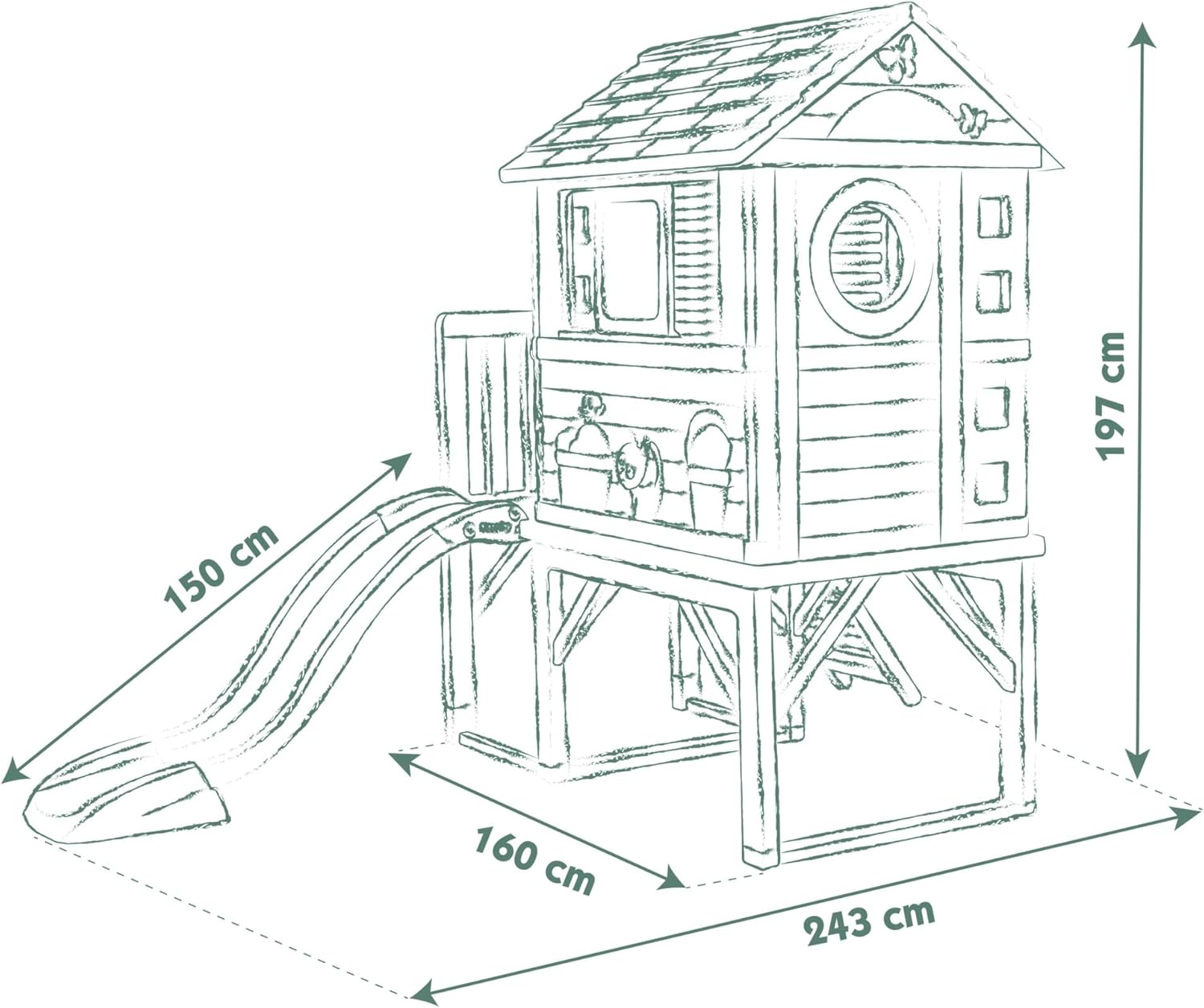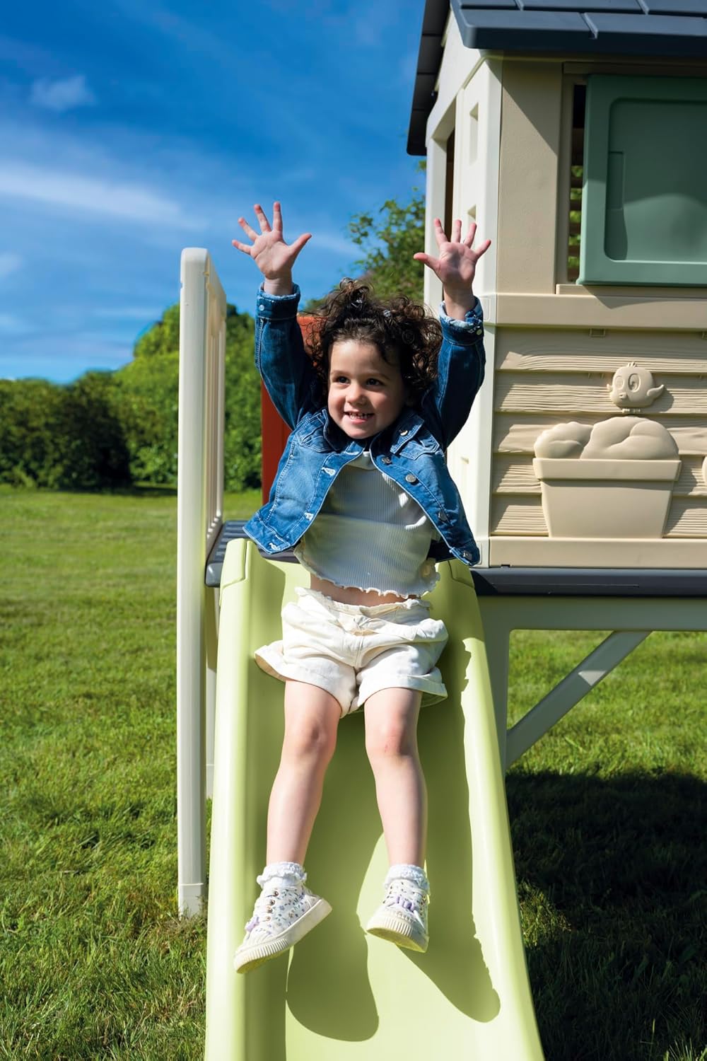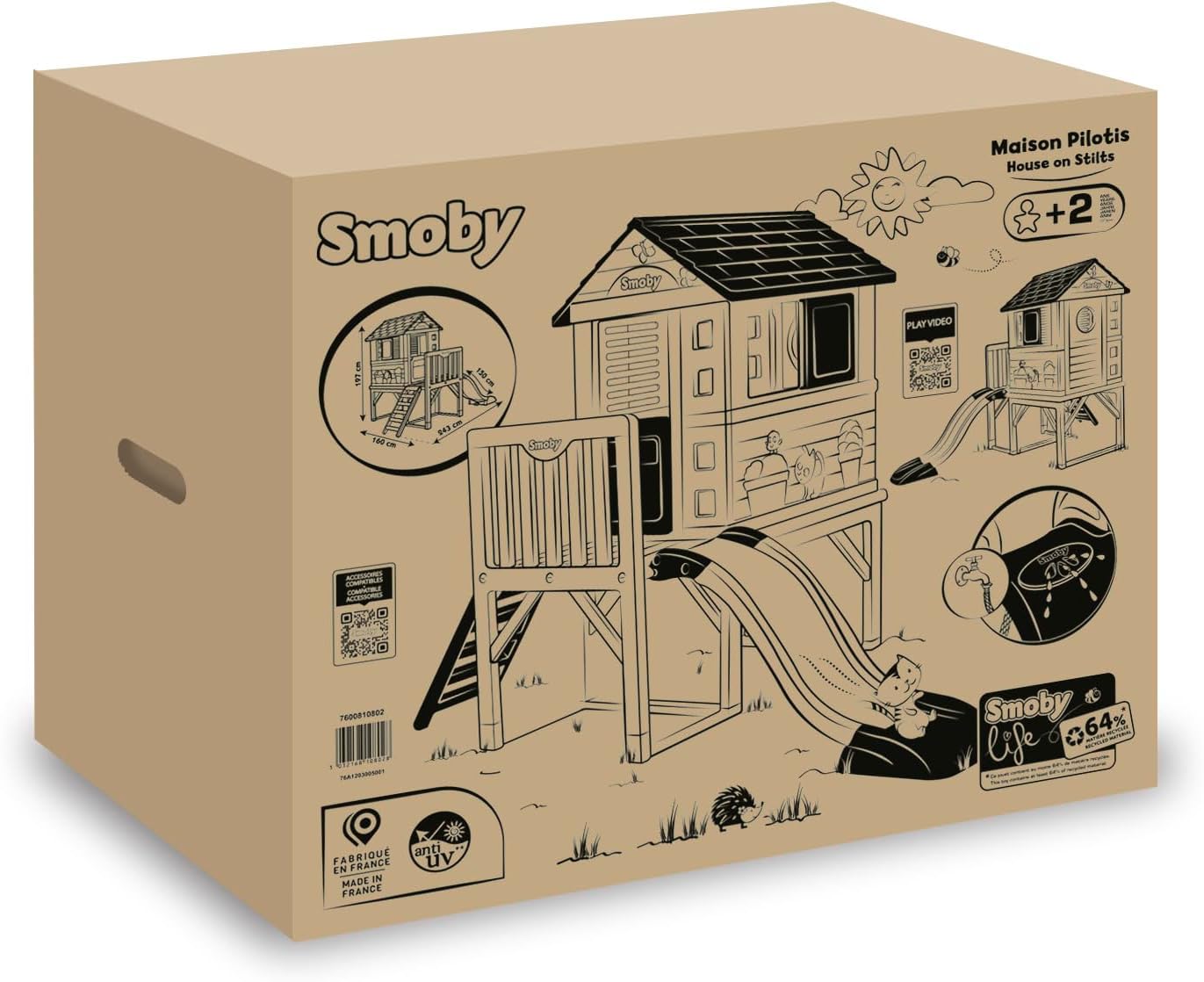 La palafitta Smoby Life è l'ideale per divertirti con i tuoi amici e sviluppare la tua fantasia! Come veri avventurieri, i vostri bambini potranno raggiungere la loro cabina utilizzando la scaletta. Posizionata su una piattaforma alta 70 cm, la casa offre una visione chiara del giardino. Grazie al cancello e alle 3 finestre poste sulle diverse facciate, i vostri piccoli avventurieri avranno tutto sott'occhio! Mentre uno si divertirà scendendo dallo scivolo, l'altro potrà immaginare mille e una storia sotto il portico della baita! I vostri piccoli potranno anche giocare a nascondino grazie alle 2 persiane scorrevoli, che permetteranno loro di vincere la partita! Per divertirti ancora di più puoi aggiungere un campanello elettronico (non incluso): i tuoi bambini potranno così essere avvisati dell'arrivo dei loro piccoli amici! Questa cabina diventerà presto il loro posto preferito dove divertirsi tutto il giorno! Oltre ad essere realizzata con materiali solidi, la casetta è trattata anti UV per garantirne la robustezza e la durata dei suoi colori nel tempo. Dai 2 anni - Produzione francese. Contiene plastica riciclata.