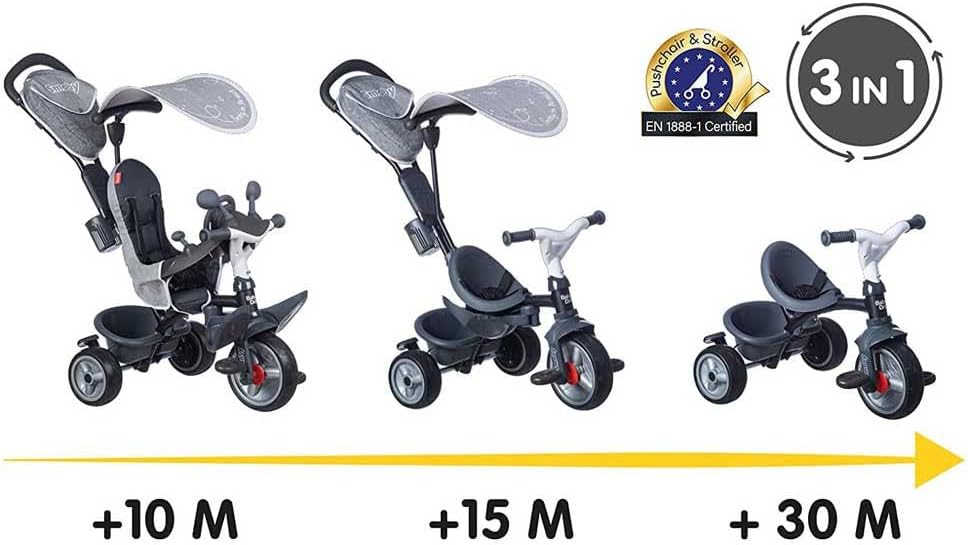 Evolutivo 3 in 1: il triciclo Baby Driver Plus accompagnerà il tuo bambino dai 10 mesi a più di 3 anni, grazie alla sua struttura evolutiva Massima sicurezza: il Baby Driver Plus è robusto e dispone di tutti gli attrezzi necessari alla sicurezza del bambino: freno di parcheggio, imbracatura, archetto di sicurezza, ombrello anti-UV, dispositivo ruota libera Comfort: offre un'ampia area di seduta e uno schienale alto con poggiatesta. Il coprisedile, sfoderabile e lavabile, è completamente imbottito e offre ai bambini un comfort perfetto. Il bambino dispone anche di poggiapiedi ergonomici che possono essere ripiegati. Praticità: dotato di molti accessori che saranno utili quotidianamente: borsa rimovibile, portabottiglie, cassapanca, gancio porta borsa, ombrello orientabile Paese di fabbricazione: Spagna. Garanzia: 2 anni.