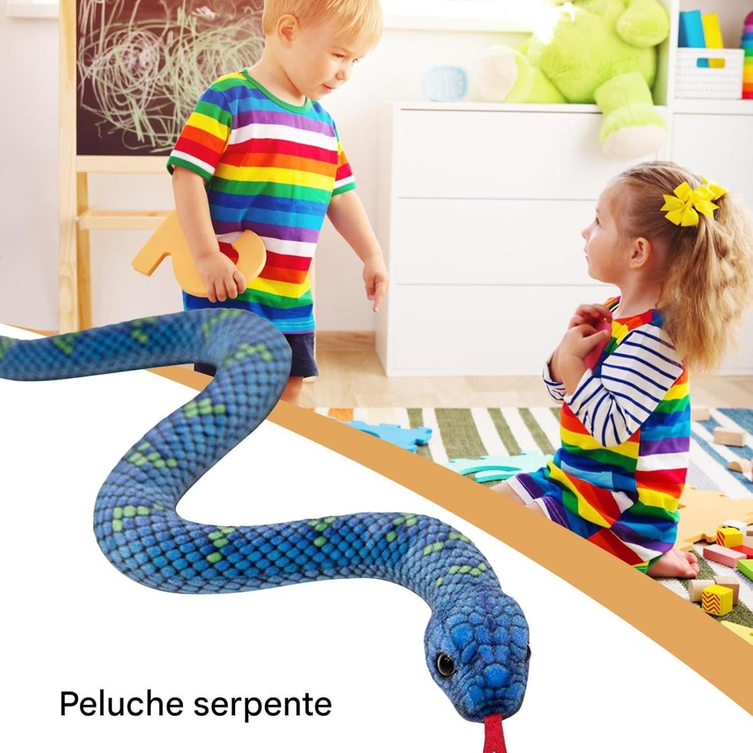 Esperienza realistica: gli oggetti di scena del cobra di cobra party presentano un aspetto realistico con colori vivaci, questo lussuoso serpente offre divertimento coinvolgente che affascina i bambini Materiale sicuro: progettato pensando alla sicurezza dei bambini, questo peluche morbido e coccolone è realizzato con materiale lussureggiante eccellente per una sensazione delicata e confortevole durante il gioco Squisita lavorazione: indulgere nella perfetta intimità del lussuoso serpente, grazie alla sua robusta struttura e alla lavorazione, garantendo anni di e gioia Funzioni multiple: progettato come un giocattolo giocoso per bambini, questo peluche di serpente raddoppia come un sostegno esilarante per divertire e spaventosi giochi di trucco tra gli adulti, garantendo un divertimento infinito Facile pulizia: progettata per la pulizia duratura, questo peluche di serpente è facile da mantenere e non soggetto all'accumulo di polvere, assicurando che rimanga immacolato con un minimo sforzo