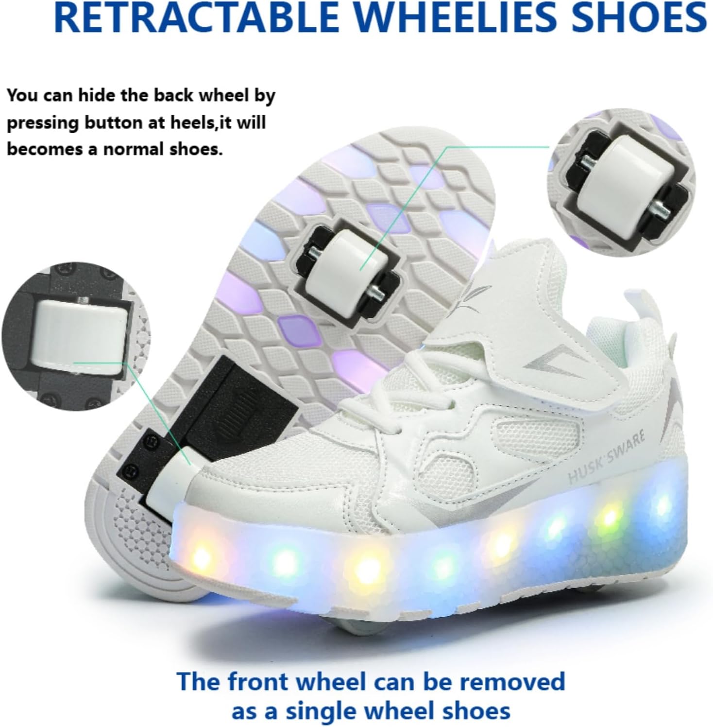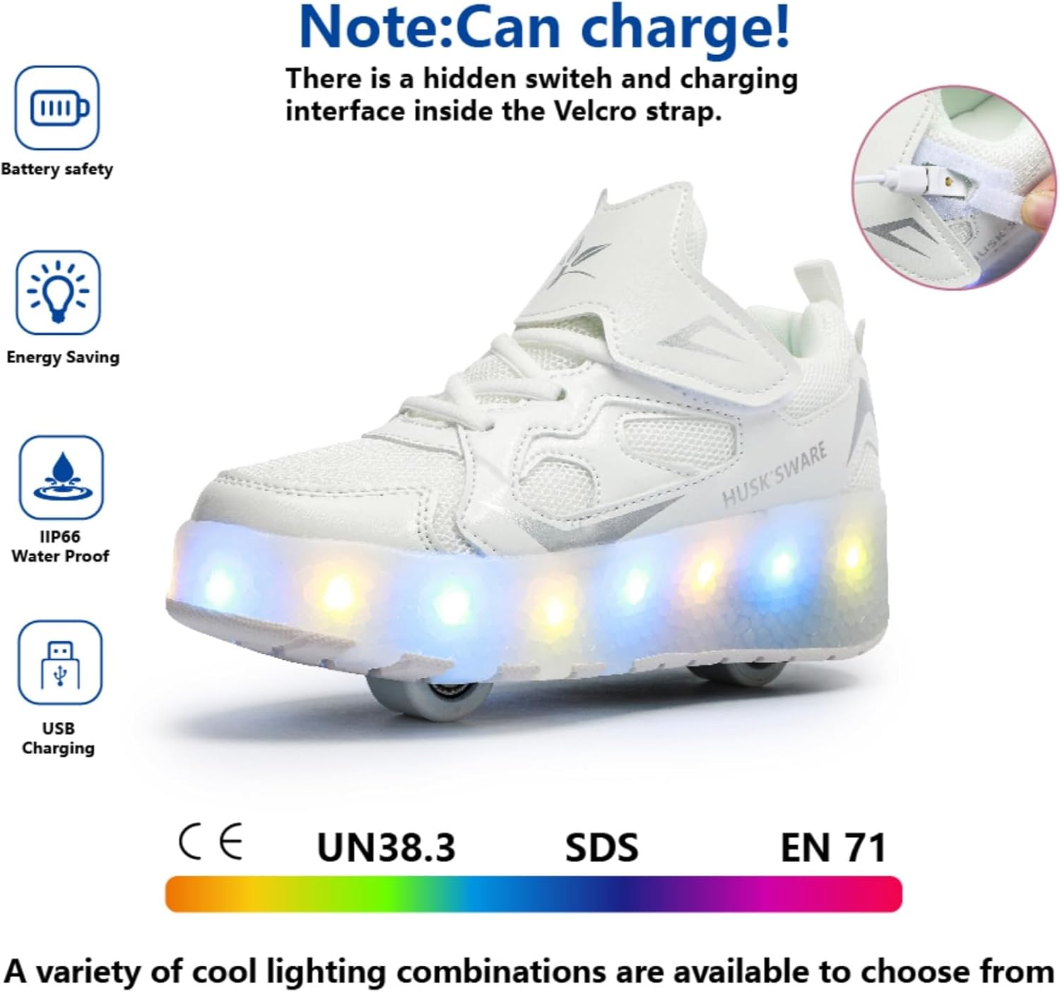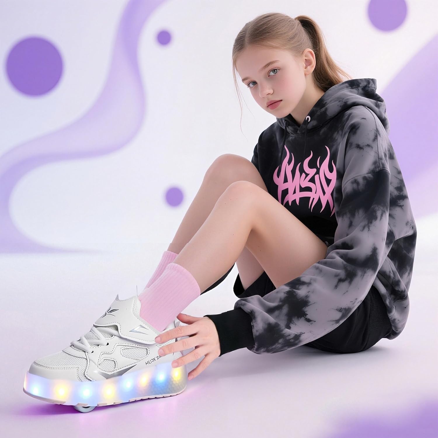 Sneaker per Bambini,Scarpe da Skateboard a Due Ruote,Luce a Cambio Colore Regolabile,Ricarica USB,universali per Ragazzi e Ragazze,Nero Rosa Oro Argento 27–40 EU