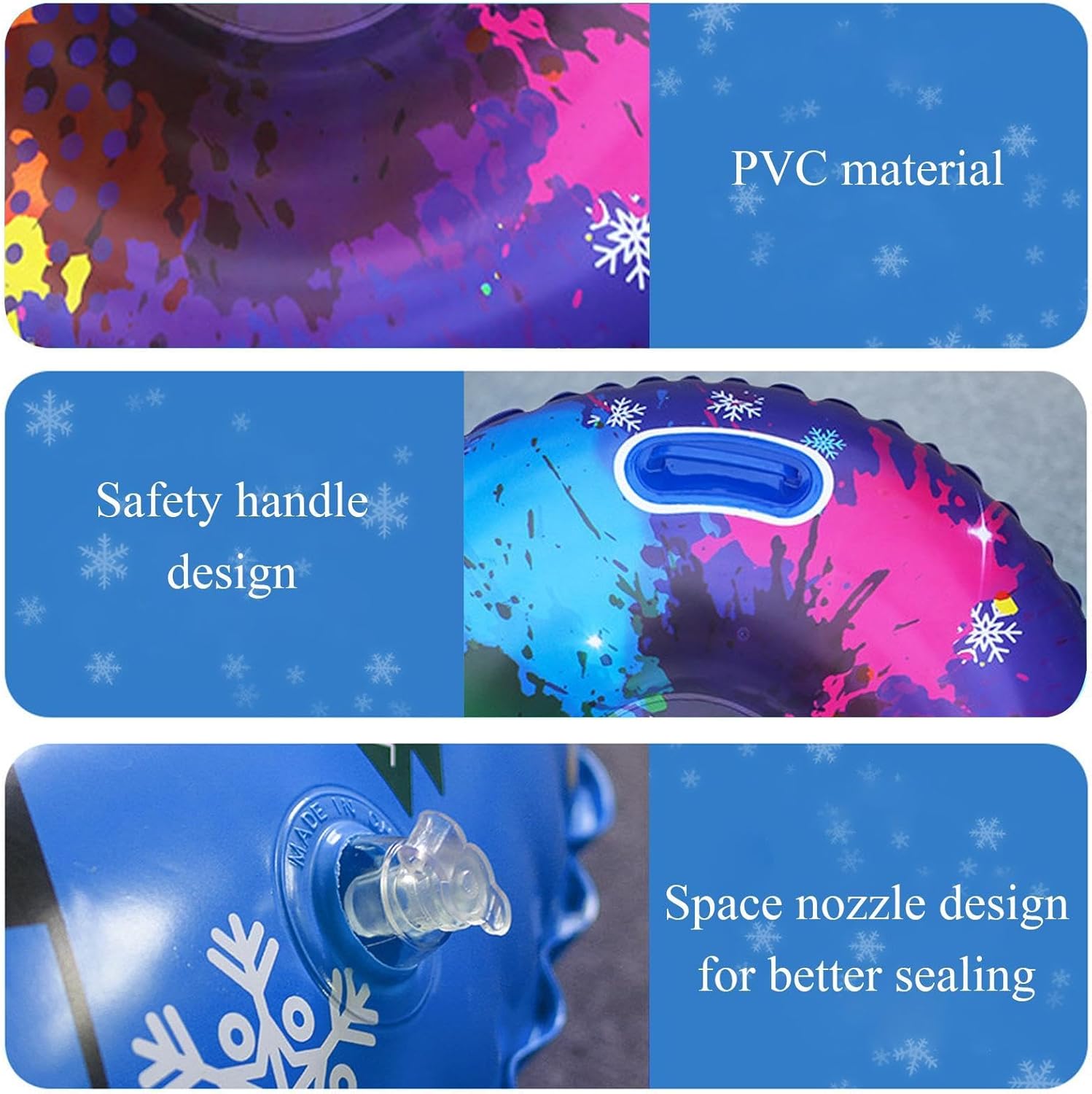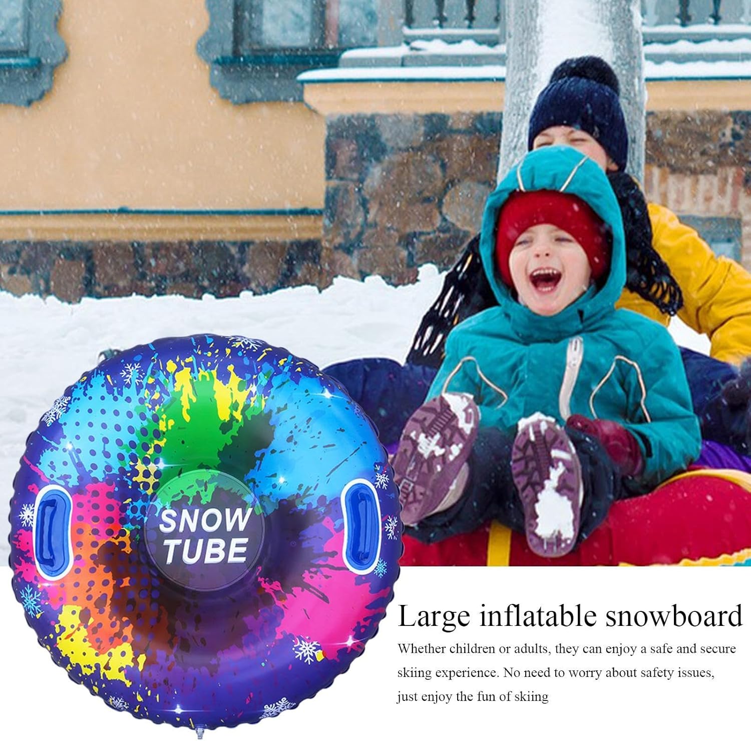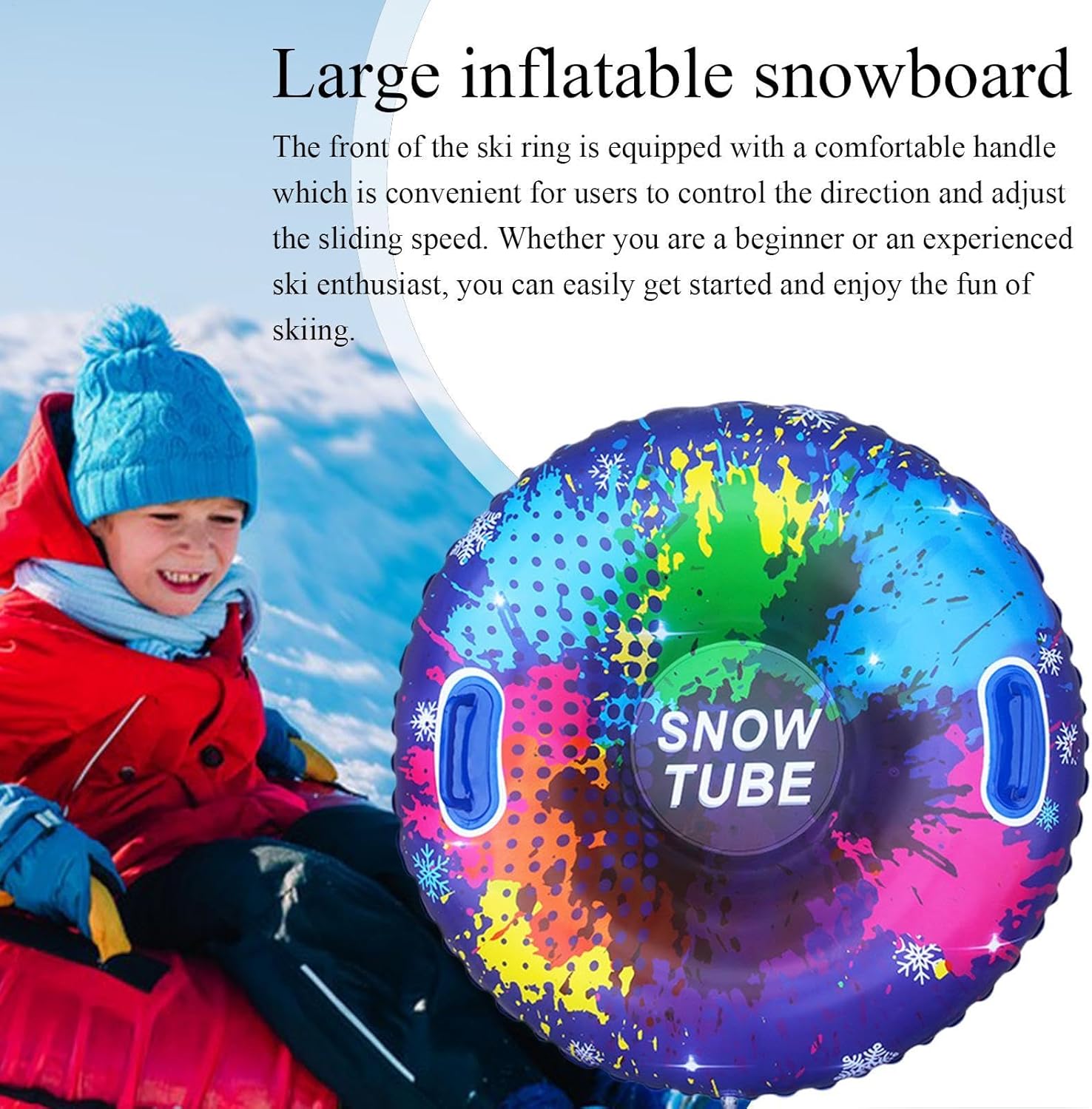 Adatto a più persone: goditi lo sci di squadra con il nostro snowboard gonfiabile, adatto per adulti e adulti. Uno strumento da sci essenziale per attività familiari e feste di amici, condividi il divertimento insieme e crea meravigliosi ricordi che saranno custoditi per sempre. Design vivace e colorato: lascia che le tue attività invernali siano emozionanti con il nostro snowboard gonfiabile. La sua grafica accattivante illumina le piste innevate e aggiunge un vivace tocco di colore che rende lo sci più divertente e memorabile. Non mimetizzarti nel bianco paesaggio invernale, sii al centro dell'attenzione con questa attrezzatura essenziale. Stabilità senza pari: il nostro snowboard gonfiabile presenta un design anti-inciampo, offrendo un'esperienza sicura e stabile per adulti e bambini. La struttura appositamente progettata garantisce stabilità ed elimina i problemi di sicurezza, una divertente esperienza di scivolamento. Materiale: realizzato in materiale ispessito per l'uso a basse temperature, questo snowboard gonfiabile garantisce prestazioni ottimali nella stagione fredda. La texture morbida e flessibile migliora l'esperienza di guida, mentre il materiale resistente alla temperatura mantiene la sua forma nel tempo. Facile da controllare: sperimenta una manovrabilità senza sforzo e affronta le piste con sicurezza. Questo snowboard gonfiabile offre un facile controllo direzionale e regolazione della velocità. Con una comoda maniglia sulla parte anteriore, è facile da avviare ed è perfetto per principianti e sciatori esperti