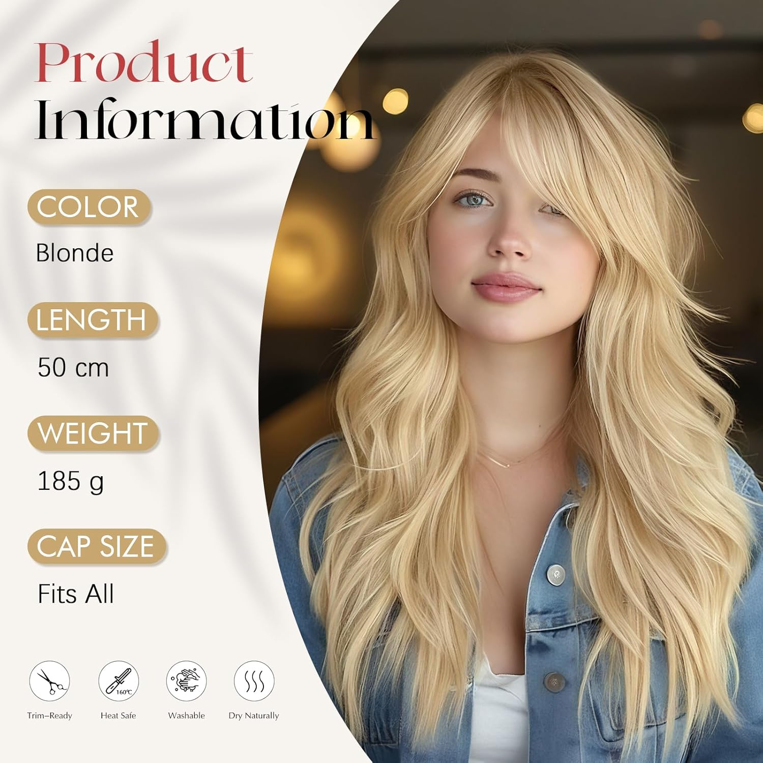 [Parametri del Prodotto]: Questa parrucca è realizzata con fibre di alta qualità ed è particolarmente morbida e naturale al tatto. È resistente al calore , quindi puoi modellarla a tuo piacimento con un ferro arricciacapelli o una piastra a temperature inferiori a 180 °C. Con una lunghezza massima di 50 cm , è bella e leggera e non appesantisce il cuoio capelluto. [Aspetto Gradevole]: Colore naturale , voluminoso e soffice , molto simile ai capelli veri. La lunghezza della frangia accuratamente realizzata può essere accorciata e regolata in base alle esigenze , consentendo di scegliere liberamente tra riga centrale , frangia obliqua e frangia dritta. La zona della testa è dotata di un cuoio capelluto realistico , che conferisce all'acconciatura un aspetto naturale e realistico. [Cappuccio Regolabile e Traspirante per Parrucca]: Con fodera integrata in rete rosa , traspirante e confortevole da indossare. Cinturino regolabile , adatto alla maggior parte delle circonferenze della testa (da 50 a 58 cm). Può essere regolato in base alla circonferenza della testa per garantire una vestibilità sicura e salda per tutto il giorno. [Adatta a Diverse Occasioni]: Questa parrucca può essere indossata in qualsiasi momento dell'anno. È disponibile in molti colori diversi , così potrai variare facilmente il tuo stile. I colori naturali sono adatti per la vita quotidiana , per fare shopping o per matrimoni e feste. I colori vivaci e le mèches sono adatti per feste , cosplay e carnevale. [Avviso Importante]: Tutte le parrucche ricci possono perdere leggermente i capelli all'inizio , ma questo è normale. Allo stesso tempo , il colore può variare leggermente a causa delle impostazioni dello schermo del dispositivo elettronico o delle condizioni di illuminazione. Dopo l'uso , la parrucca deve essere spazzolata leggermente e mantenuta asciutta. In caso di domande , non esitate a contattarci , vi risponderemo il prima possibile.