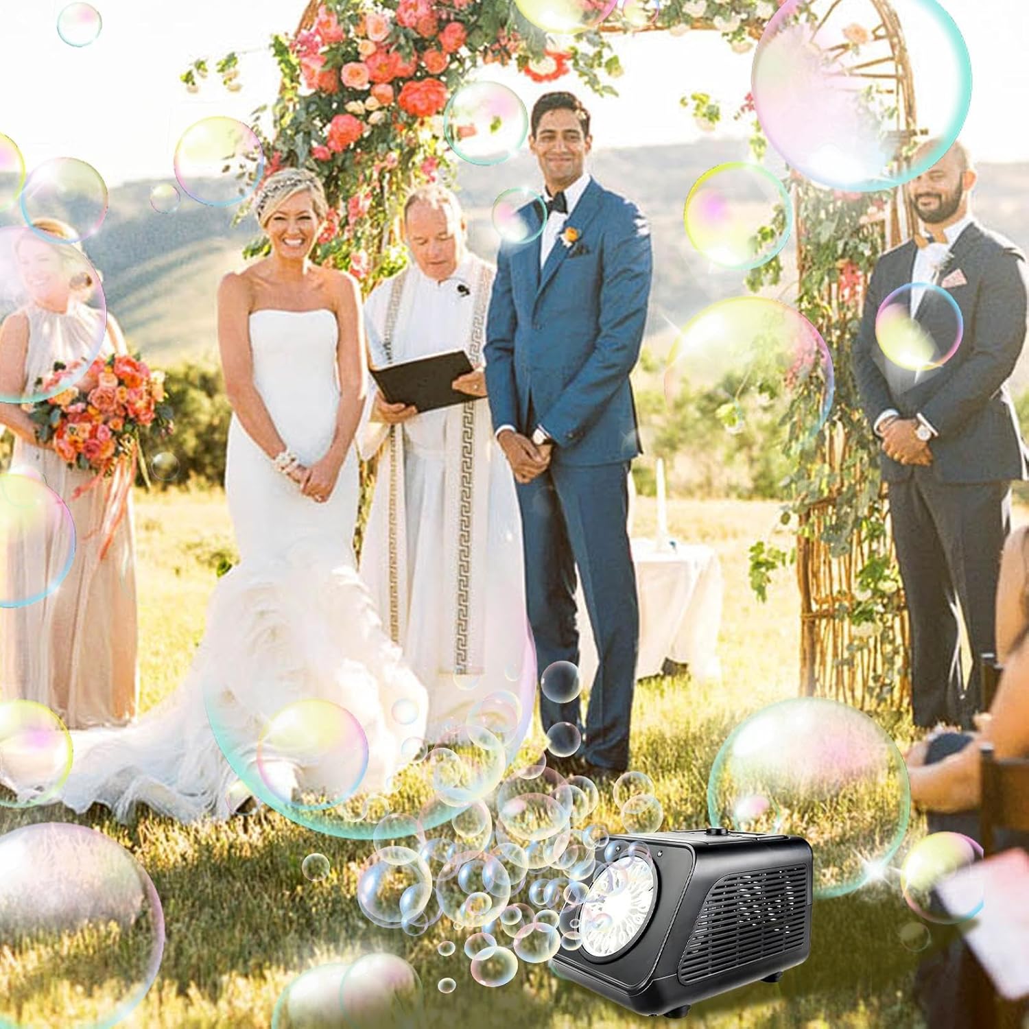 Migliora istantaneamente l'atmosfera: crea rapidamente un numero enorme di bolle, offrendo un effetto incredibile che migliora l'atmosfera di qualsiasi festa o evento. Utilizzo conveniente: goditi un'esperienza di soffiaggio delle bolle senza interruzioni con la nostra macchina per bolle progettata per un facile utilizzo. Basta aggiungere il liquido per le bolle e accendere l'alimentazione senza bisogno di complicate configurazioni. Bubble party piacevoli e senza sforzo assicurati. Scena applicabile: cospargi un tocco di fascino in ogni occasione con la nostra macchina per bolle. Grazie all'utilizzo delle piastrelle versa, è per matrimoni, concerti e celebrazioni di ogni tipo. Crea ricordi incantevoli che tu e i tuoi ospiti custodirete per sempre. Esperienza di festa massimizzata: le bolle sono divertenti per tutti, adulti o bambini, aumentando il valore di interattività e intrattenimento 'evento. Massimizza l'attrattiva della folla: le bolle prodotte dalla macchina per bolle possono mostrare colori colorati sotto l'irradiazione della luce, rendendo l'intero spettacolo o attività più accattivante e migliorando l'attrattiva visiva.