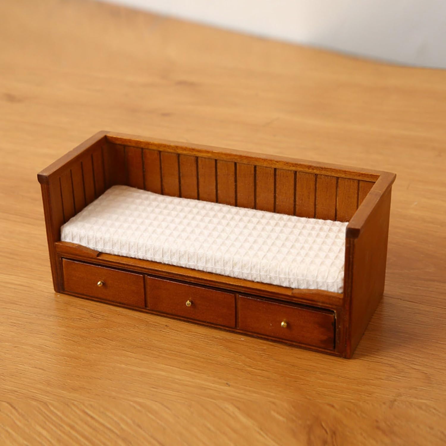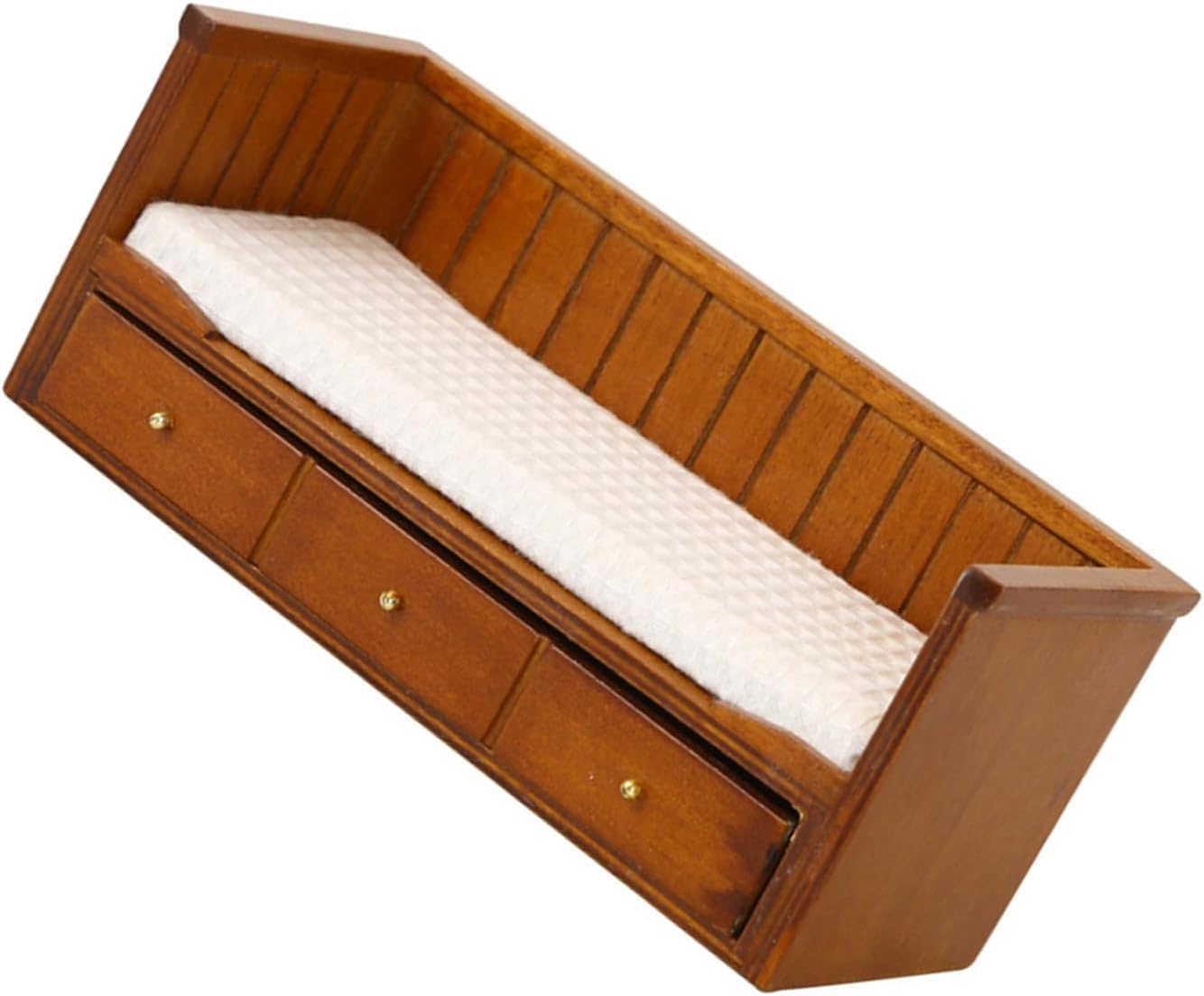 Materiali in legno. Modello dall'aspetto eccellente, non facile da deformare e innocuo, molto vicino alla realtà. Ottimi oggetti di scena per la fotografia Modello di letto singolo elaborato e vintage, compatto e classico, l'alto grado di riduzione è un regalo molto divertente per coloro che amano l'artigianato dei decoratori di case delle bambole realizzati con materiali in legno, questo letto visivamente accattivante