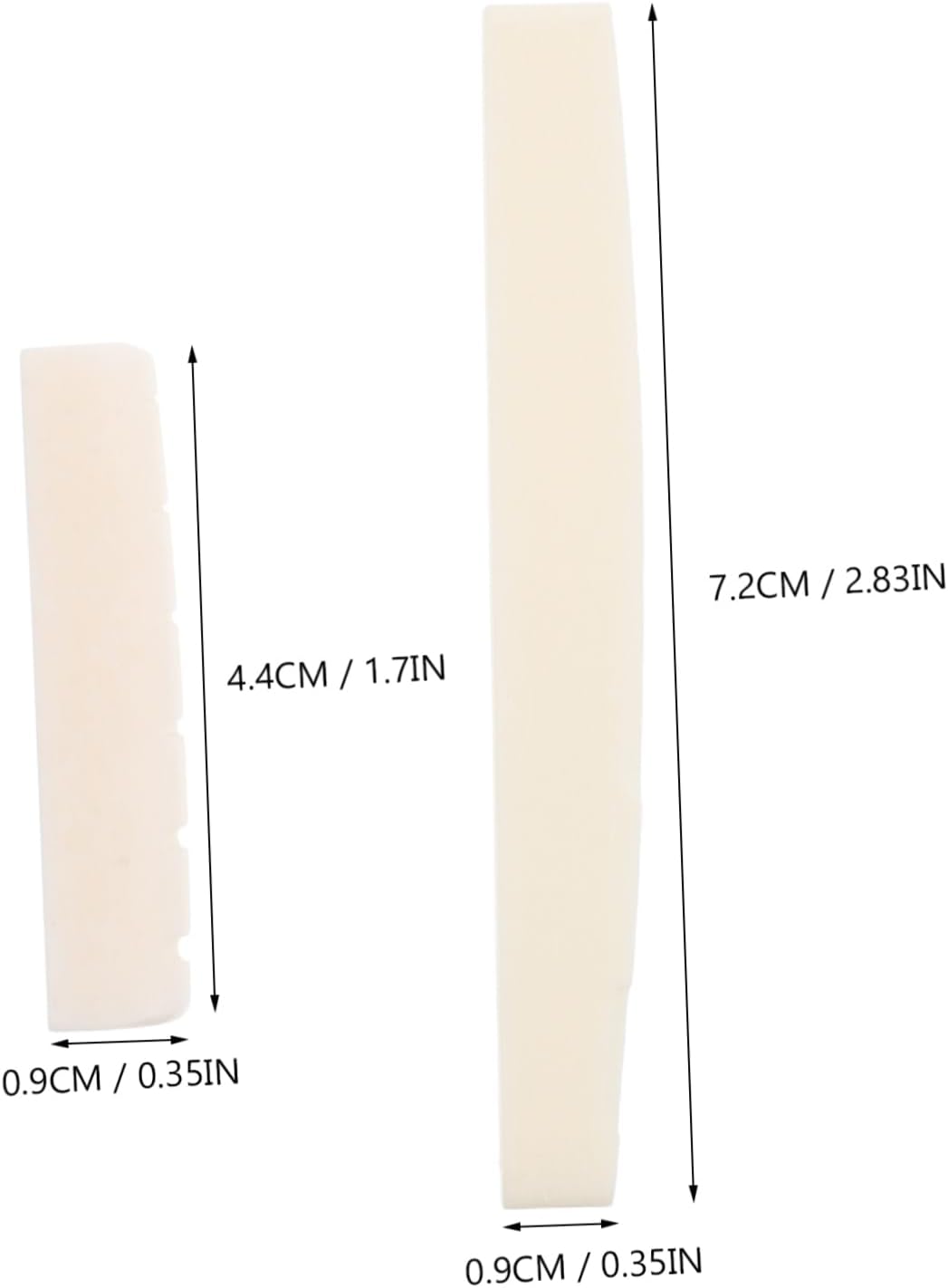 Ponte e capotasto con suonabilità: riduce l'attrito delle corde, offre un'esperienza di gioco più e un migliore allineamento delle corde, parti di ricambio per capotasto per chitarra, forniture per chitarra Sella per ponte universale: adatta a un'ampia di chitarre acustiche e folk, questo set è ideale per musicisti professionisti che per hobbisti, ponte di ricambio, sella per chitarra Materiale in osso di bue: realizzato in osso di bue, questo set offre una durata eccezionale e contribuisce a un suono più ricco e vibrante, ponte regolabile, per chitarra Miglioramento del suono : la sella del ponte in osso riduce al minimo le indesiderate e massimizza il contatto delle corde, della chitarra, sostituzione del ponte della chitarra Usura ridotta delle corde: il tipo di capotasto in osso riduce al minimo l'attrito, prolungando la durata delle corde e garantendo prestazioni costanti, accessori per la manutenzione della chitarra folk, sostituzione del ponte