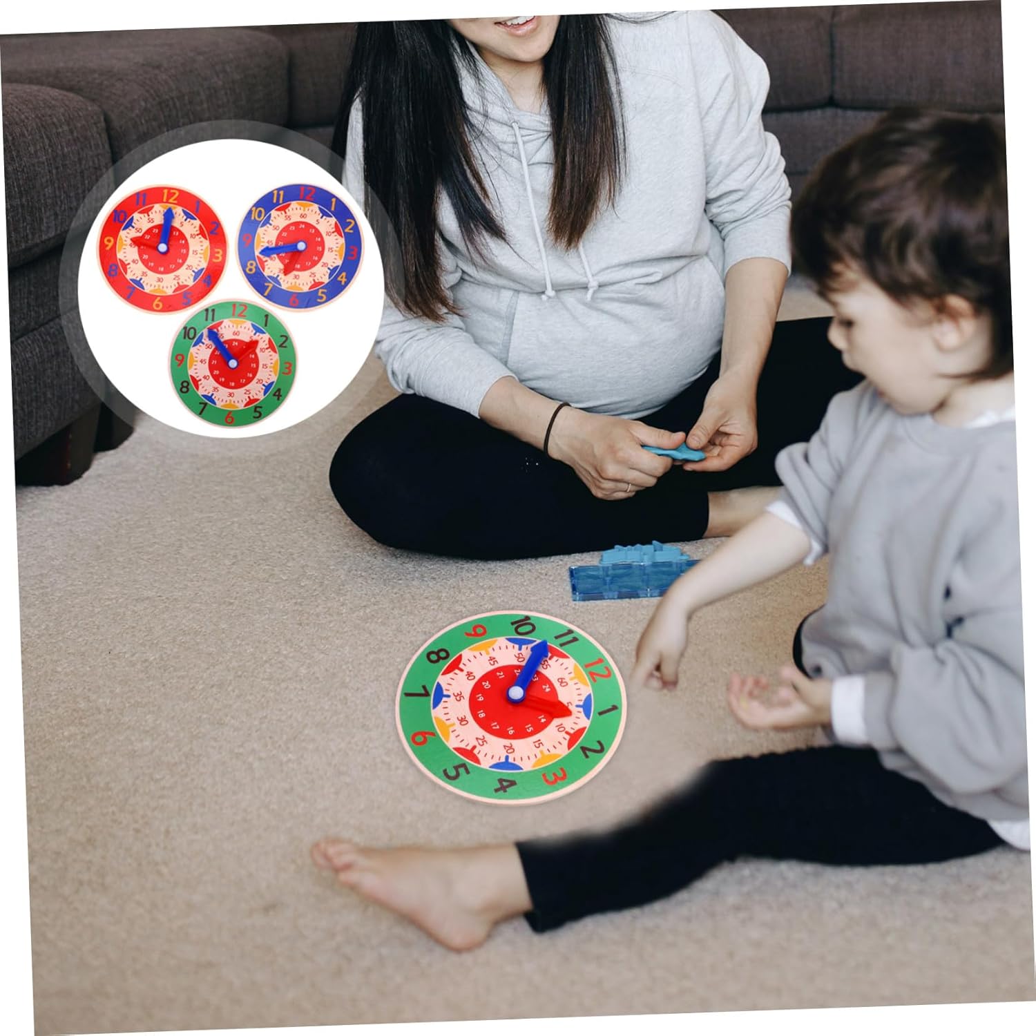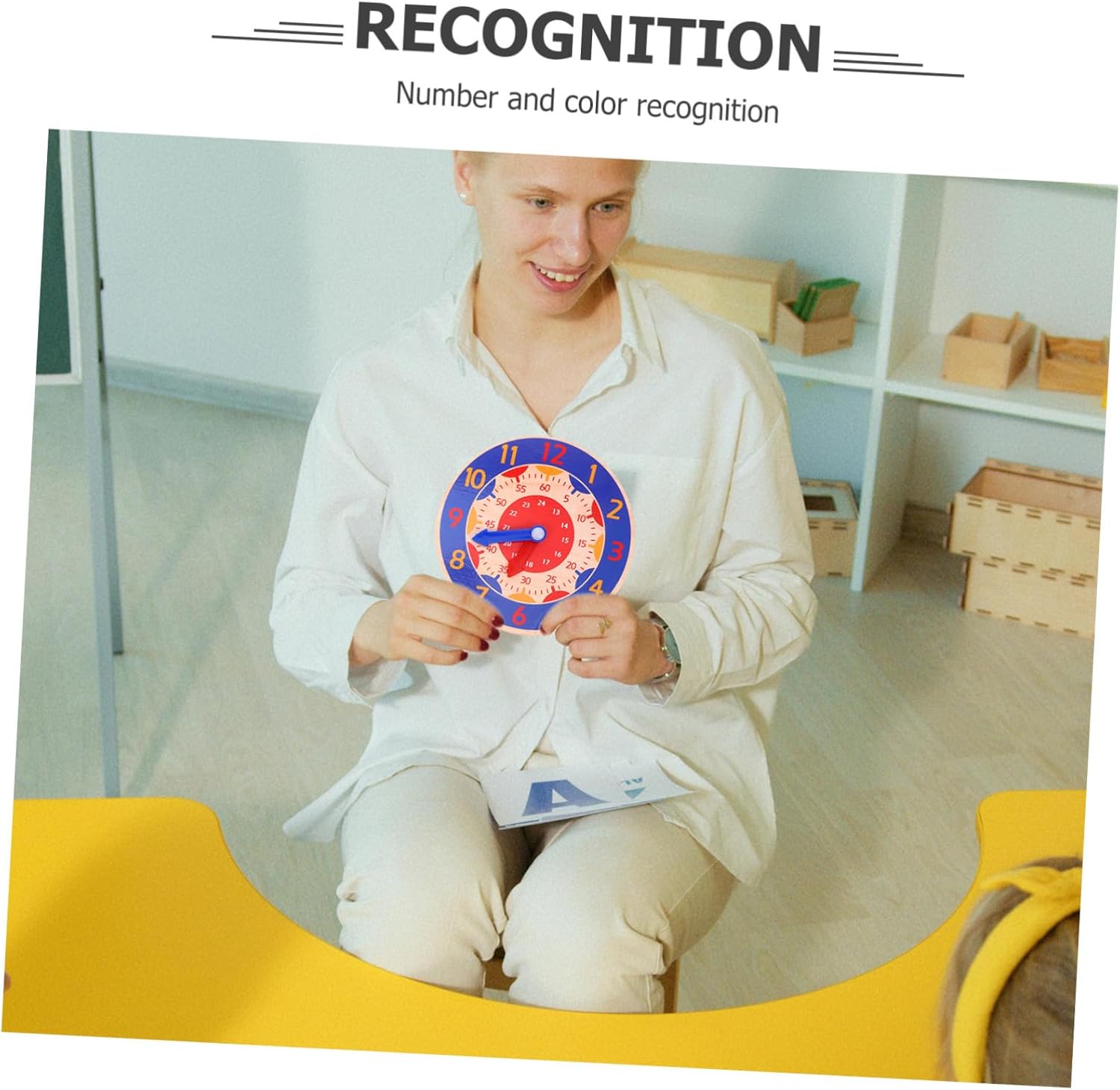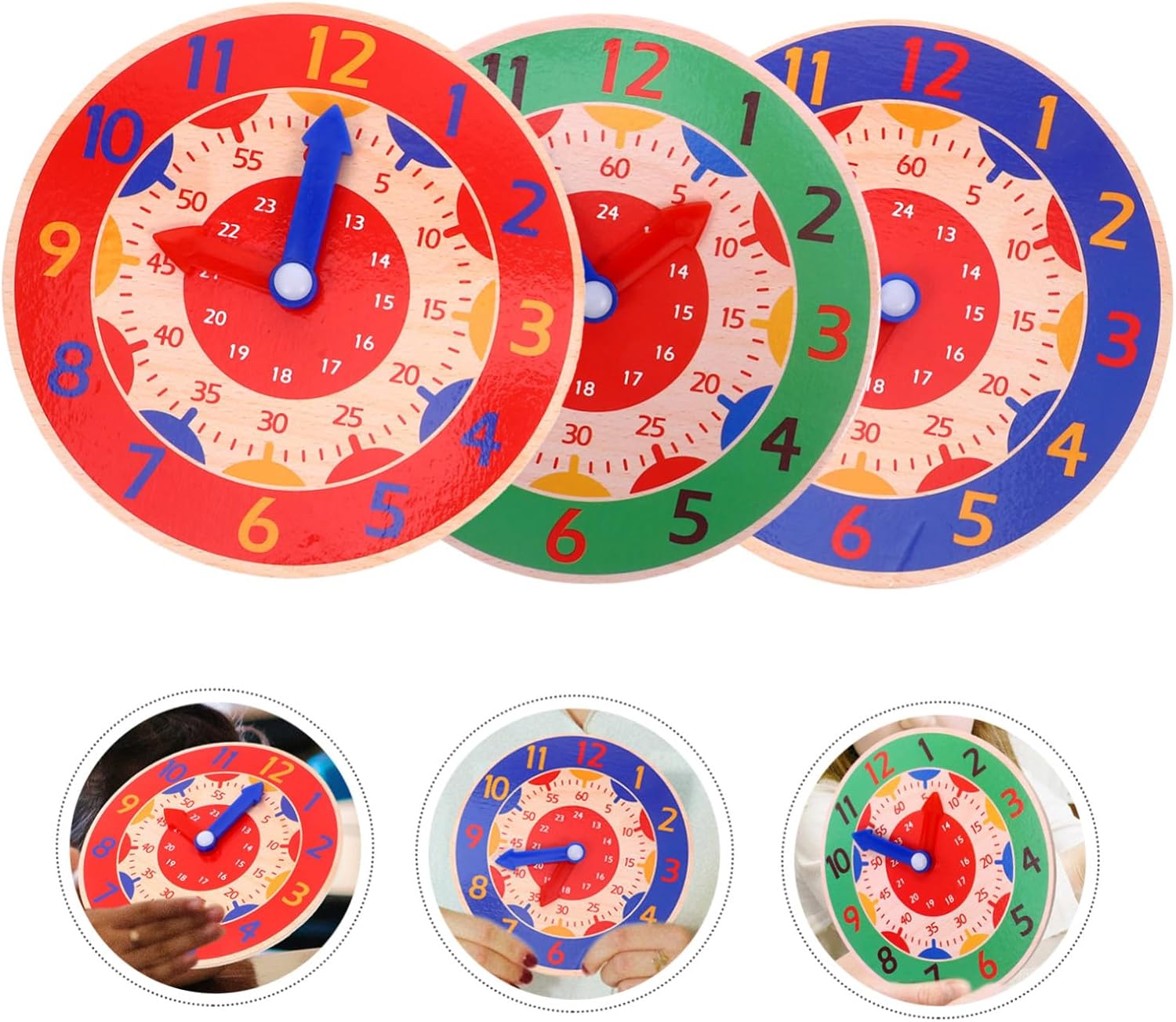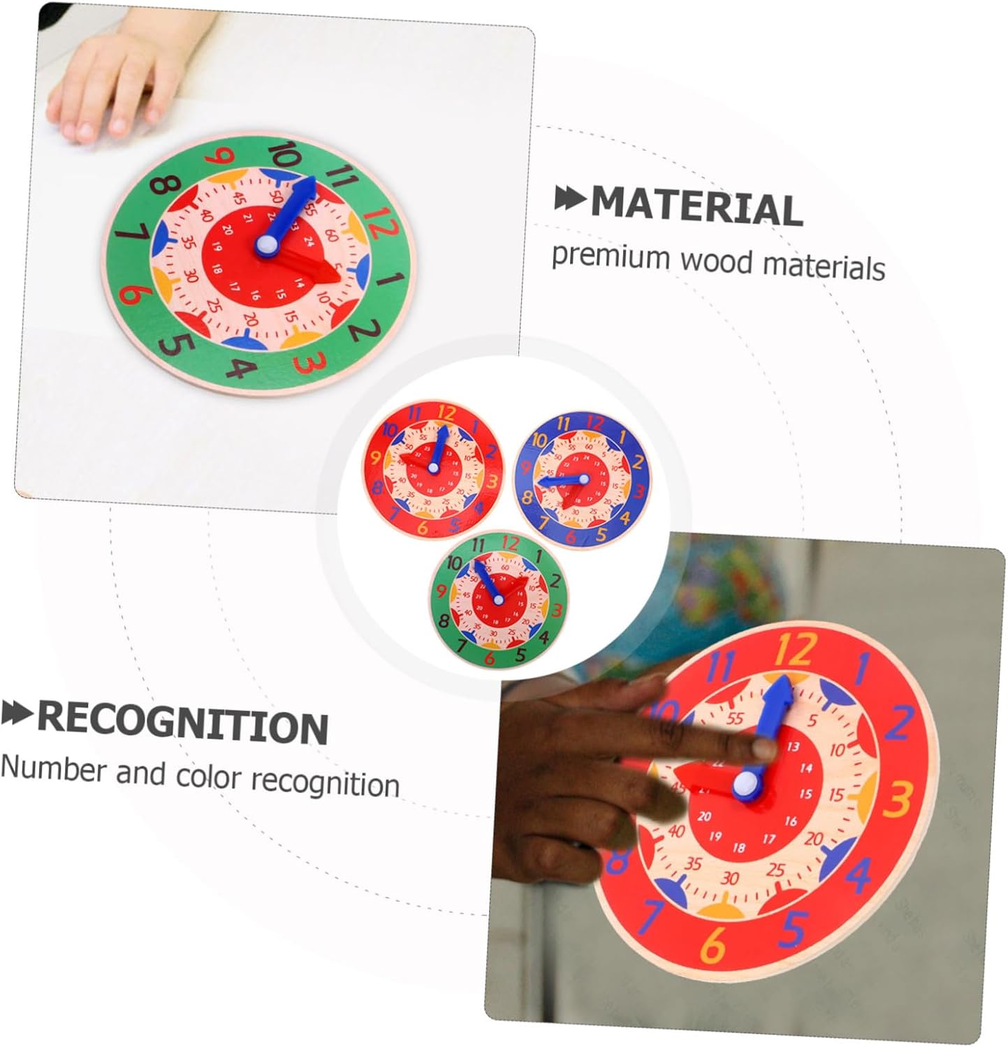 Set di orologi didattici: ampia gamma di applicazioni, può essere utilizzato come strumento didattico, casa, decorazione di feste o giocattolo per bambini per soddisfare le tue esigenze, orologio giocattolo educativo per bambini Orologio giocattolo creativo: riconoscimento di numeri e colori, questo orologio giocattolo può aiutare i bambini a imparare sia il tempo che i colori, orologio cognitivo modello di orologio giocattolo per i più piccoli: interessante ed educativo, puoi regalare questo orologio ai tuoi bambini per la festa dei bambini, compleanno, ecc. regalo, orologio in legno Divertente orologio giocattolo: lucidatura liscia e attenta, bordi e angoli lisci, non è facile per ferire le mani dei bambini, modello di orologio per bambini Pratico giocattolo per orologio: impara a riconoscere le lancette delle ore e dei minuti, capisci la differenza tra ora analogica e digitale, riconosci l'ora, ecc., giocattolo per il riconoscimento del calendario