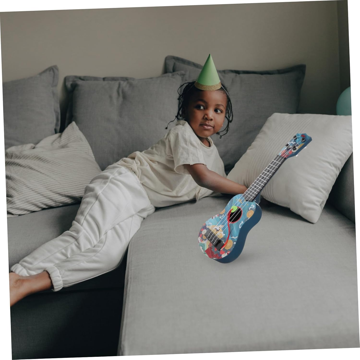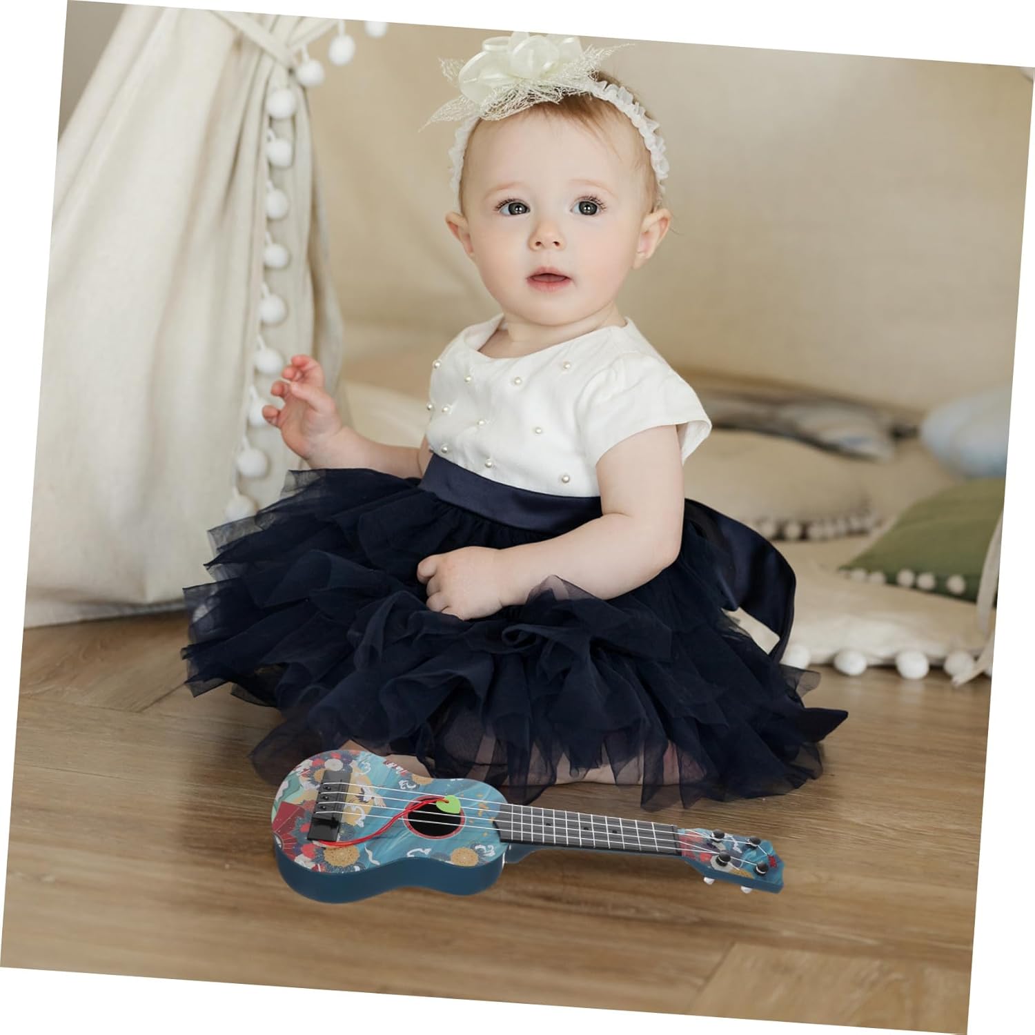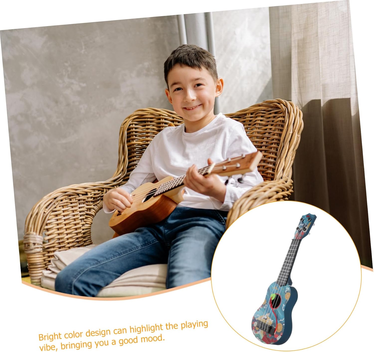 Ukulele - per - Realizzato con materiali plastici accuratamente selezionati, funge da giocattolo per chitarra Mini giocattolo per chitarra - Questo modello di chitarra sembra una vera chitarra e può attirare l'attenzione dei bambini. Giocattolo per l'apprendimento musicale precoce Mini chitarra - il materiale selezionato è sicuro e durevole, è innocuo e inodore e può essere utilizzato con sicurezza Mini giocattolo musicale - modello di strumento musicale, adatto a tuo figlio per decorare la sua stanza, ukulele giocattolo per chitarra per bambini Giocattolo per chitarra per bambini piccoli - uso di materiale plastico di alta qualità, molto robusto e adatto per un simpatico giocattolo per chitarra