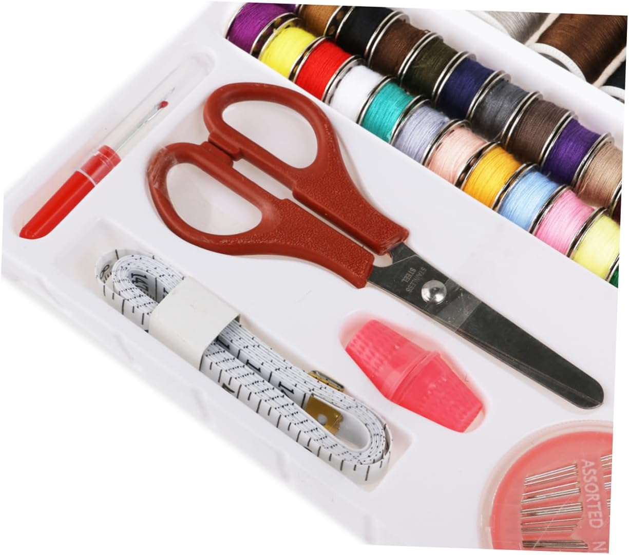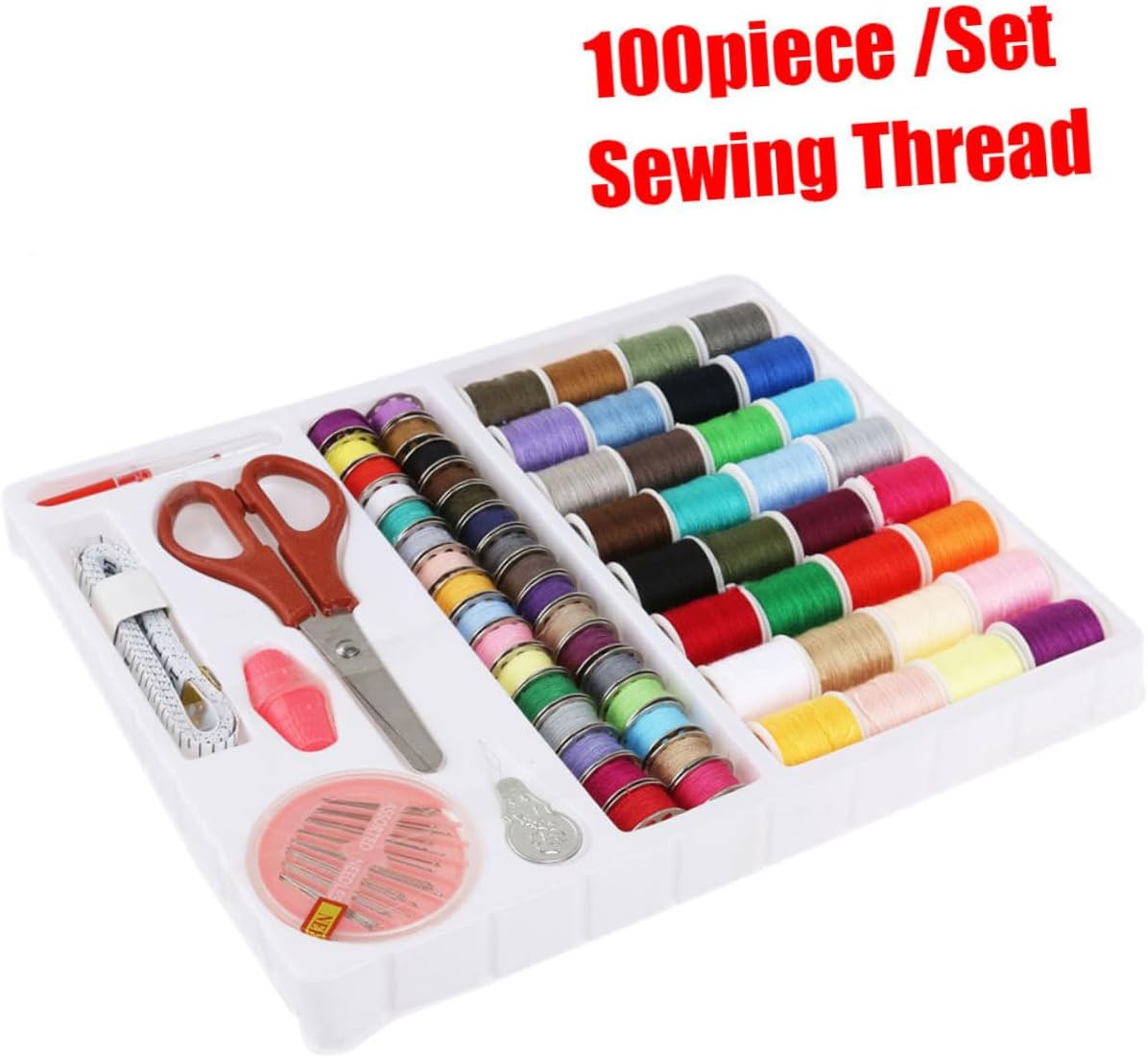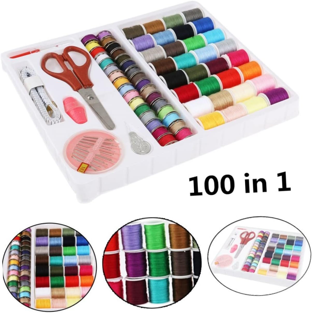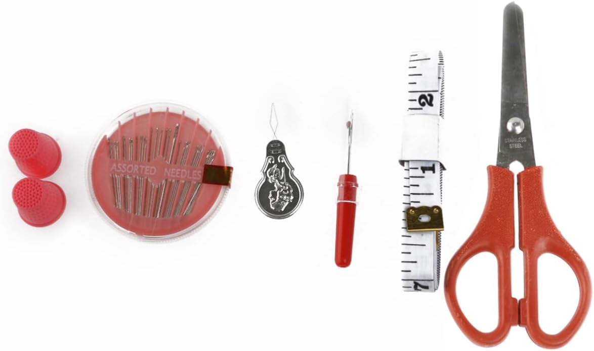 Primo kit da cucito: per l'uso domestico e in viaggio, o per adolescenti e principianti che necessitano alcuni articoli base per cucire, kit da cucito completo Include: 32 rocchetti filo assortiti, 32 metallo abbinate, 30 aghi , un metro a nastro, un paio forbici, 2 ditali, un infila ago e uno scucitore, kit da cucito, kit da cucito per adulti Strumenti per cucire: il kit da cucito 100 in 1 include i tipi accessori necessari per i tuoi progetti cucito e , prodotti per cucire Colore: materiale colorato: plastica, metallo e filo cotone, kit da cucito base, kit da cucito per la casa