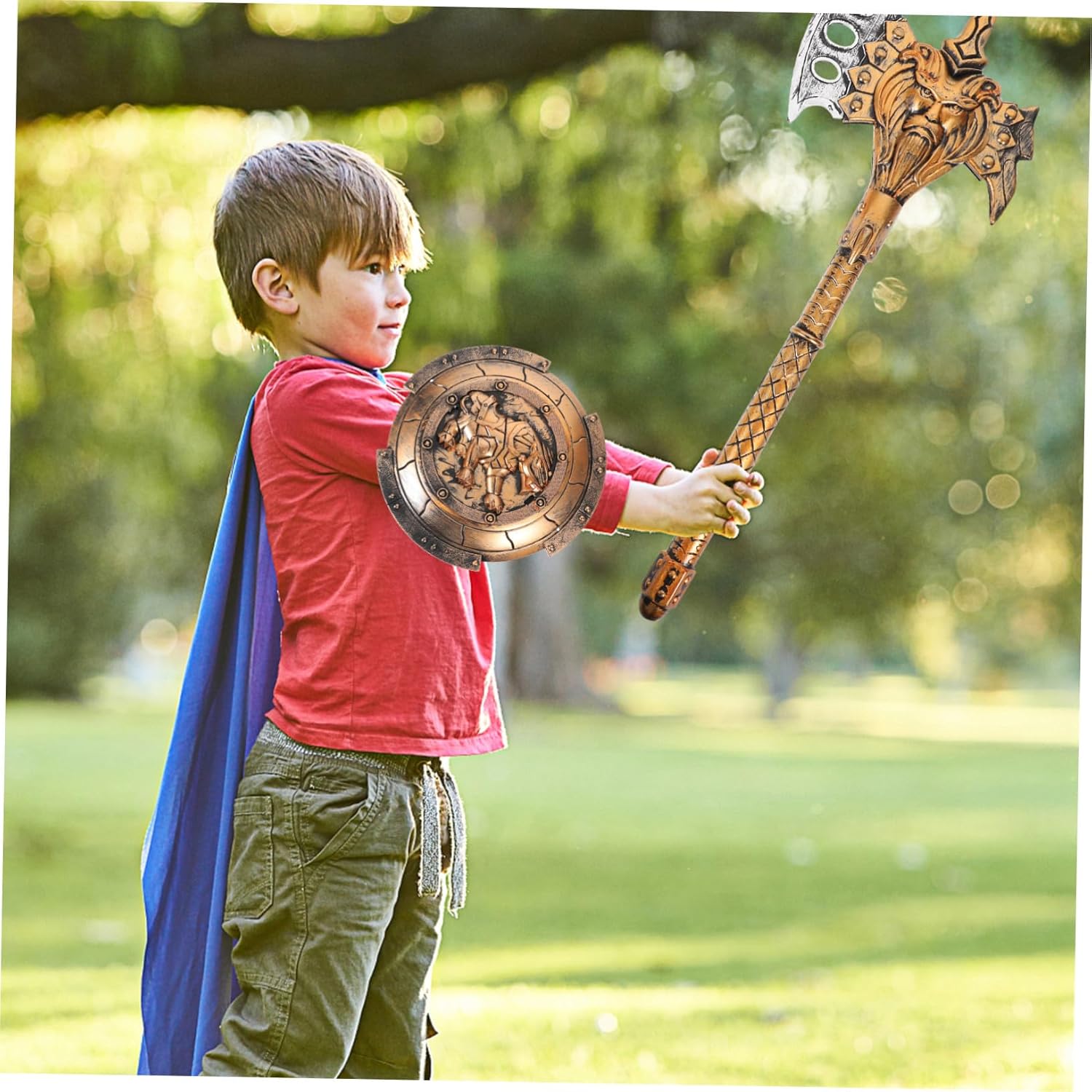 Giocattoli per bambini - Vestirsi con questo costume cosplay di ruolo sarà meraviglioso e attraente, un armamento performante per oggetti di scena per feste - con un'eccellente fattura che ti consente di usarlo per molto tempo, materiale plastico leggero e non facile da rompere, potente armamento cosplay per - design unico e simulato, rende il tuo materiale scolastico più attraente e impressionante, accessori per armature per la scuola - con il design unico, sembrerai più attraente quando lo usi alla festa o come accessori cosplay Bear Axe Shield - Se ami il cosplay, allora questo set di costumi può essere meraviglioso per i giocattoli dei tuoi ragazzi