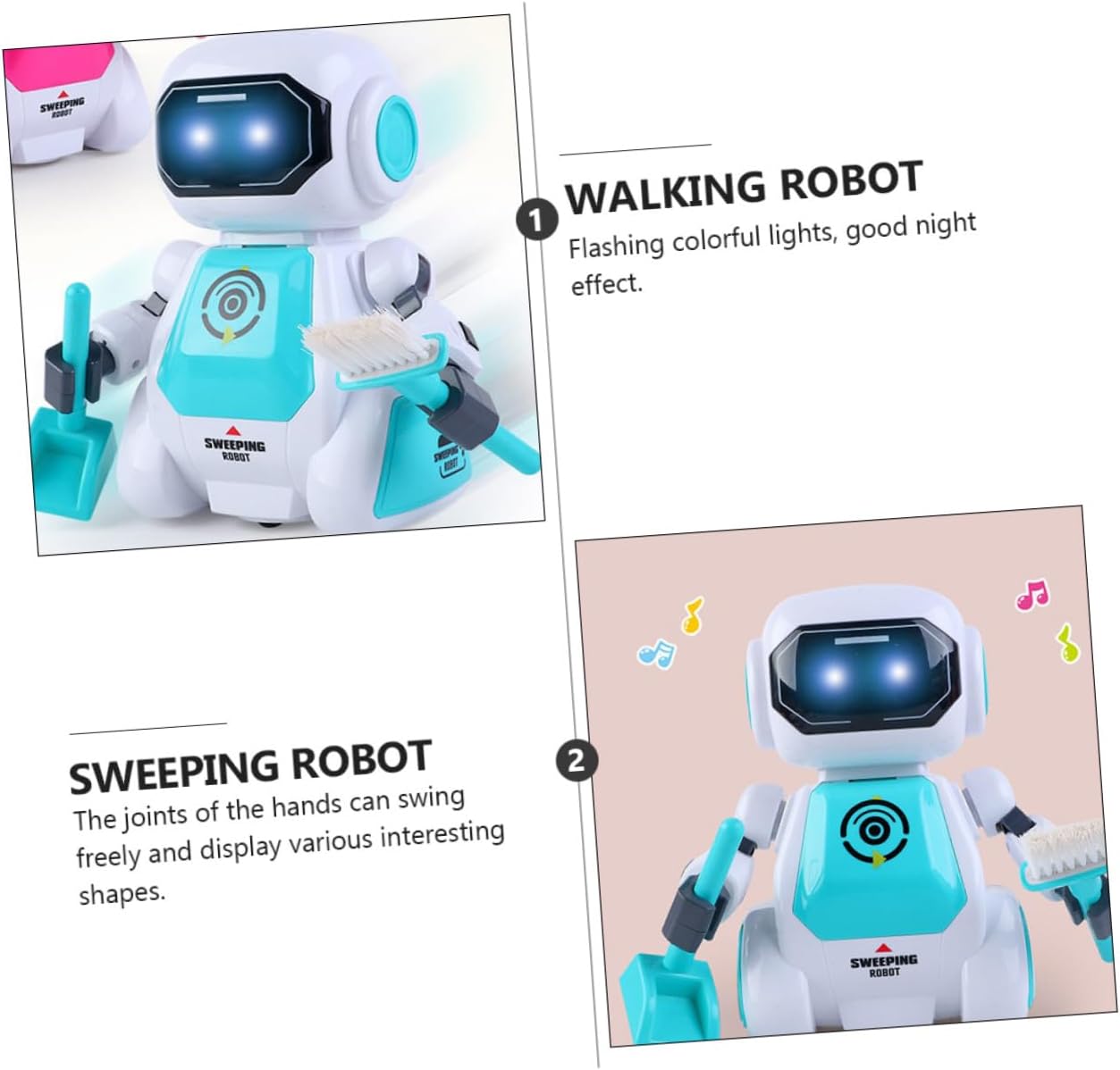 Robot elettronico rotante: può riprodurre musica, storie, poesie e così via, lasciando che i si divertano, robot spazzante Giocattolo robot lampeggiante: ha la funzione di camminare in modo universale intelligente, evitando automaticamente gli ostacoli, giocattolo per la prima infanzia Giocattolo educativo: le articolazioni delle mani possono oscillare liberamente, dando origine a molte forme interessanti, robot che cammina Luci lampeggianti e musica: questo divertente giocattolo elettronico non solo riproduce musica, ma ha anche luci lampeggianti!, giocattoli creativi per ragazzi, giocattolo con luci lampeggianti musicali Robot danzante: utilizza materiali durevoli, robot danzante elettrico