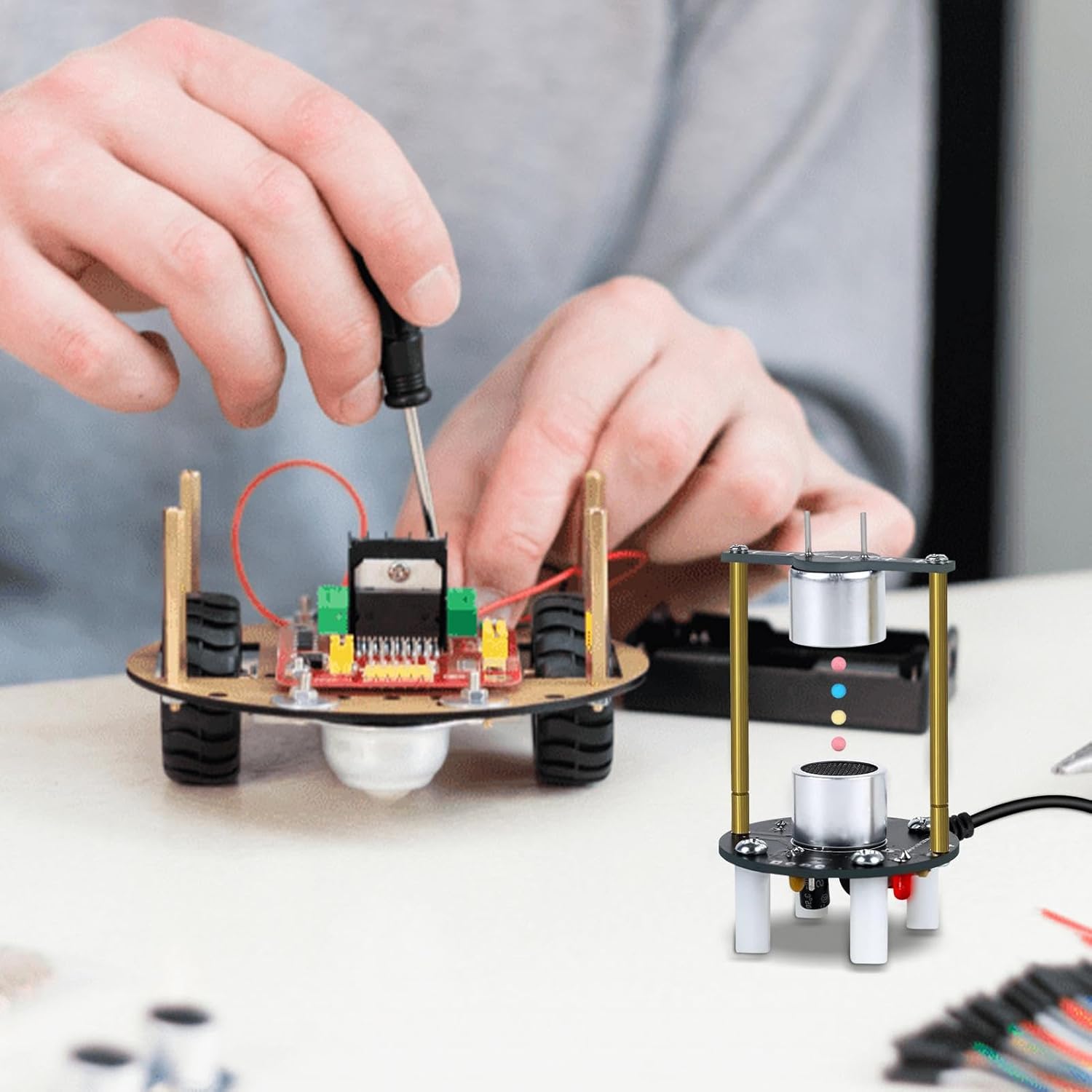 Enhance your soldering efficiency: Our Ultrasonic Levitator Soldering Practice Kit is designed for enthusiasts and those seeking welding practice to improve their welding quality, experience, and overall proficiency. Different welding modes: Enhance your welding skills with our Ultrasonic Levitator Soldering Practice Kit. Explore manual, automatic, and follow-up modes & choose from different welding needs to progress efficiently. Ideal for all skill levels. Simple to Operate: The Ultrasonic Levitator Soldering Practice Kit is a great way for professionals to polish their soldering expertise. Easy to operate and follow the instructions, beginners can also use this kit without prior experience or technical knowledge. Ideal for anyone seeking to enhance their soldering skills, a must-have tool for aspiring professionals. Teaching Aid: Enhance soldering skills with our Ultrasonic Levitator Soldering Practice Kit, a practical tool kit for experiments Welding Skill Training Board Levitator Soldering Standing Kit for Welding Skill Training multiple application fields, including scientific research. Easily Carry: Our Ultrasonic Levitator Soldering Practice Kit adopts ultrasonic suspension technology to lift welding workpieces in the air, without needing other fixed equipment. Practice in mid-air and hone your skills with ease.