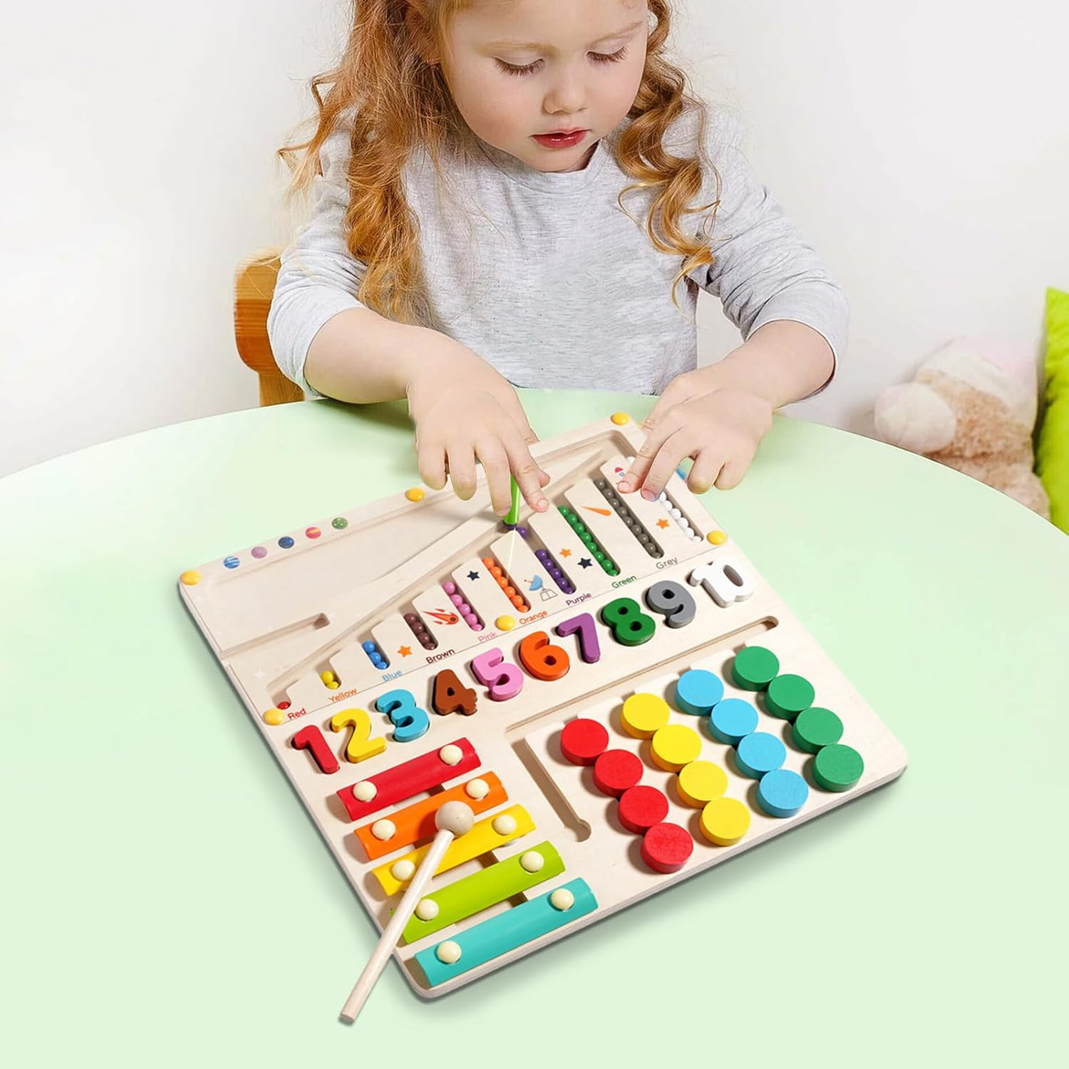 Giocattolo Resistente: Progettato con pannelli in legno rinforzati e bordi levigati, offre una struttura robusta che incoraggia il gioco ripetuto nel con totale affidabilità. Regalo Raffinato: Realizzato per celebrare momenti felici come Natale, trasmette senso di cura. Offre gioia ai bambini incoraggiando l'esplorazione tattile e supportando lo sviluppo cognitivo con materiali naturali e stimolanti. Caratteristiche Educative: 4 modalità con attività labirinto perline, apprendimento numeri, sviluppo motricità fine ed effetti sonori coinvolgenti per un gioco istruttivo Abilità Cognitive: Gioco di ordinamento pratico che rafforza la coordinazione occhio-mano, affina il pensiero logico e fornisce strumento efficace per tracciare percorsi e identificare i colori durante l'esplorazione ludica Caratteristiche di Gioco Coinvolgenti: Questo giocattolo in legno per classificare integra sequenze numeriche, segnali visivo-auditivi e suoni percussivi per potenziare moduli didattici diversificati, sviluppando efficacemente la percezione musicale infantile