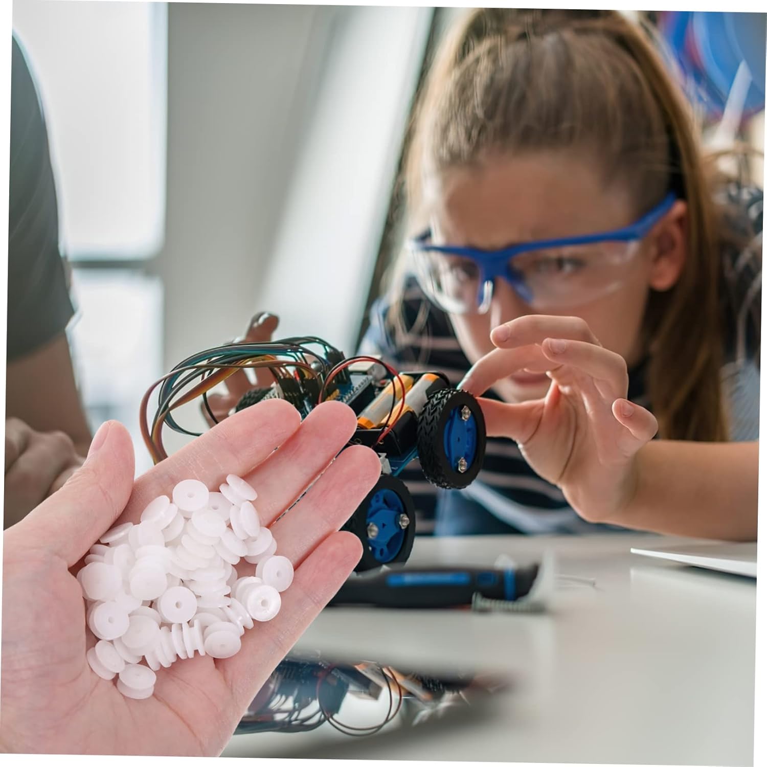 Ruote motrici: superficie liscia, bassa resistenza, funzionamento regolare, maggiore precisione della pressione e meno rumore. Puleggia: ⚙la puleggia in plastica con foro 2 mm ha caratteristiche stabili, alte prestazioni è di affidabilità, semplice, facile installare. Puleggia per fai te: sostituisci la puleggia vecchia o rotta con una nuova. Puleggia in plastica con foro 2 mm: ⚙sostituisci la puleggia vecchia o rotta con una nuova. Ingranaggio in plastica per giocattolo a motore: è adatto per laboratori, educazione scientifica, modelli fai te e riparazioni di aerei/elicotteri rc, ecc.