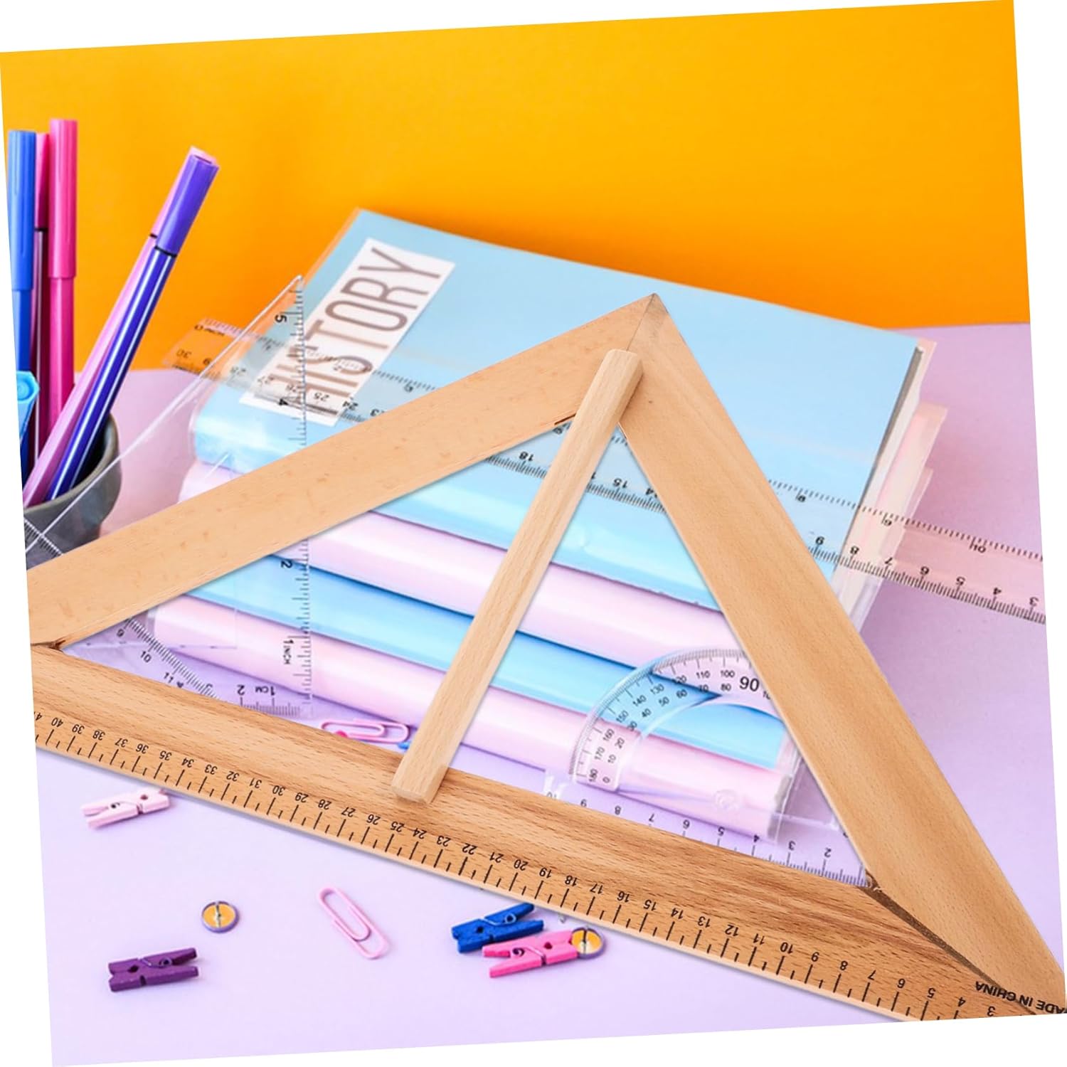 Righelli triangolari: i suoi chiari contrassegni in scala garantiscono misurazioni precise, rendendolo strumento essenziale per insegnare la geometria. Righelli per disegno geometrico: struttura semplice, facile da usare, facile da deformare, puoi usarlo con sicurezza. Righello triangolare in classe: gli insegnanti possono disegnare facilmente forme e misurare gli angoli sulla lavagna, migliorando l'apprendimento degli studenti. Materiale didattico: il robusto materiale plastico fornisce una struttura robusta e affidabile, garantendone la durata. Righello triangolare da disegno: la costruzione di questo strumento didattico è robusta e affidabile, realizzata in plastica resistente per una durata.