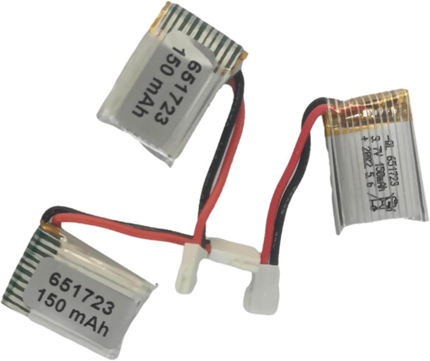 Funzione di protezione PCM: protezione da sovraccarico, cortocircuito, surriscaldamento Assicurati che la polarità del dispositivo corrisponda a quella del connettore della batteria prima dell'acquisto Dimensioni: 2,2 x 1,6 x 0,8 cm Assicurati che le dimensioni della batteria e il connettore del dispositivo siano uguali a quelli dell'immagine prima dell'acquisto Voltaggio: 3,7 V, Capacità: 150 mAh