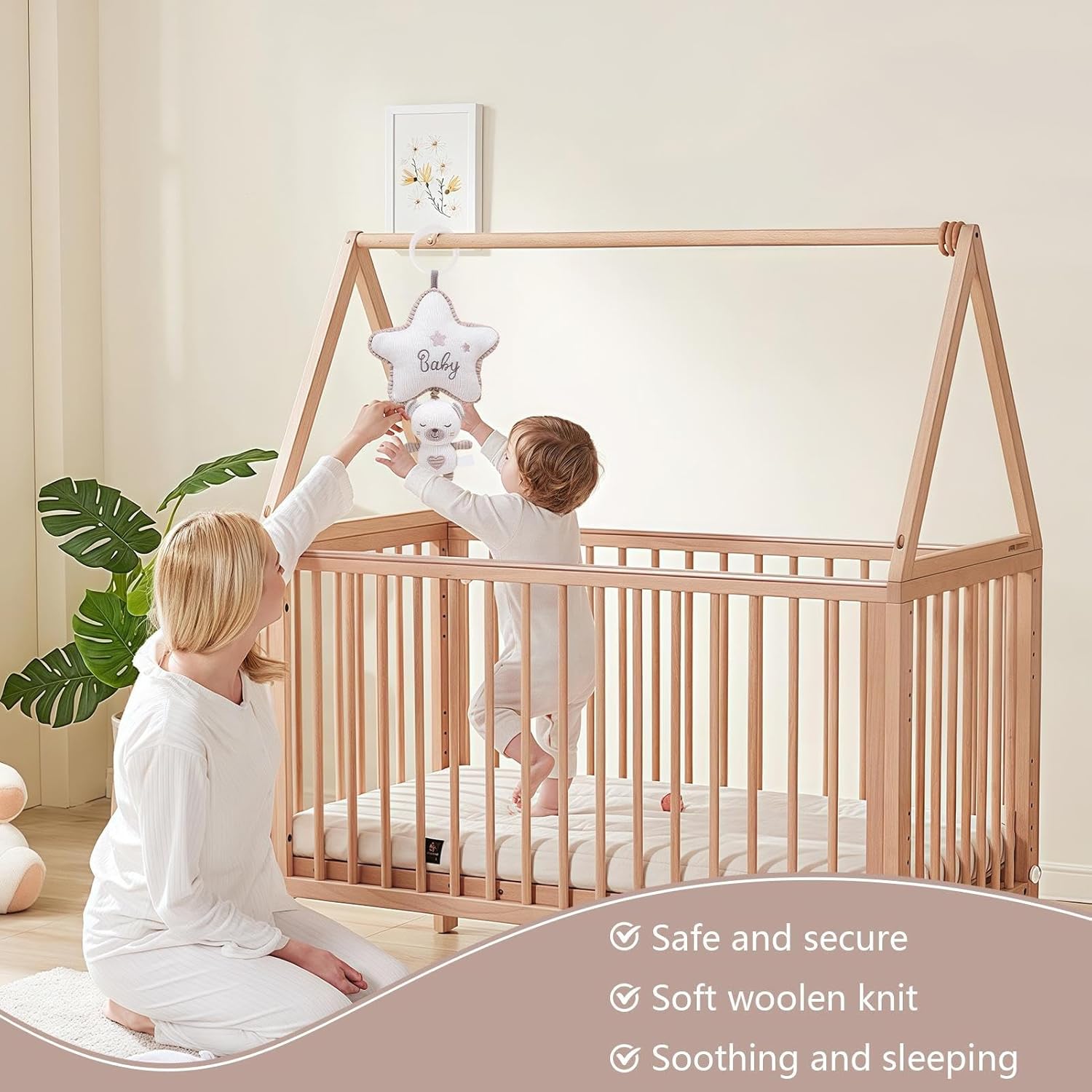 Design Sicuro: Stabilità antiscivolo integrata con sospensione rinforzata per posizionamento fermo, struttura resistente a urti per maggiore protezione durante il gioco Materiale Sicuro: Tessitura a maglia ipoallergenica crea una superficie soffice per interazioni delicate, con forma a coniglietto che coinvolge visivamente, sicuro per Sospensioni versatili: Incanta i bambini con suoni gradevoli dal carillon integrato, unendo una funzione ninna nanna rilassante e un utilizzo adattabile in ambienti diversi Coordinazione Occhio-Mano: Integra campanella sonora e superfici tattili per stimolare apprendimento infantile, sviluppo sensoriale completo con approccio ludico interattivo Lavabile in lavatrice: Giocattolo musicale resistente a deformazioni e durevole, con tessuto anti-sbiadimento che mantiene integrità durante lavaggi regolari a mano o in lavatrice, ideale per uso quotidiano e facile da pulire