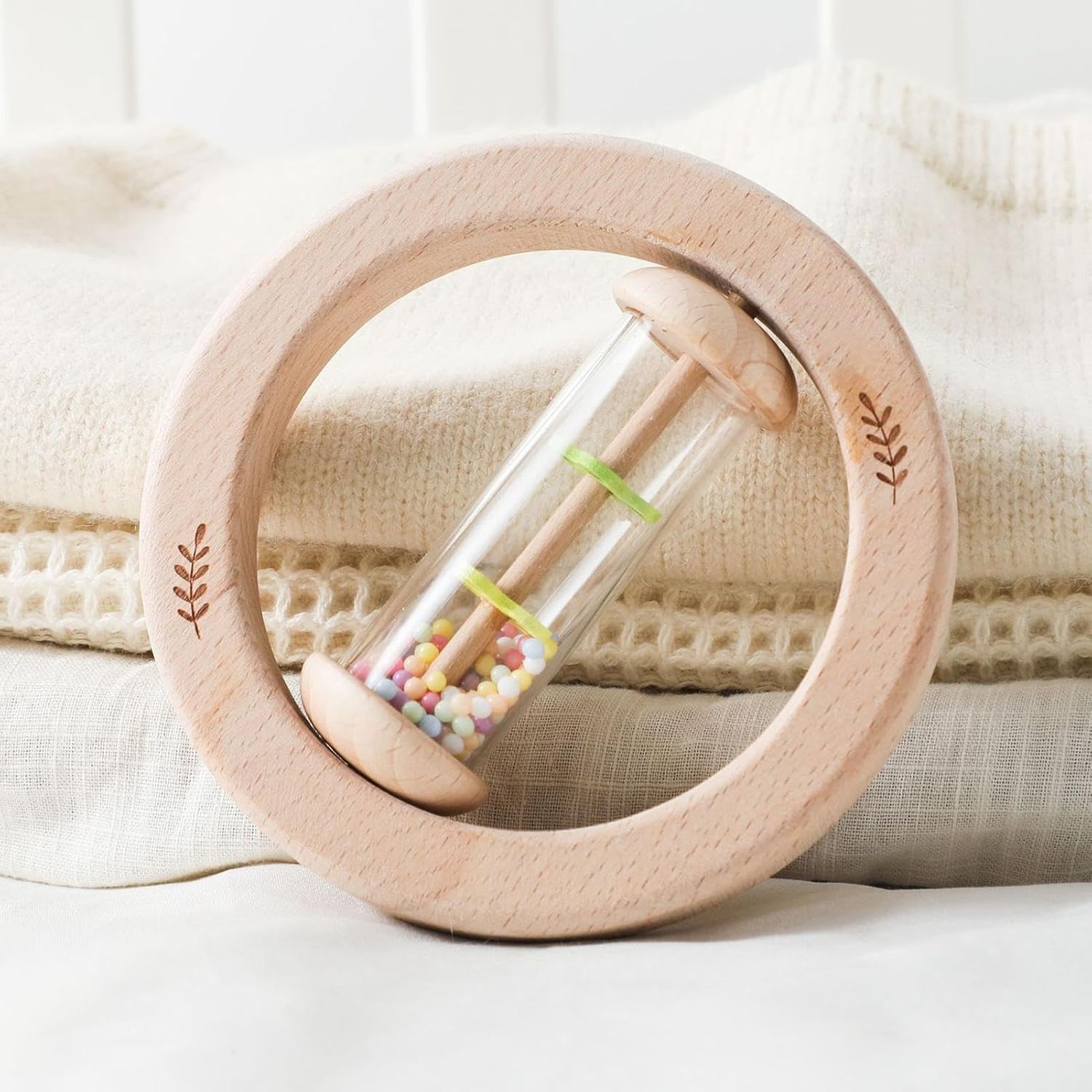 Pratico: Promuove l'apprendimento sensoriale con tonalità brillanti e effetti sonori coinvolgenti, potenziando il controllo delle mani e la coordinazione tramite una manipolazione intuitiva e sicura Suoni Avvincenti:Scuotendo questo sonaglio di legno si attivano delicati fruscii con particelle integrate che simulano il rumore della pioggia, incoraggiando la curiosità e garantendo un'esperienza coinvolgente per i . Ben Fatto::Realizzato con materiali robusti che resistono a urti e cadute, questo sonaglio in legno è progettato per un utilizzo prolungato senza usura o rotture, adattandosi perfettamente alle diverse fasi di crescita del bambino. 3. Design Sicuro: Angoli arrotondati e curvatura studiata prevengono urti e scivolamenti, offrendo una presa confortevole che risponde alle preferenze di presa dei bimbi durante il gioco. Benefici Multifunzione: Promuove lo sviluppo uditivo e la coordinazione occhio-mano attraverso stimolazione sonora ed esercizi di presa, supportando la crescita cognitiva precoce con utilizzi versatili per esperienze di gioco interattivo