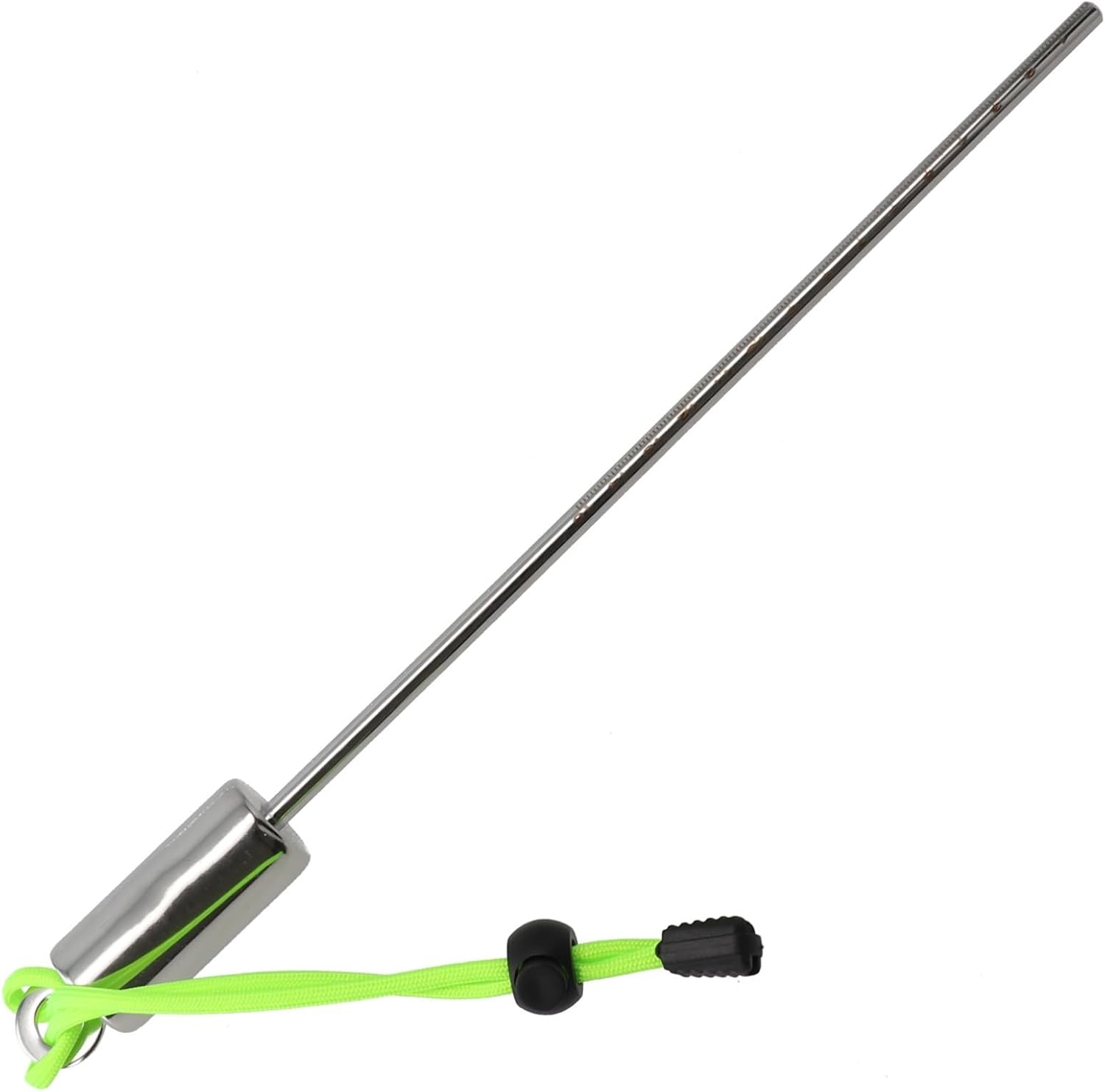 Sonda subacquea multifunzionale: questa sonda subacquea in acciaio inossidabile è progettata per creare suono colpendo una bombola di gas o scuotendo la testa dell'asta, attirando efficacemente l'attenzione delle tue immersioni La sicurezza prima di tutto: utilizza questa sonda per indicare direzioni o oggetti, comunicare chiaramente mentre esplori il mondo sottomarino Tocco protettivo: sicuro con piccole creature sottomarine senza usare le mani, consentendo un approccio più delicato alla vita marina STABILITÀ IN CORRENTE: In condizioni difficili come forti correnti, inserisci il ding nelle fessure della barriera corallina per stabilità e controllo durante l'immersione Promemoria taglie: si prega di fare riferimento alla propria tabella delle taglie per una migliore vestibilità; le dimensioni sono 5 x 2