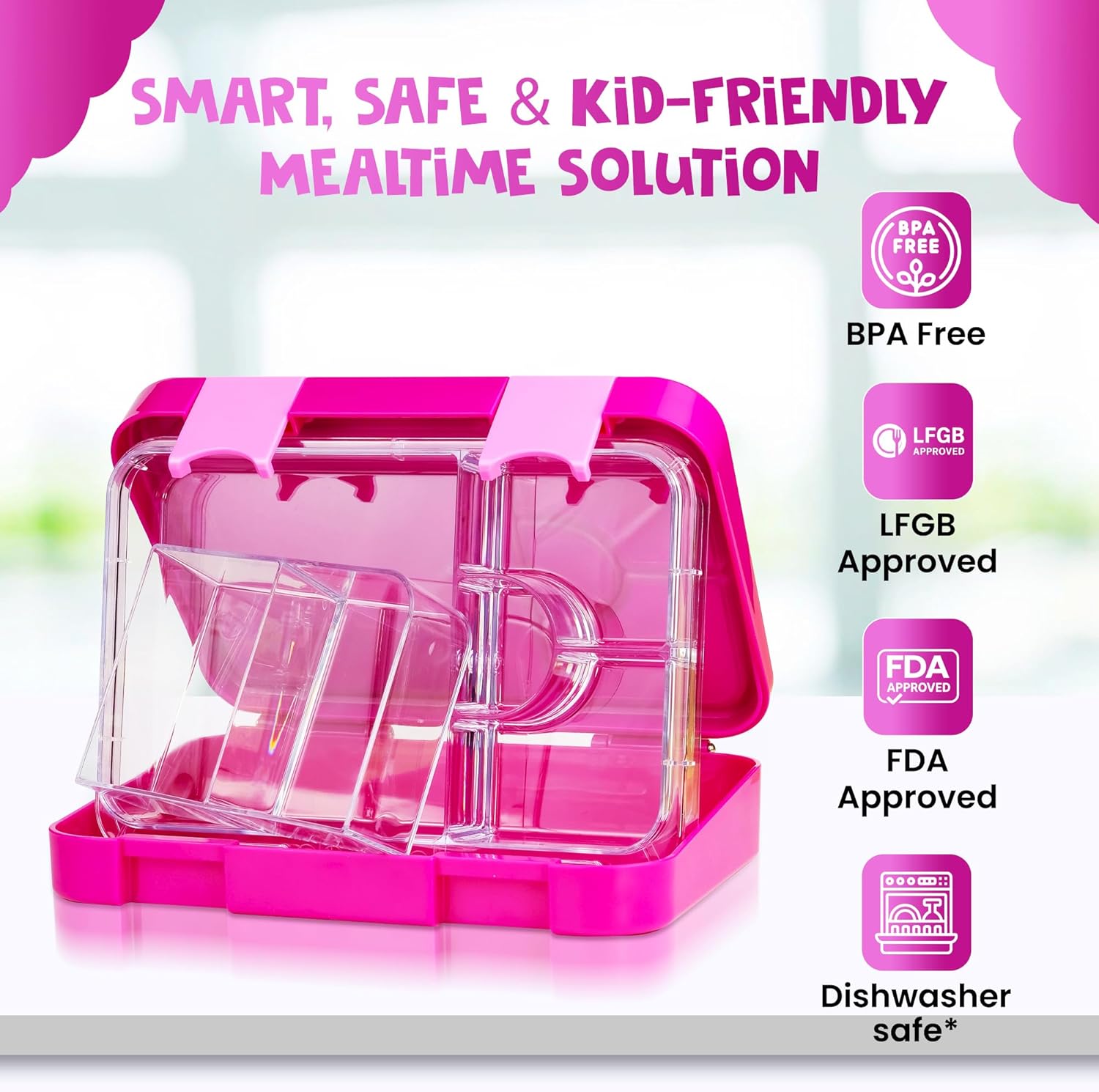 Dimensioni ottimali per la scuola e il giardino dei bambini: il contenitore per il pranzo ha 6 scomparti perfettamente porzionati. A scelta il contenitore interno può essere rimosso, in modo che la scatola abbia 4 scomparti. Facile da usare: la struttura della scatola sosame è estremamente stabile e studiata e le due chiusure a scatto si aprono e si chiudono facilmente da mani piccole. Facile da pulire: il contenitore per il pranzo è super facile da pulire. Le parti interne del contenitore possono essere facilmente rimosse e lavate in lavastoviglie. Il rivestimento esterno può essere lavato sotto l'acqua corrente senza troppi sforzi. ️: senza BPA e alimentare: la scatola sosame lanch è conforme ai più elevati standard europei. Il contenitore per bambini a tenuta stagna è privo di sostanze nocive e plastificanti. Grazie all'uso di materiali di alta qualità e alla struttura densa, gli snack rimangono confezionati in modo igienico.