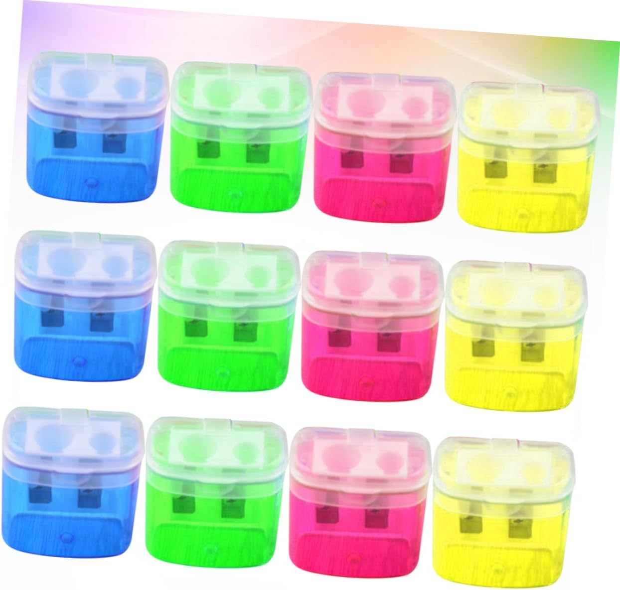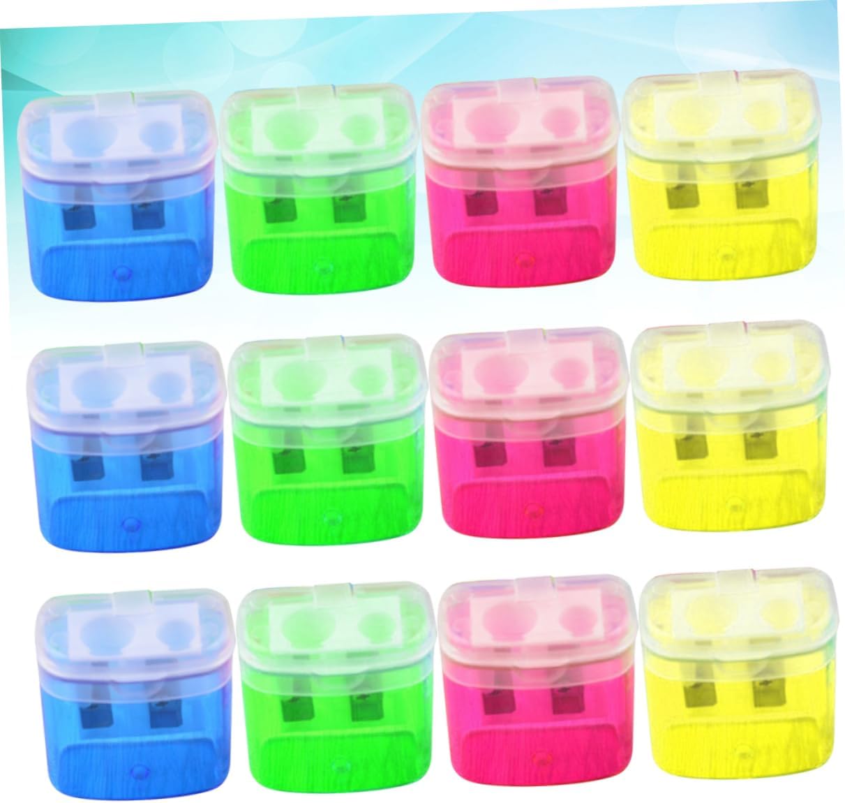 Temperamatite manuale: adatto per la scuola, l'aula, l'ufficio e l'uso domestico, cancelleria necessaria per gli studenti, temperamatite per il trucco Temperamatite: un temperamatite pratico, uno strumento comodo ed efficiente per lavorare e studiare, temperamatite per il trucco Temperamatite per il trucco: questi temperamatite manuali a doppio foro possono contenere due matite contemporaneamente, temperamatite manuale Temperamatite doppio: è dotato di uno strumento pratico all'interno, che aiuta il tuo bambino a usare efficacemente la matita, temperamatite per il trucco Dotato di coperchio di plastica per proteggere le lame e conservare la contenente la matita; dopo l'uso basta gettarlo comodamente nella spazzatura.
