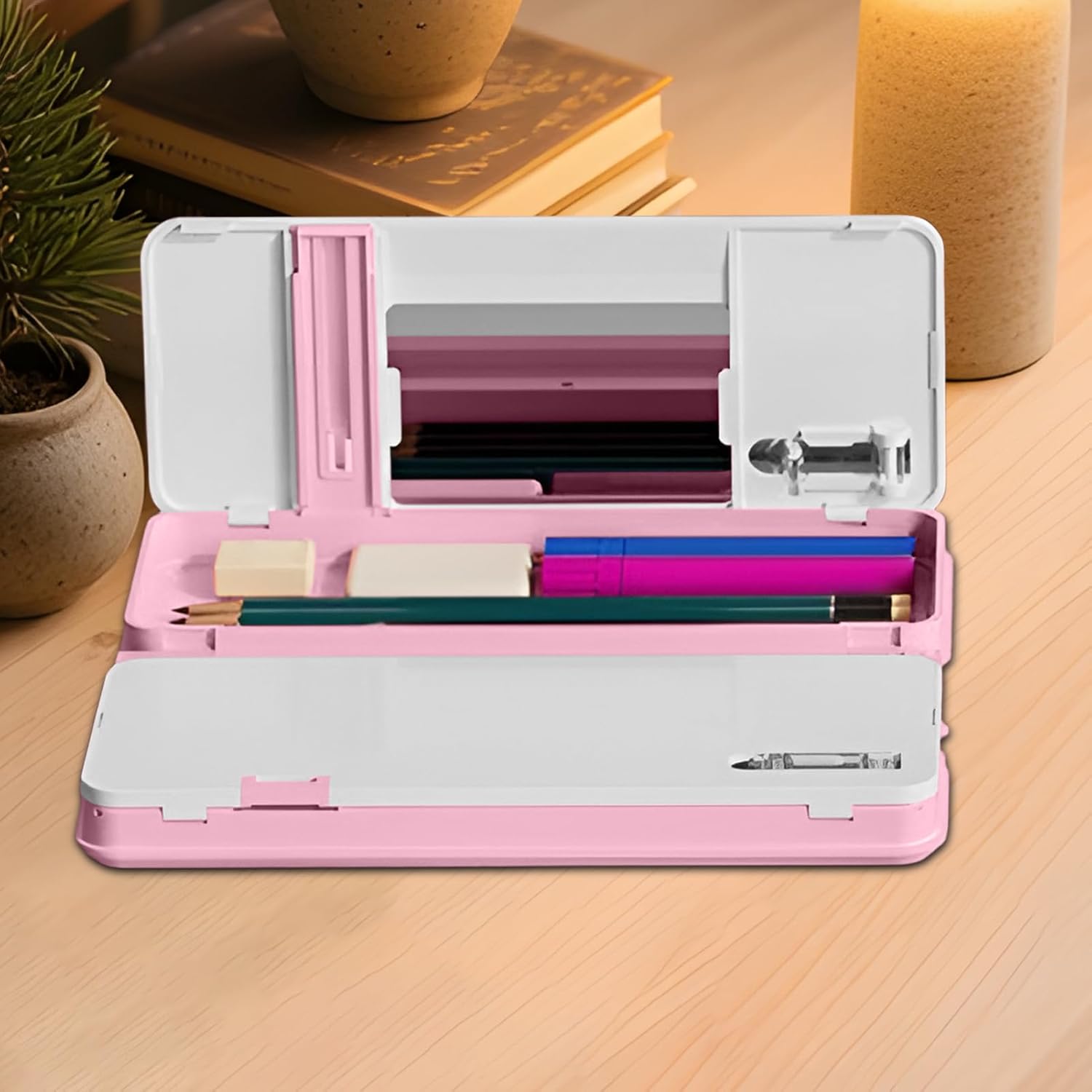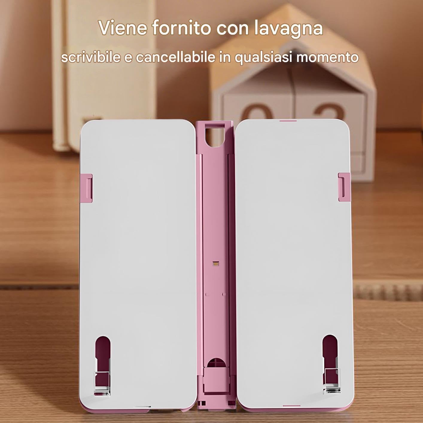 Design Multifunzione: Doppia funzione unisce meccanismo a asta scorrevole e struttura pieghevole per sostenere libri efficacemente, migliorando l'organizzazione o studio con pratico supporto Stabilità Assoluta: La struttura portante stabile e l'ampia base antiscivolo del leggio collaborano con giunti pieghevoli rinforzati e materiali durevoli per offrire supporto inamovibile alle tue esigenze di lettura Regolazione Personalizzata: Fibbia multi-posizione permette configurazioni adattabili con angolazioni regolabili per comfort di lettura, tenuta sicura e pagine e stabilità del supporto per libri durante l'utilizzo Facile da Usare: Organizza la tua esperienza con i due ripiani di questo portalibri, unendo comodità operativa ed elementi di design creativo come un specchietto e un temperamatite per una maggiore soddisfazione 'utente. Design Sottile e Pieghevole: Supporto libro leggero e pieghevole per portabilità e riporlo facilmente, ideale per uso quotidiano risparmiando spazio grazie anche alla lavagna cancellabile e al comparto integrato per organizzare