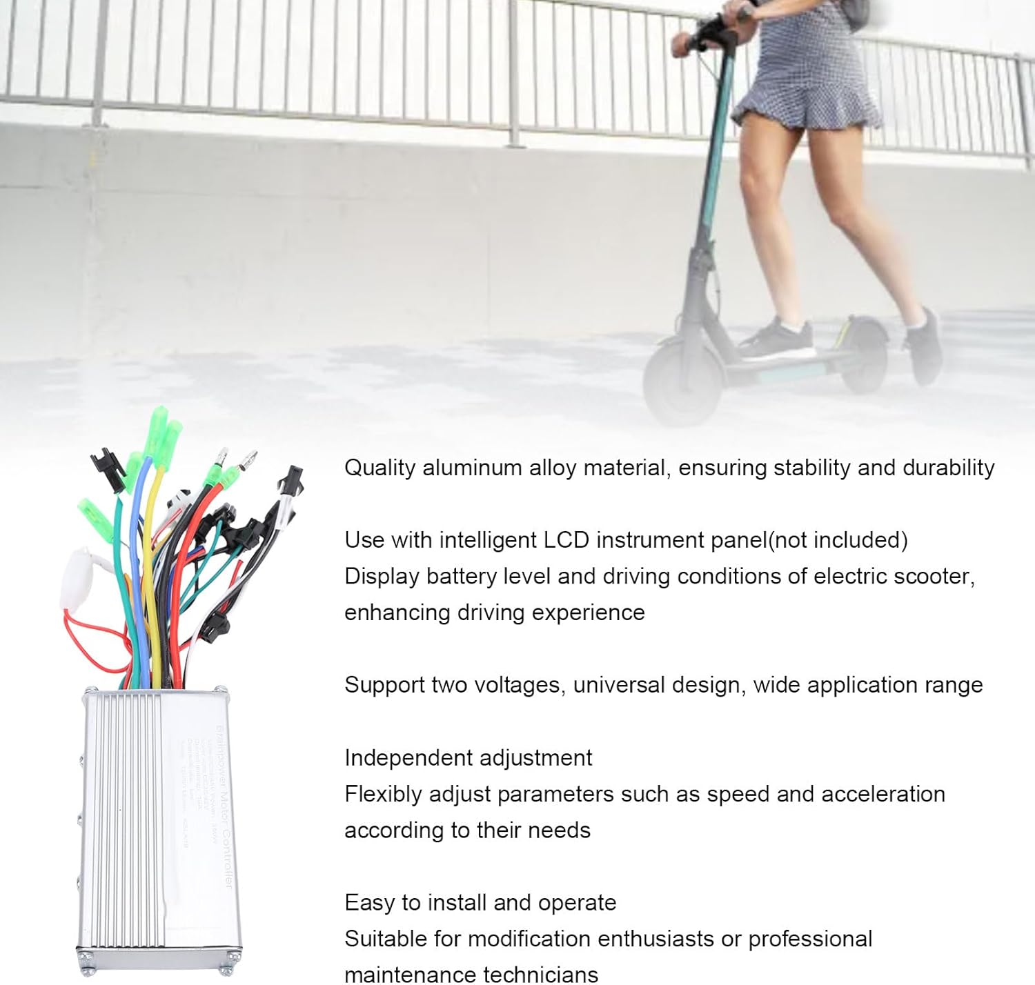 MATERIALE STABILE: il controller è realizzato in materiale di lega di alluminio di qualità, garantendo stabilità e durata del prodotto ed è adatto a varie marche di scooter elettrici METODO DI UTILIZZO: Il controller dello scooter elettrico può essere utilizzato con il quadro strumenti LCD intelligente (non incluso), comodo per visualizzare il livello della batteria e le condizioni di guida dello scooter elettrico, migliorando l'esperienza di guida UNIVERSALE E VERSATILE: il controller universale del motore brushless supporta due tensioni, design universale, ampia gamma di applicazioni, comodo per gli utenti per scegliere il controller elettrico adatto ai propri veicoli FLESSIBILE E REGOLABILE: il controller dello scooter elettrico ha una funzione di regolazione . Gli utenti possono regolare in modo flessibile parametri come velocità e accelerazione in base alle proprie esigenze, fornendo un'esperienza di guida personalizzata CONVENIENTE E PRATICO: il controller intelligente del motore brushless è facile da installare e utilizzare, adatto agli appassionati di modifiche o ai tecnici di manutenzione professionisti, rendendo il tuo scooter elettrico più potente e intelligente