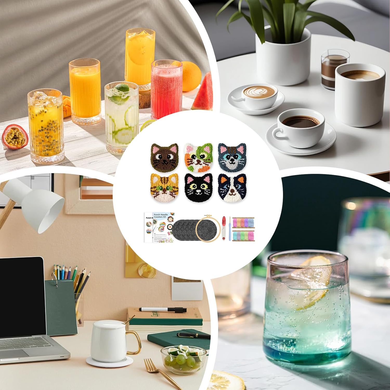 Kit perfetto per principianti: ideale per i principianti, questo kit di sottobicchieri con ago perforatore elimina la necessità di esperienza precedente includendo strumenti e materiali indispensabili, offrendo una guida dettagliata passo dopo passo e garantendo facilità d'uso con il suo sistema di aghi perforato progettato con cura Speciale divertimento sottobicchiere: sei simpatici disegni, con gatti e cani, ispirano gli appassionati di artigianato a creare sottobicchieri speciali, decorati con motivi giocosi e gioiosi Un set di strumenti per il fai da te: questo kit completo fornisce tutti i componenti necessari come feltro e filo da ricamo, garantendo un'esperienza di artigianato robusta senza bisogno di strumenti aggiuntivi Squisiti regali: questo kit di sottobicchieri con ago perforato per animali domestici ti consente di creare con cura, offrendo un'attività rilassante che si traduce in bellissimi pezzi fatti a mano, assicurandoti che si distingue come regalo premuroso e perfetto da presentare alla persona amata Più funzioni: unisce bellezza e utilità utilizzando feltro resistente al calore per proteggere le superfici, offrendo una miscela di protezione funzionale ed elegante decorazione per qualsiasi ambiente
