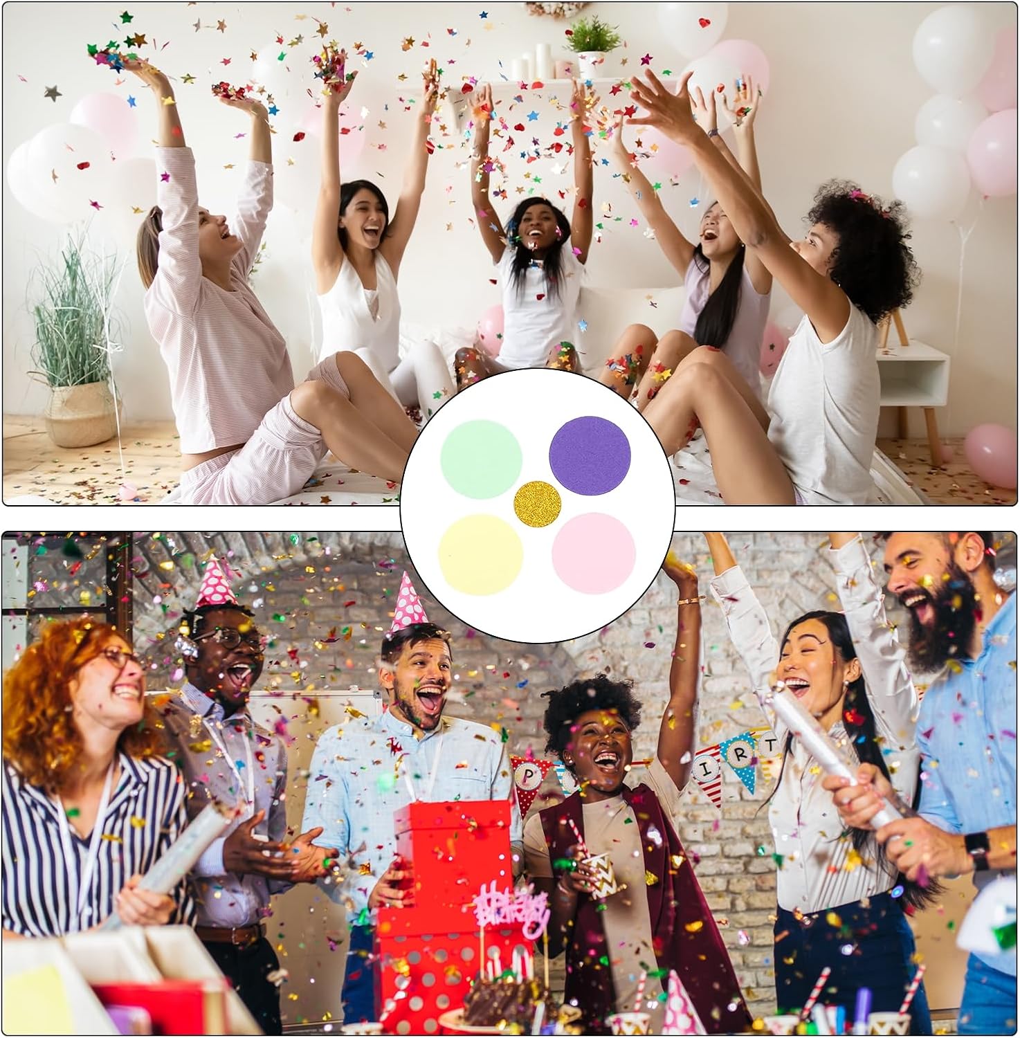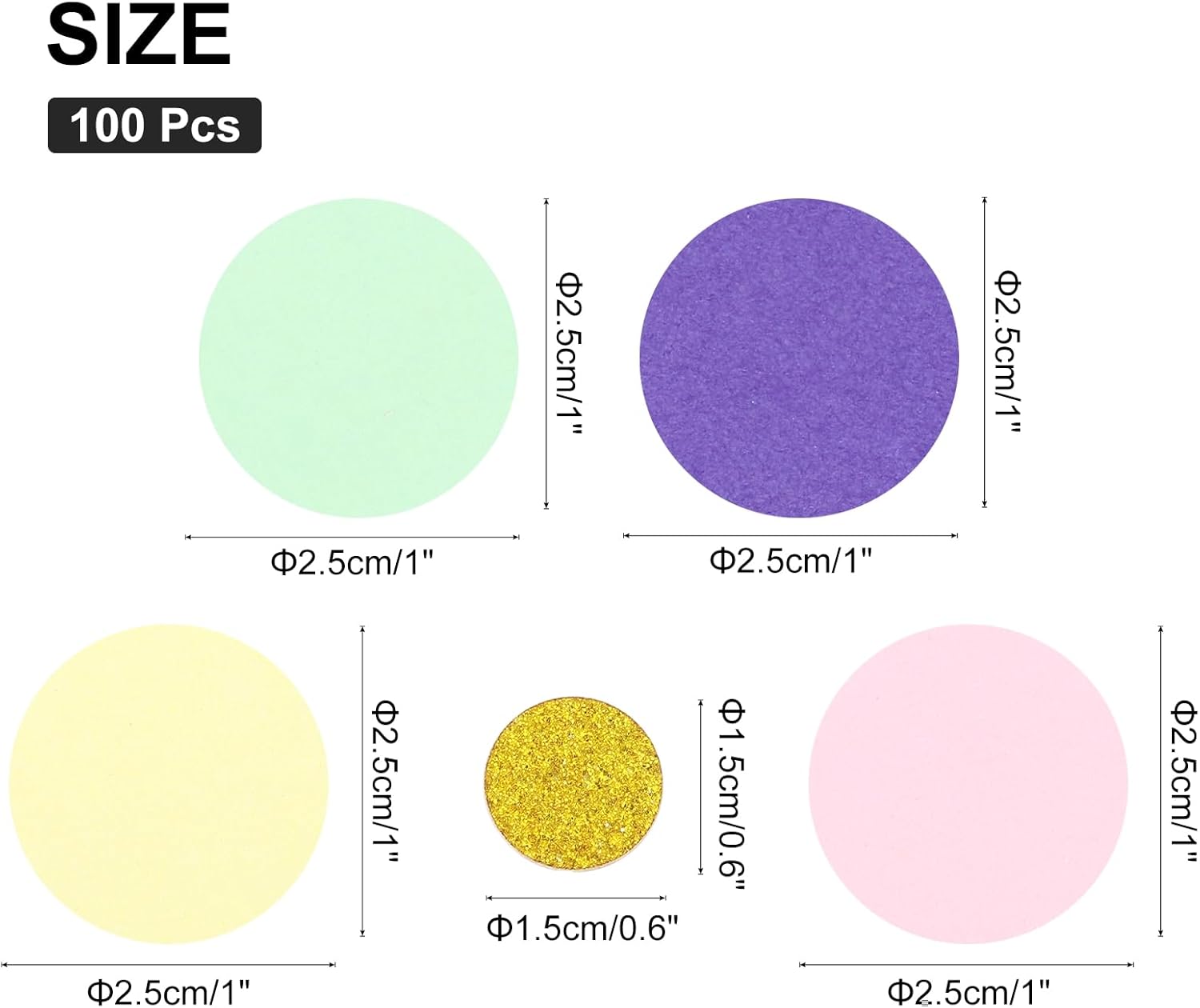 Questa superficie di coriandoli con superficie scintillante aggiunge un'atmosfera più festosa. Le dimensioni ridotte e il peso leggero possono soddisfare le tue esigenze di decorazione e artigianato. Perfetto per barrette di coriandoli, cestini, secchi, coni, borse, palloncini, tavoli, vasi, arte mista, ecc. La brillante decorazione di coriandoli è perfetta per compleanni, matrimoni o altre feste ed eventi di festival. Forma: rotonda; Colore: giallo chiaro, viola scuro, oro, rosa chiaro, verde chiaro; Dimensioni: 2,5x2,5 cm; Materiale: carta glitterata; Il pacchetto include: 100 coriandoli rotondi. Sono sufficienti per le decorazioni del tuo compleanno e della tua festa di matrimonio, abbinabili ad altre forniture per feste. Sembrano molto lucenti e belli. Questi coriandoli sparsi carini ed eleganti si combinano con colori classici che possono creare un'atmosfera deliziosa per la tua festa. Goditi il momento felice con i tuoi amici o familiari. I nostri coriandoli sono così facili da cospargere sui vostri tavoli attorno a centrotavola, tavolo da torta, tavolo da dessert, tavolo da regalo e facili da pulire. Realizzato in carta di alta qualità con superficie glitterata, nessun odore particolare, sicuro e affidabile, non facile da sbiadire, può essere usato ripetutamente.