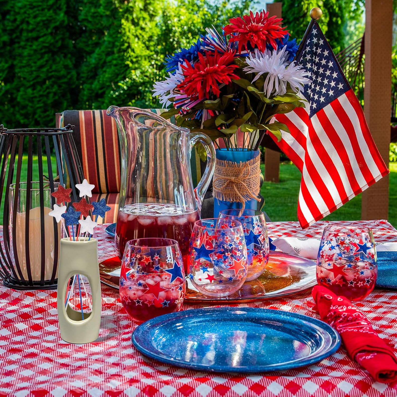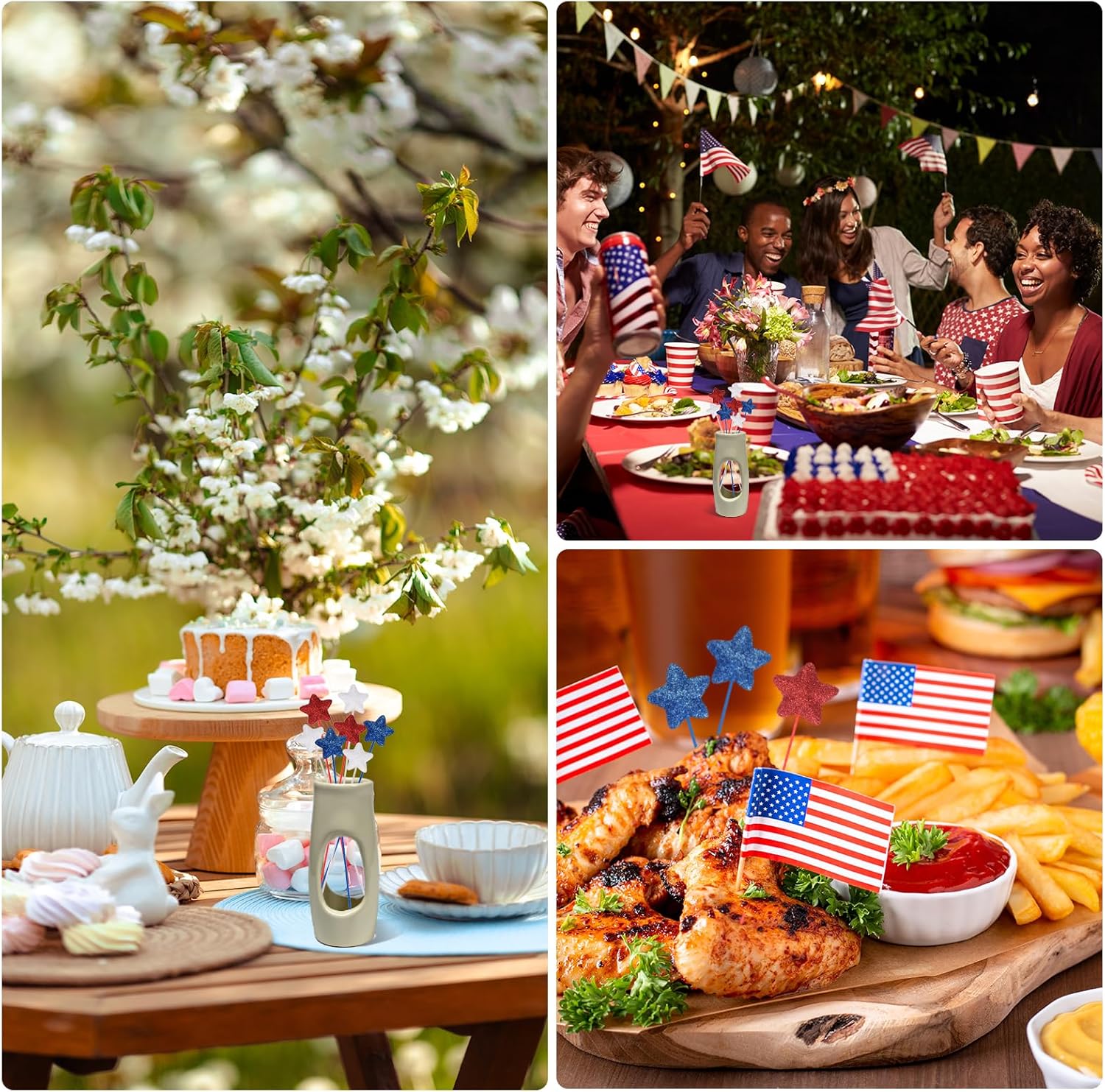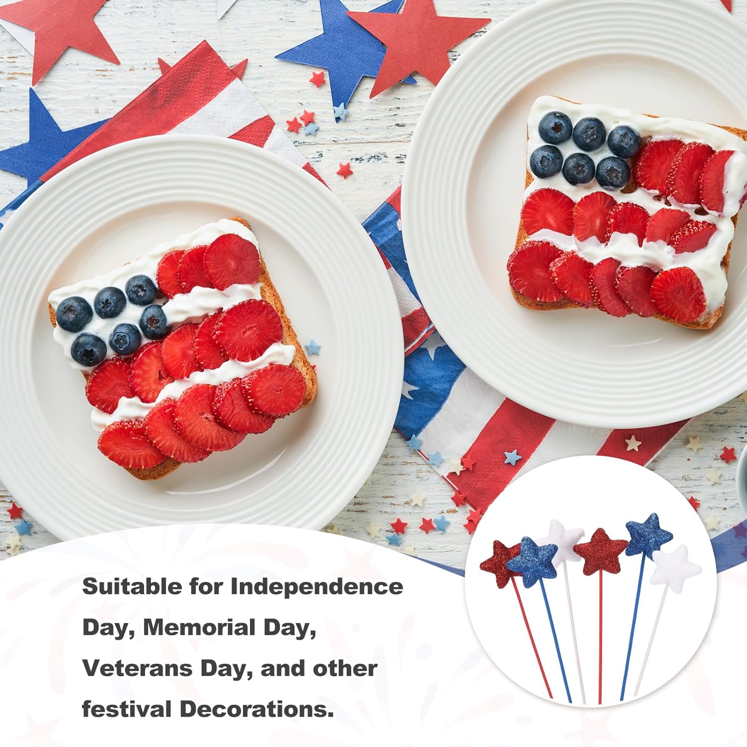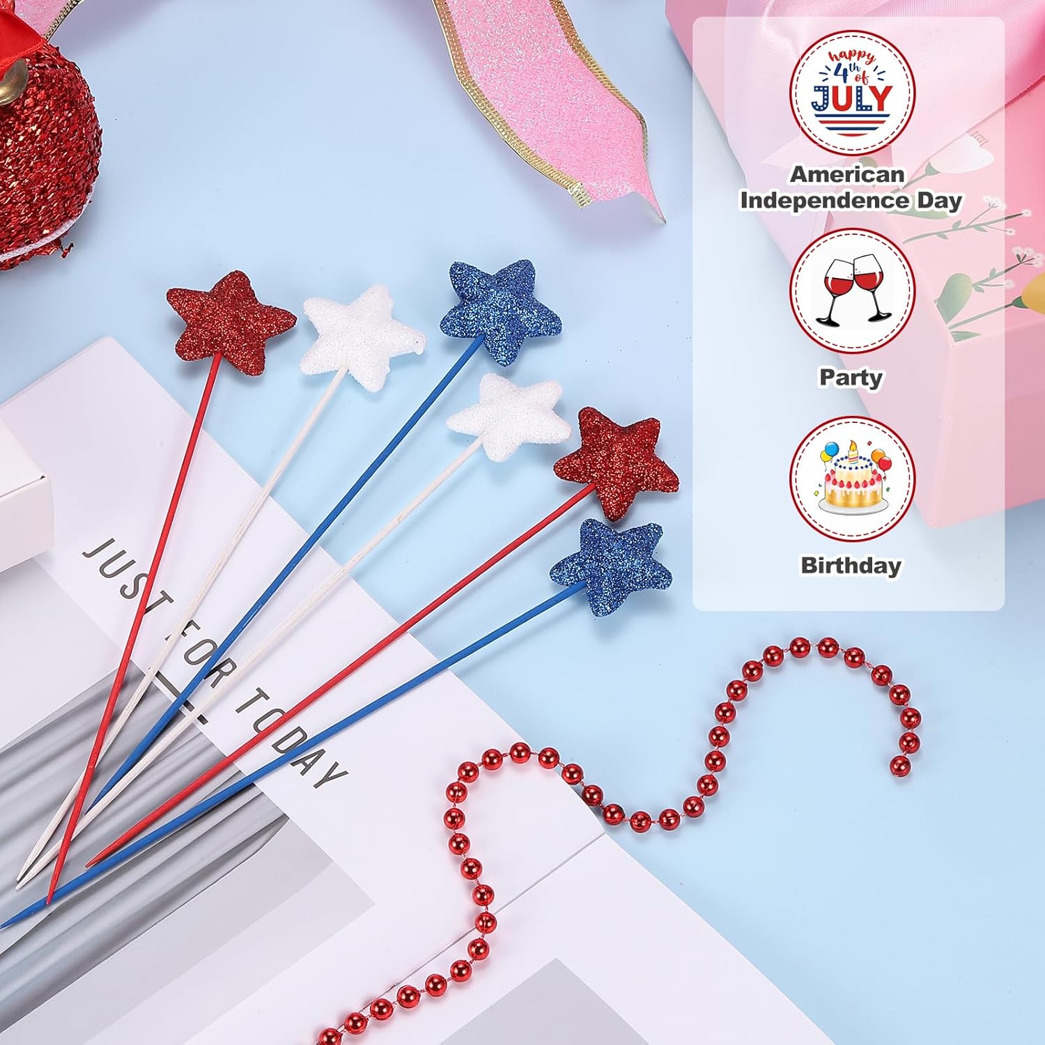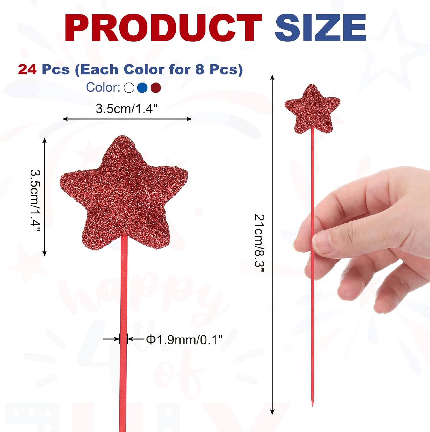 Questa stella glitterata è un set di decorazioni patriottiche progettate per celebrare il giorno dell'indipendenza, il giorno della memoria, il giorno dei veterani e altre occasioni festive. Questi bastoncini scintillanti sono perfetti anche per aggiungere un tocco patriottico a casa, ufficio, caffetteria, centro commerciale o qualsiasi altro spazio commerciale. Possono essere utilizzati come centrotavola, decorazioni per vasi, ghirlande o decorazioni da tavolo, creando un'atmosfera festosa e patriottica per le tue riunioni. I plettri a stella glitterata che forniamo qui sono nelle dimensioni di: Dimensioni totali: 3,5 x 21 cm; Diametro della linea: 1,9 mm; Colore: rosso/blu navy/bianco; Materiale: schiuma; Lista dell'imballaggio: 24 pezzi x bastoncini scintillanti in schiuma. Realizzati in schiuma di buona qualità e manici in legno, questi plettri a stella gonfi garantiscono una presentazione robusta e una lunga durata. Le stelle scintillanti in schiuma e i colori vivaci aggiungono un fascino accattivante al tuo evento. Questi plettri a stella scintillanti sono leggeri e facili da trasportare, con una dimensione adatta per una facile installazione. Dopo la festa, possono essere facilmente smontati e conservati per un uso futuro. Basta posizionare i plettri a stella in schiuma in vasi, sui tavoli o come parte delle ghirlande o delle decorazioni da tavolo. È possibile piegare e modellare gli steli a piacere per creare un aspetto realistico e vivace. I plettri sono perfetti per aggiungere un tocco di atmosfera patriottica alle celebrazioni del Giorno dell'Indipendenza americana o qualsiasi altra occasione festiva. Possono verificarsi lievi differenze di colore a causa dell'illuminazione o dello schermo.