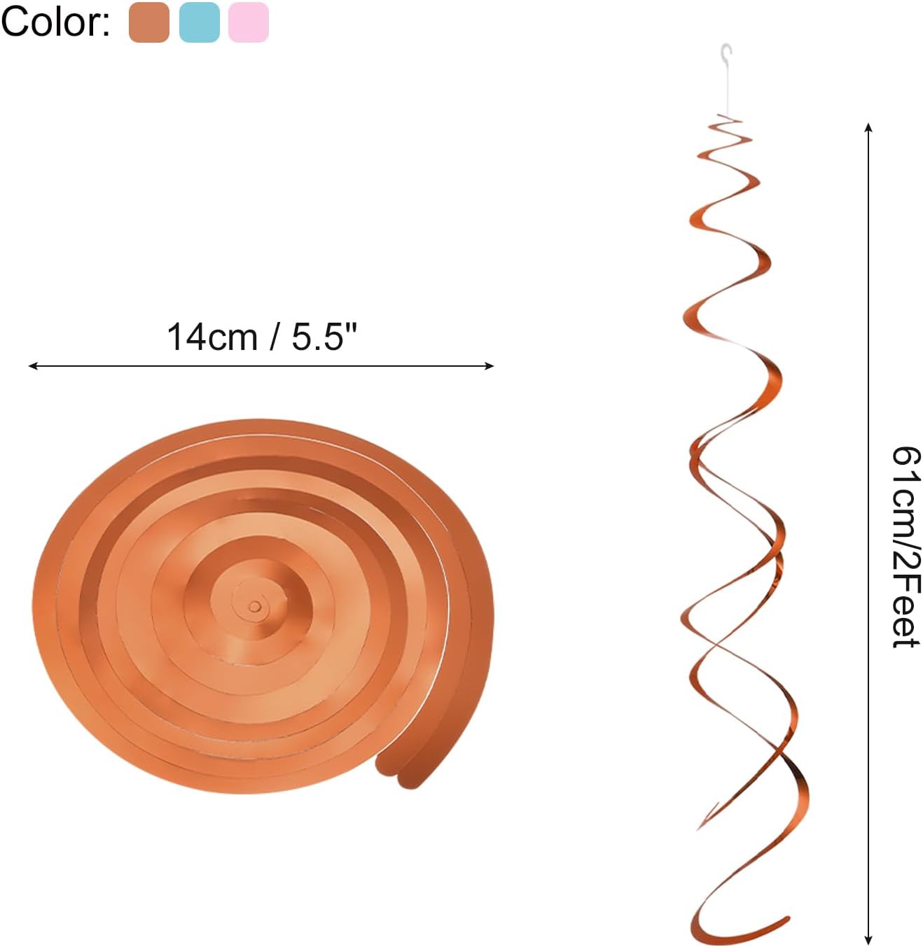 Queste stelle filanti da soffitto sono utilizzate principalmente per la decorazione di feste, puoi appendere o attaccare questi nastri decorativi su parete, finestra, porta o scaffale per aggiungere un'atmosfera diversa alla tua festa, principalmente utilizzati per compleanni, matrimoni, Natale, Pasqua, feste in maschera, feste di laurea e altre feste Materiale: PVC; colore: arancione, blu lago, rosa brillante; diametro di sospensione a spirale: 14 cm; lunghezza di sospensione: 61 cm. Durante l'installazione appendere il gancio di plastica sulla parte superiore della cintura appesa dove si desidera fissarla Queste decorazioni vorticose da appendere sono realizzate in PVC, non facili da piegare e rompere, e possono essere ripetute. Dopo che la festa è finita, basta toglierlo e lasciare che la spirale si pieghi su se stessa. La decorazione del soffitto con design a spirale, l'effetto è a spirale dopo essere appeso e la superficie è lucida, aggiungendo una varietà di decorazioni alla tua festa. Queste stelle filanti in plastica sono molto facili da usare, ogni striscia decorativa è dotata di un gancio di plastica sulla parte superiore, puoi appenderlo in qualsiasi luogo decorativo che desideri