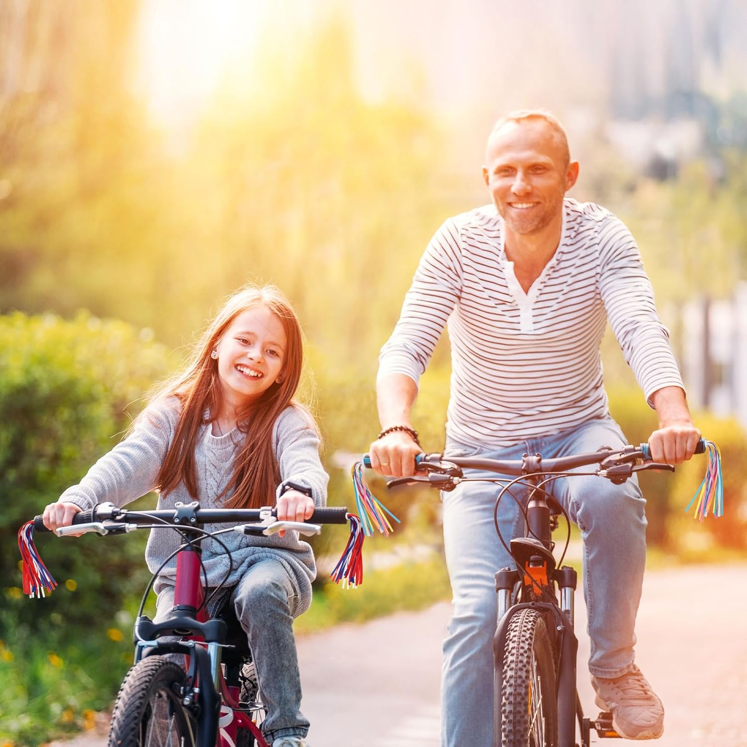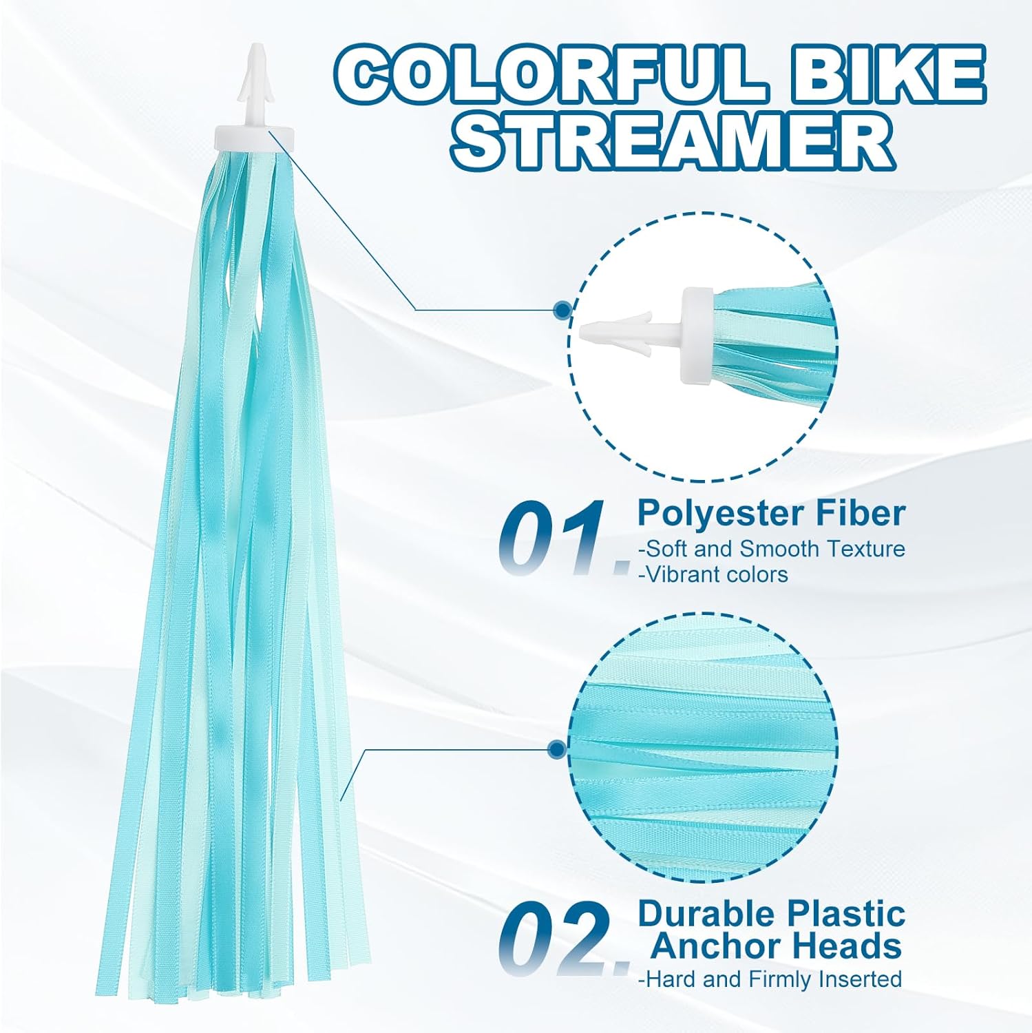Questi streamer colorati ed eleganti sono un'ottima decorazione per decorare la tua bicicletta, triciclo, scooter, ATV, ecc. Perfetti per la guida quotidiana, eventi speciali come compleanni, feste di laurea, festa dei bambini, gare ciclistiche, ecc., facendoti risaltare nel tuo festival speciale. Lo streamer per bicicletta fornisce qui: colore: azzurro; materiale: poliestere, diametro punta in plastica: 0,65 cm; dimensioni del pompon: 24 x 0,6 cm (L x L); lunghezza totale: 27 x 2,2 cm (L x L); lunghezza del manico in plastica: 2,2 cm. Contenuto della confezione: Confezione da 4 stelle filanti per biciclette Realizzati in fibra di poliestere, questi nastri per manubrio hanno una consistenza morbida e liscia e presentano colori vivaci che non sono facili da sbiadire, aggiungendo efficacemente fascino alle biciclette e rendendole aggraziate quando svolazzano nel vento. Le resistenti teste di ancoraggio in plastica sono abbastanza dure da poter essere inserite facilmente e saldamente nel foro del manubrio della bicicletta. La base e il nastro strettamente legati sono resistenti e non cadono facilmente, garantendo una lunga durata. Passaggi di installazione: facile da usare. Inserire la testa di ancoraggio in plastica nei fori del manubrio della bicicletta. La compatibilità universale garantisce un'installazione senza problemi, migliorando la tua esperienza utente. Controlla il diametro della punta prima dell'acquisto.