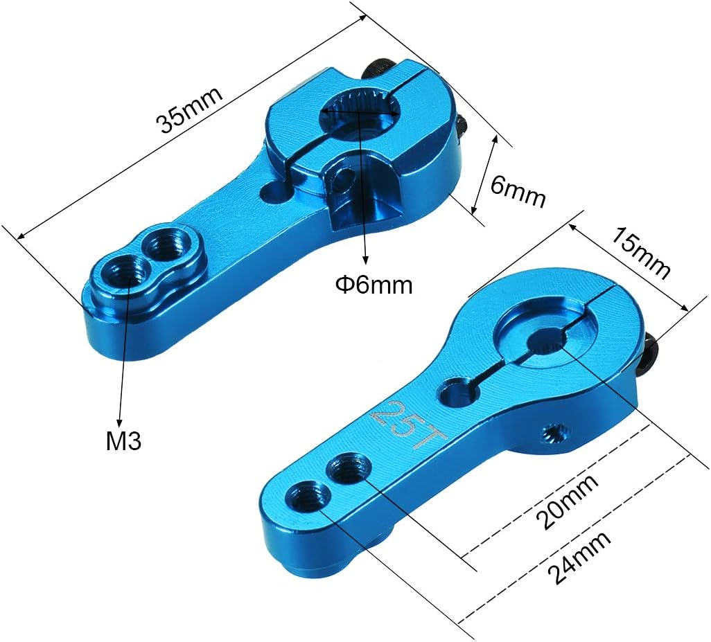 Squadre servo 25T per servi Futaba e Power HD. Braccio del servo regolabile con due viti in acciaio per fissare il morsetto diviso all'uscita del servo. Costruzione in alluminio duro per precisione e durata. Meglio della maggior parte del materiale plastico. La confezione include: corno servo in alluminio 5 pezzi x 25T