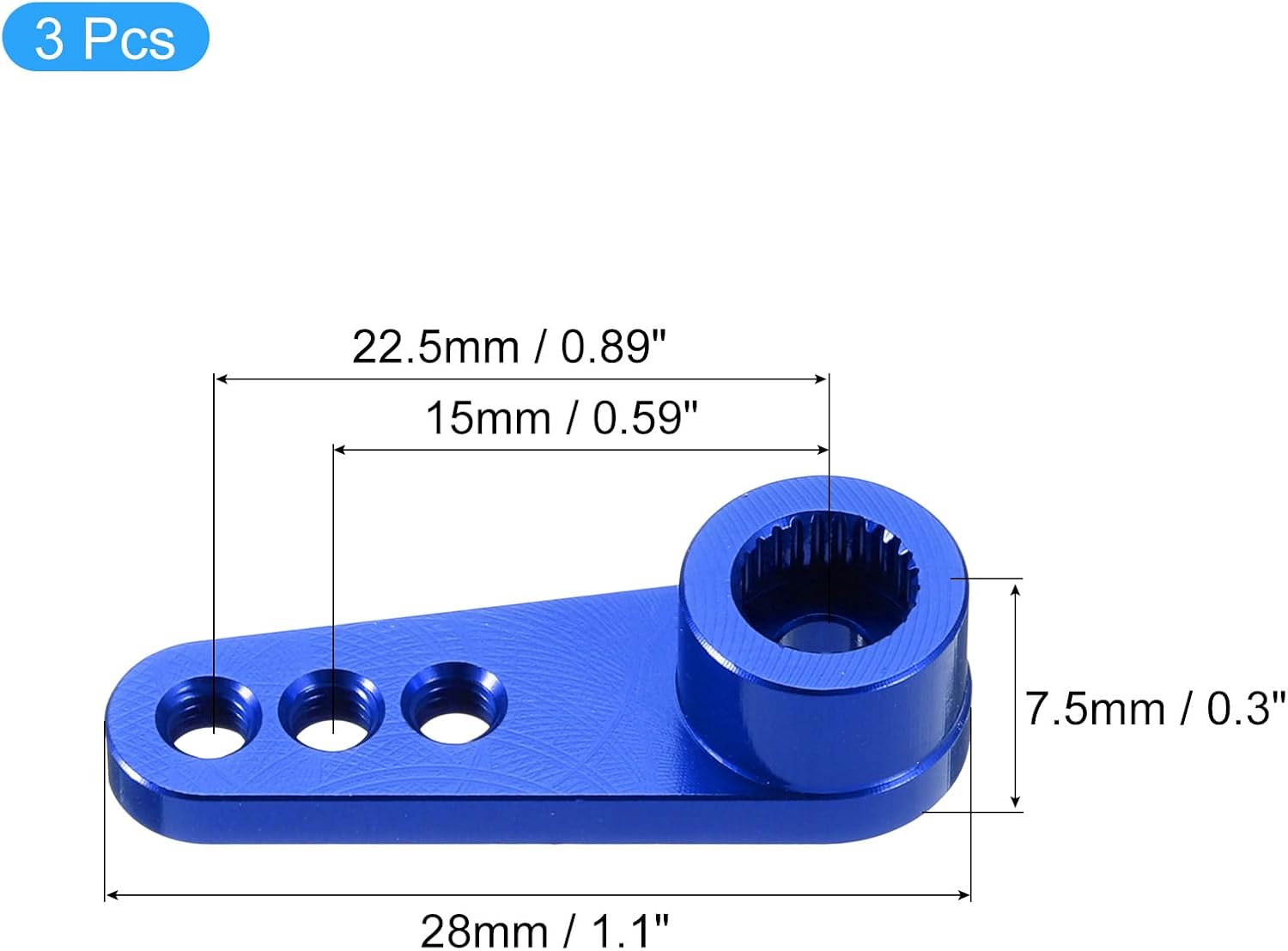 Lega di alluminio 25T Sterzo Servo Arm Horn per RC Car Large Torque Digital Coreless Servo parti. Lunghezza totale: 28 mm; spessore: 7,5 mm; distanza dal centro del foro (misurata dal centro del foro al centro del foro): lontano: 22,5 mm; vicino: 15 mm; apertura di montaggio: 3 mm; apertura di uscita: 6 mm. Materiale: lega di alluminio. Colore: Blu Scuro; Nella confezione di: 3 Pz x 25T Alluminio Servo Horn Alluminio lavorato CNC per la precisione. Include un bullone per fissare il morsetto diviso sull'uscita servo, costruzione in alluminio duro per precisione e durata. Rimuovere il servo clacson dal servo installato, collegare il collegamento dello sterzo al nuovo corno del servo, far scorrere il corno servo sull'albero di uscita e fissarlo con la vite centrale principale. La confezione include solo il servo Braccio 25T, i servi non sono inclusi.
