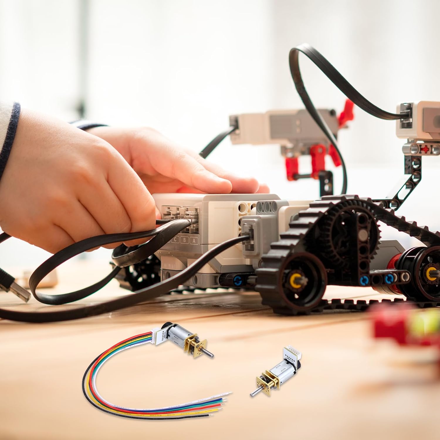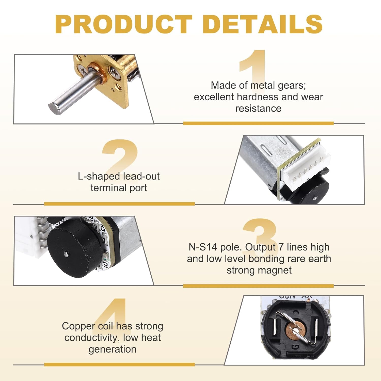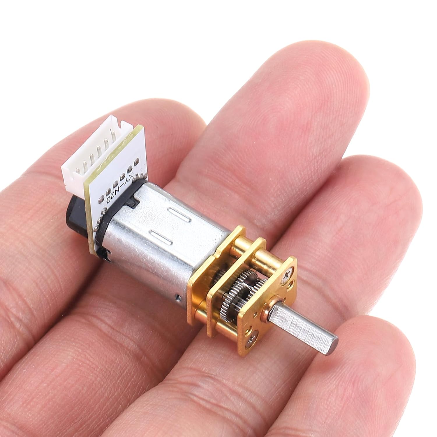 Il motoriduttore DC con encoder viene utilizzato principalmente nella tecnologia robotica. La combinazione di motoriduttore CC ed encoder può fornire un controllo preciso della posizione e un feedback della velocità, quindi è comunemente utilizzata nei sistemi di azionamento dei robot. Il micro motoriduttore può essere utilizzato anche in varie auto telecomandate e aerei telecomandati. Il motore del cambio con encoder può essere utilizzato in apparecchiature di automazione come porte automatiche, nastri trasportatori e macchine industriali per ottenere un controllo preciso del movimento e della posizione, ottenendo un funzionamento e un controllo precisi con rapporto di riduzione 1:10 Motoriduttore DC con encoder, motore di riduzione della velocità 0,1 A DC 3 V 750 giri/min, motore N20 a coppia elevata, diametro 3 mm e albero di uscita tipo 10 D mm. 40,5 x 12 x 10 mm (L x L x A). Dimensione totale del motore elettrico I micromotori con ingranaggi in metallo sono resistenti agli urti, durevoli, a basso rumore, eccellenti motori DC con spazzole con coppia elevata e bassa rumorosità, design compatto, prestazioni stabili, dimensioni ridotte, peso leggero e coppia elevata. I motoriduttori sono realizzati con ingranaggi in metallo, eccellente durezza e resistenza all'usura, evitano denti rotti, buona tenacità e resistenza agli urti. Questo motore N20 è realizzato in alluminio importato, resistente alla corrosione e non facile da arrugginire. Collegare il motore dell'encoder al controller corrispondente, assicurandosi di collegare correttamente i pin dell'encoder e del motore. Si prega di controllare la corrente e la tensione del motore prima dell'uso e non sovraccaricarlo.