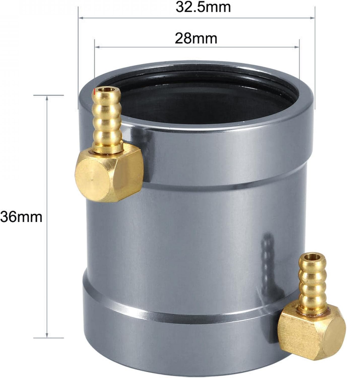 Diametro interno: ca. 28mm; Lunghezza: ca. 36mm; Dimensioni connettore: 4 mm x 2 mm x 8 mm (OD*ID*L). Pregevole fattura e facile da installare, soprattutto per motori RC con diametro di 28 mm. Presenta una buona dissipazione del calore, perfetta camicia di raffreddamento ad acqua per i motori. Realizzato in metallo di alta qualità, robusto, resistente all'usura, durevole ed ecologico. Il pacchetto include: 1 x giacca di raffreddamento ad acqua