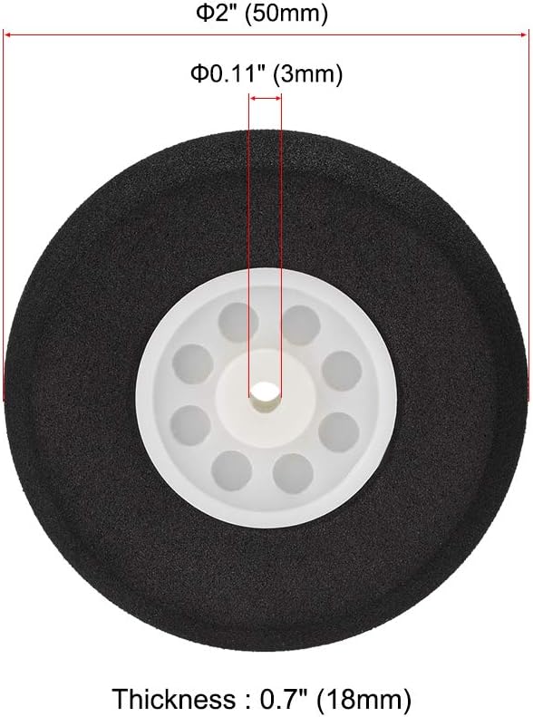 [SPECIFICHE] - Diametro esterno: 50 mm (2"); Spessore: 18 mm (0,7"); Diametro del foro dell'asse: 0,11" (3 mm). [APPLICAZIONE] - Compatibile con modelli RC fai-da-te, come giocattoli di aeroplani RC, elicotteri RC, macchinine, ecc. [VANTAGGIO] - Pneumatici in spugna neri lisci preassemblati. Queste ruote di aeromodelli RC conferiscono al tuo modello un aspetto sportivo. Sono progettate pensando ai modelli elettrici. [NOTA] - Nota: le riprese di luce e display diversi possono far sì che il colore dell'oggetto dell'immagine differisca leggermente da quello reale. [PACCHETTO INCLUSO] - 4 ruote per aeroplani RC da 2 pollici di diametro.
