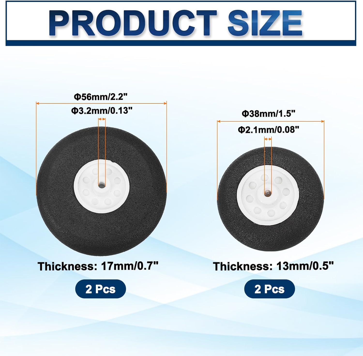 Queste ruote sono perfette per modelli di aeromobili RC, modelli RC fai da te, modelli di volantini interni e parchi, aerei RC, elicotteri RC, auto e così via. RC modello aereo ruota aeromobili è in dimensioni di: Diametro esterno: 38mm/1.5 pollici, 56mm/2.2 pollici; Spessore: 13mm/1.3cm, 17mm/0.7 pollici; Asse Diametro foro: 2.1mm/0.08 pollici, 3.2mm/0.13 pollici; Colore: Nero, Bianco; Materiale: Spugna, Nylon; Nel pacchetto di: 4 pezzi x RC Airplane Aircraft Ruote in spugna. (2 pezzi per ogni misura) 1. La sostituzione della ruota in schiuma è realizzata in spugna e nylon, ha una buona resistenza all'usura, è leggera, flessibile, non facile da deformare e facile da volare per il modello di aereo. 2. I nostri modelli di ruote per aerei sono progettati in varie dimensioni, adatti a tutti i modelli di aeromobili, compresi i modelli elettrici, aggiungendo un look sportivo al tuo modello. Design semplice e pratico, facile da installare e utilizzare. Nota: la luce e le diverse configurazioni dei monitor potrebbero far sì che il colore dell'articolo nella foto risulti un po' diverso da quello reale.