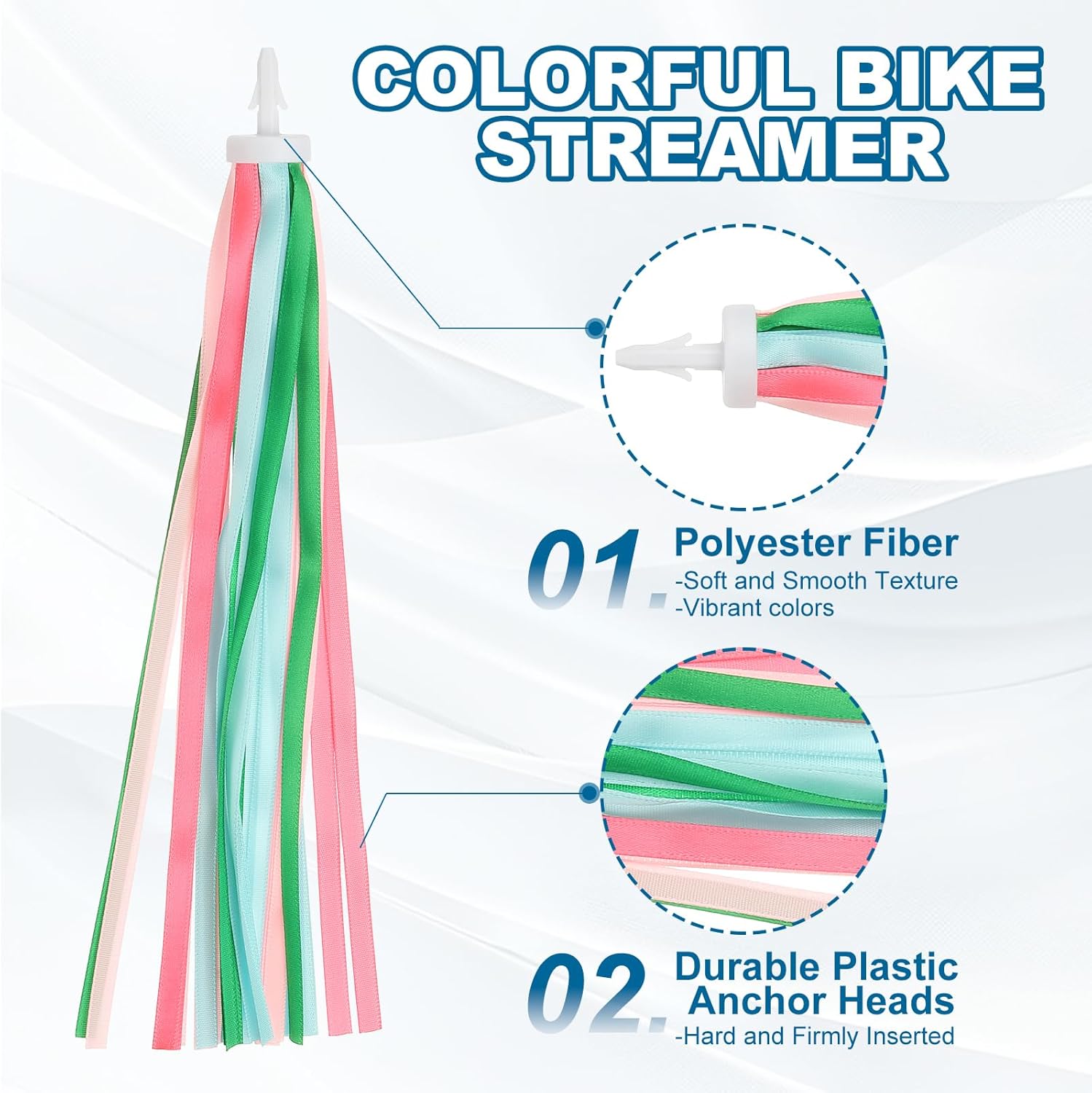 Questi streamer colorati ed eleganti sono un'ottima decorazione per decorare la tua bicicletta, triciclo, scooter, ATV, ecc. Perfetti per la guida quotidiana, eventi speciali come compleanni, feste di laurea, festa dei bambini, gare ciclistiche, ecc., facendoti risaltare nel tuo festival speciale. Lo streamer per bicicletta fornisce qui: colore: verde; materiale: poliestere, diametro punta in plastica: 0,65 cm; dimensioni del pompon: 24 x 0,6 cm (L x L); lunghezza totale: 27 x 2,2 cm (L x L); lunghezza del manico in plastica: 2,2 cm. Contenuto della confezione: Set di streamer per biciclette Realizzati in fibra di poliestere, questi nastri per manubrio hanno una consistenza morbida e liscia e presentano colori vivaci che non sono facili da sbiadire, aggiungendo efficacemente fascino alle biciclette e rendendole aggraziate quando svolazzano nel vento. Le resistenti teste di ancoraggio in plastica sono abbastanza dure da poter essere inserite facilmente e saldamente nel foro del manubrio della bicicletta. La base e il nastro strettamente legati sono resistenti e non cadono facilmente, garantendo una lunga durata. Passaggi di installazione: facile da usare. Inserire la testa di ancoraggio in plastica nei fori del manubrio della bicicletta. La compatibilità universale garantisce un'installazione senza problemi, migliorando la tua esperienza utente. Controlla il diametro della punta prima dell'acquisto.