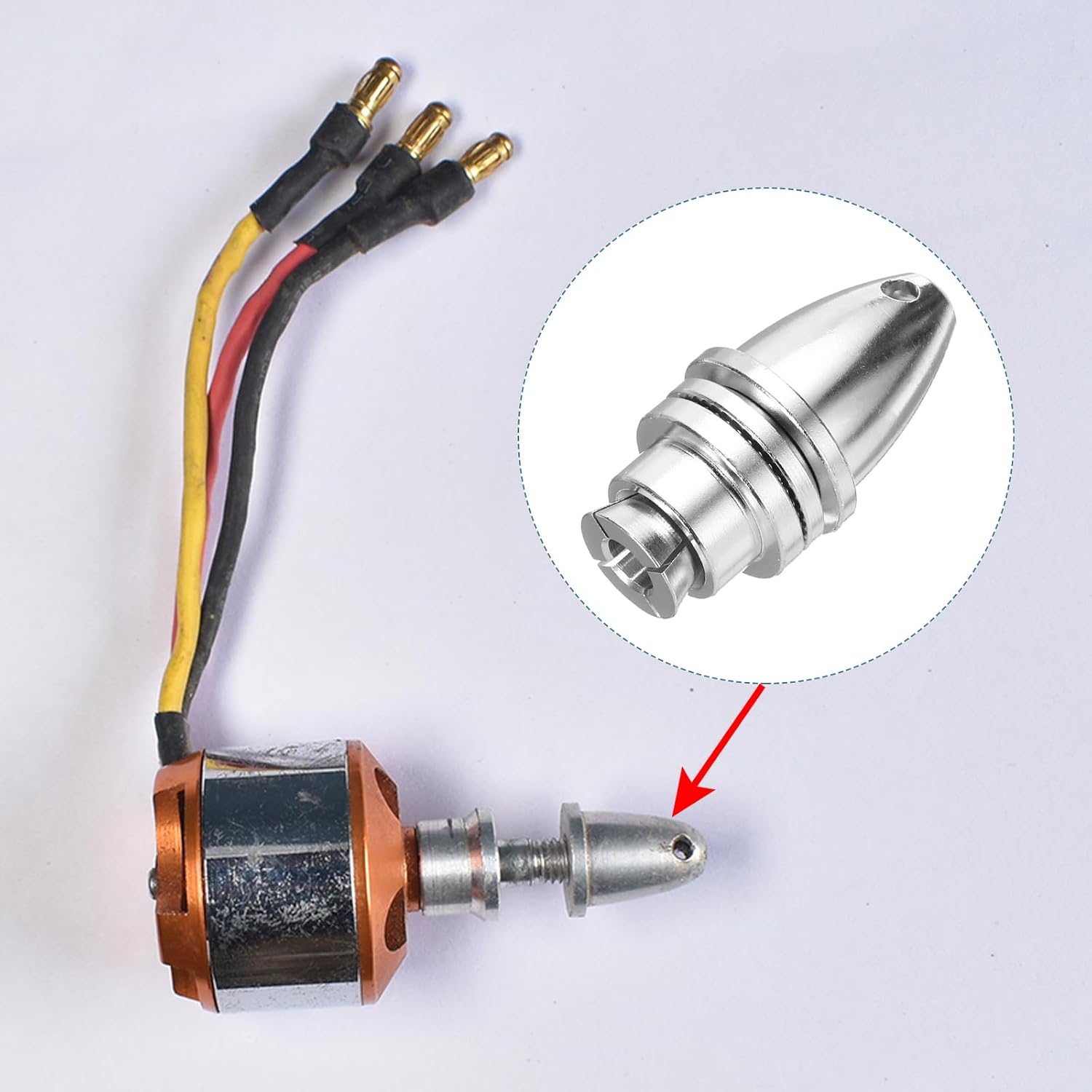 Questo adattatore per eliche per aeroplani RC è progettato per collegare in modo sicuro le eliche agli alberi dei motori brushless negli aeroplani telecomandati. Realizzato in alluminio leggero, garantisce una trasmissione di potenza stabile evitando che l'elica scivoli, ottimo per i costruttori di droni e gli appassionati di RC ad ala fissa. La confezione include 8 adattatori: apertura 8×5 mm e albero di uscita 8 mm; adatto per la maggior parte dei motori brushless e dei regolatori di velocità. Alluminio di buona qualità: combina leggerezza, durevolezza e resistenza alla corrosione per un uso a lungo termine; Design antiscivolo: superficie lavorata con precisione per migliorare la presa per evitare il distacco dell'elica in volo; Plug and Play: i fori preforati si allineano con le eliche standard per un'installazione rapida Seleziona il foro dell'adattatore per adattarlo all'albero del motore; far scorrere l'adattatore sull'albero del motore finché non è completamente inserito. Verificare sempre la compatibilità delle dimensioni del foro prima dell'installazione. Pulire regolarmente le superfici dell'adattatore per mantenere un attrito ottimale