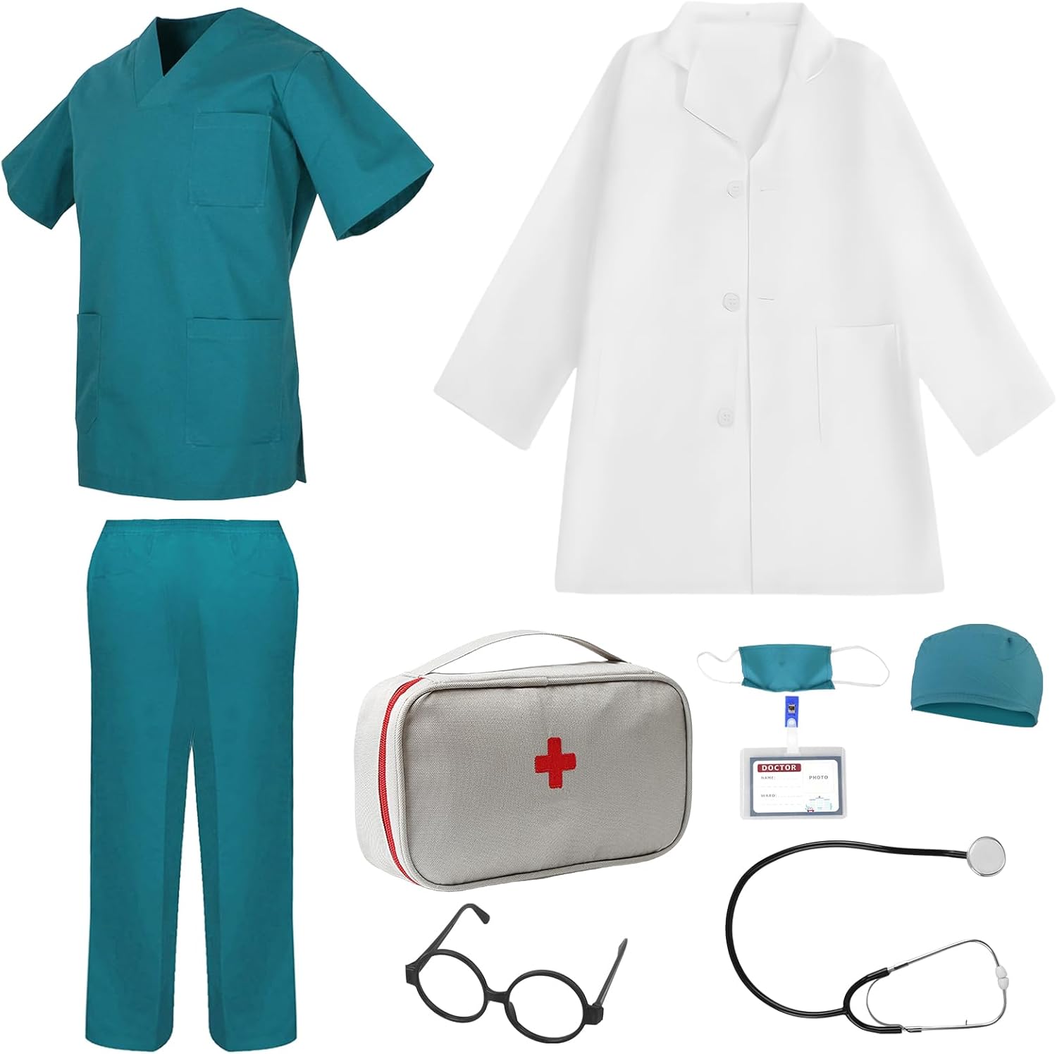 Set da gioco medico da 34 pezzi per bambini: il set contiene tutto ciò di cui hanno bisogno i piccoli medici: stetoscopio, termometro, siringa, pinzetta, borsa medica, camice e molto altro ancora. Giocattolo in legno di alta qualità: realizzato in legno robusto e infrangibile. Ecologico, durevole e sicuro, ideale per le mani dei bambini. Regalo perfetto a partire dai 3 anni: per Natale, compleanno o come sorpresa creativa, il set di valigie per medici è un regalo ideale per bambini a partire dai 3 anni. Stimola l'immaginazione e le abilità sociali: ideale per giochi di ruolo da soli o con gli amici. Supporta lo sviluppo emotivo, empatia e comunicazione. Facile da trasportare e riporre: tutte le parti possono essere riposte ordinatamente nella borsa medica in dotazione, perfetta per la casa e in viaggio.