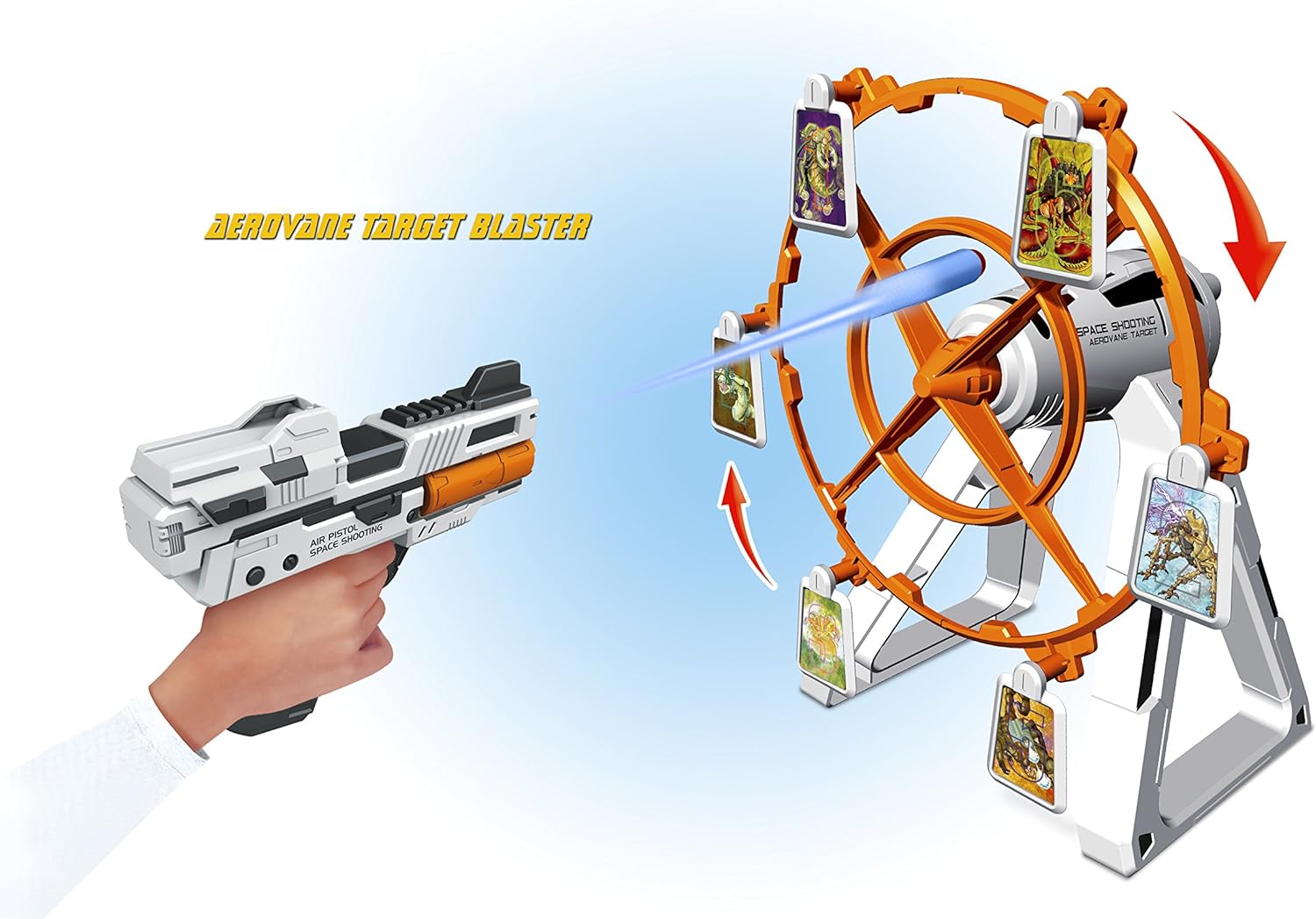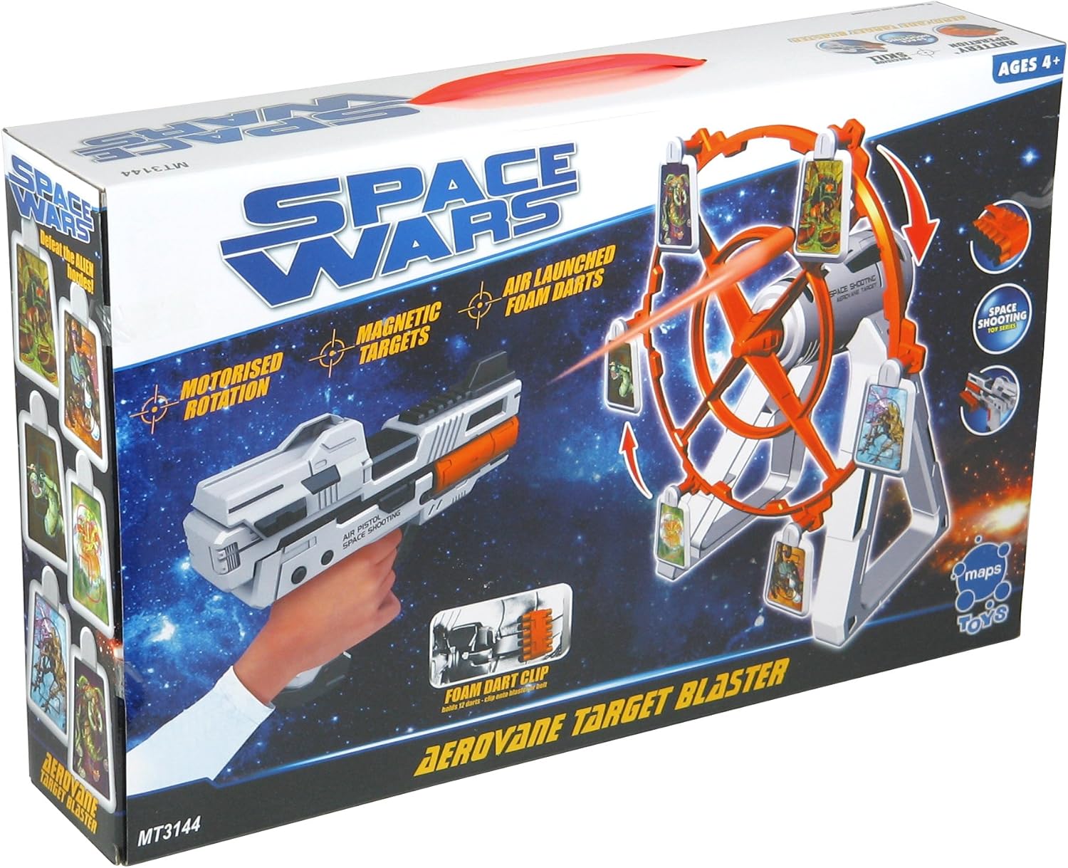 Rotazione motorizzata magnetica e obiettivi Include 1 Air Blaster 12 foam darts 'Funziona con 2 batterie AA – non incluse Adatto dai 4 anni