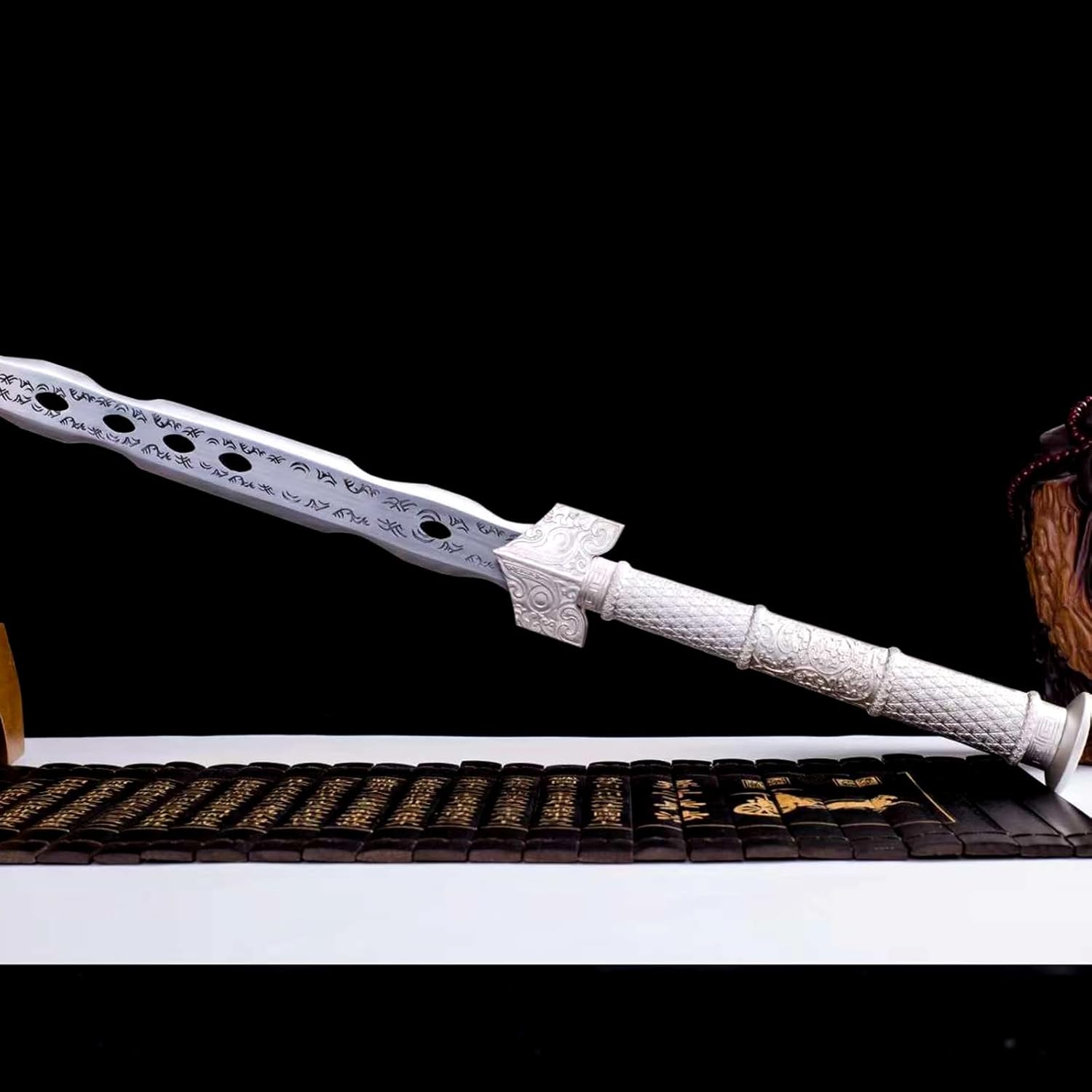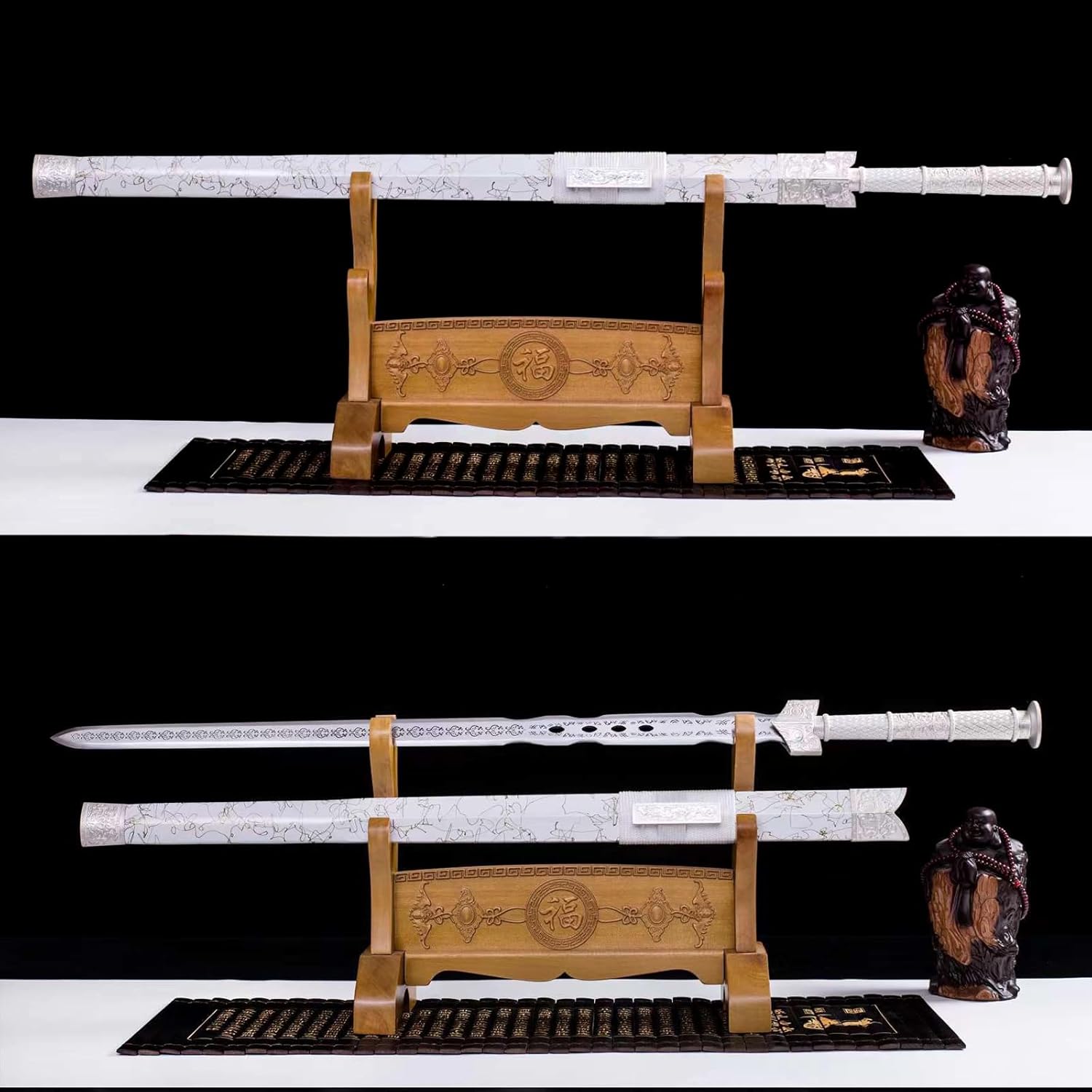 ❀ 【Materiale di alta qualità】: questa spada è realizzata in acciaio al manganese ad alte prestazioni con design cavo e squisiti motivi intagliati. La lama ha linee morbide e mostra la sua dinamica selvaggia. Il fodero è progettato in uno stile semplice, completa la katana e mostra l'eleganza della katana. ❀ 【Artigianato tradizionale】: ogni katana porta l'essenza dell'artigianato tradizionale. Dalla selezione dei materiali alla forgiatura, dall'affilatura alla tempra, ogni fase viene accuratamente lucidata dagli artigiani per garantire che ogni spada sia un'opera d'arte unica. Questa non è solo una spada, ma anche un pezzo di storia e patrimonio. ❀【Proporzioni perfette】: lunghezza totale 105 cm, lunghezza lama 75 cm, lunghezza impugnatura 25 cm, larghezza lama 3,7 cm. Proporzioni perfette e il giusto peso. Questo design garantisce comfort durante la presa e flessibilità durante l'oscillazione. ❀【Uso multiplo】: questa spada è adatta per essere collezionata ed esposta in varie occasioni. Sia nello studio, nel soggiorno, nell'ufficio o nello studio di arti marziali, può diventare una decorazione e un'esposizione unica. Non solo riflette il gusto e la personalità del proprietario, ma conferisce anche alla stanza un'atmosfera misteriosa e solenne. ❀【Design unico】: questa spada presenta un design unico che combina concetti estetici classici e moderni. La forma complessiva è potente ed elegante. Ogni spada è un capolavoro di artigianato unico e dimostra qualità e stile eccezionali.