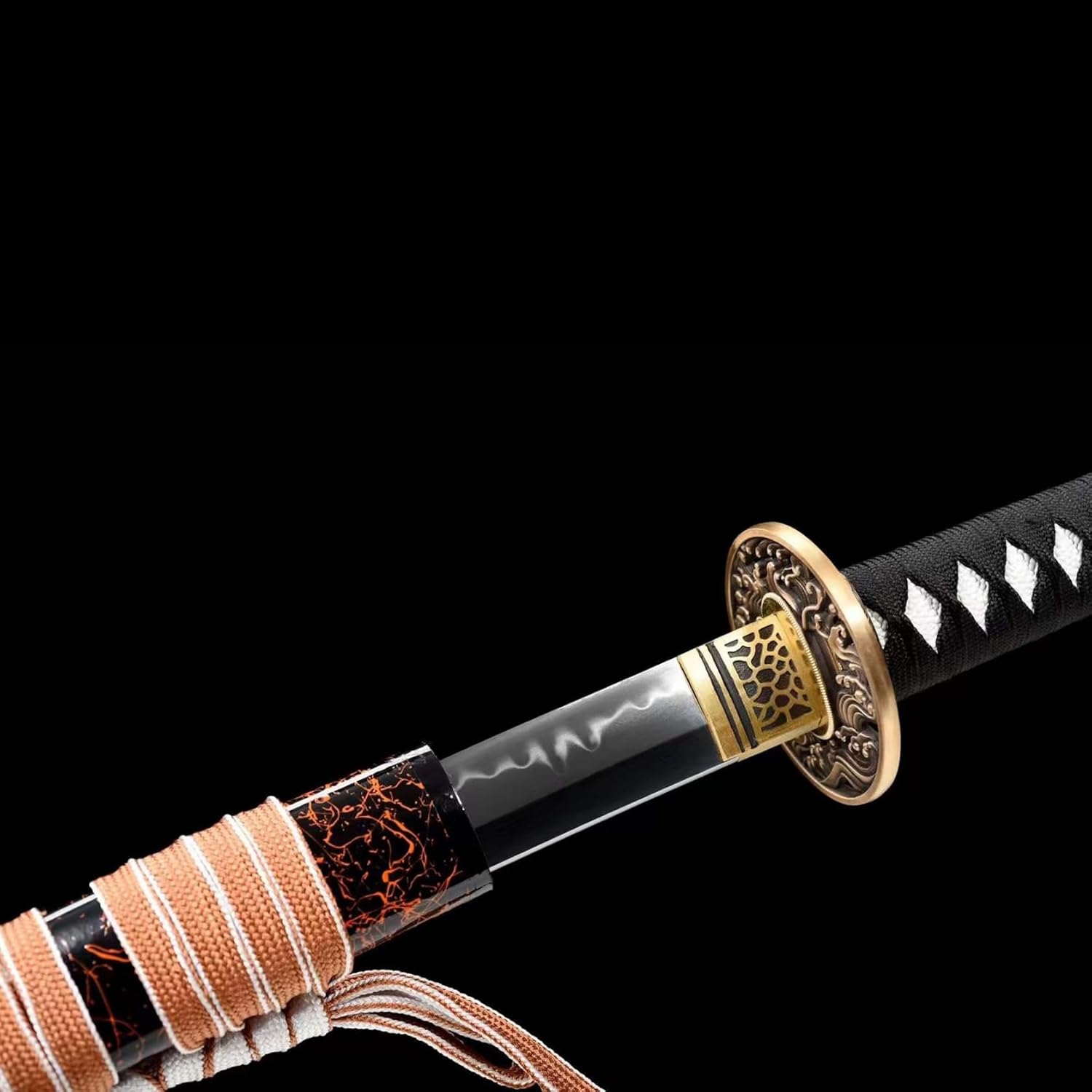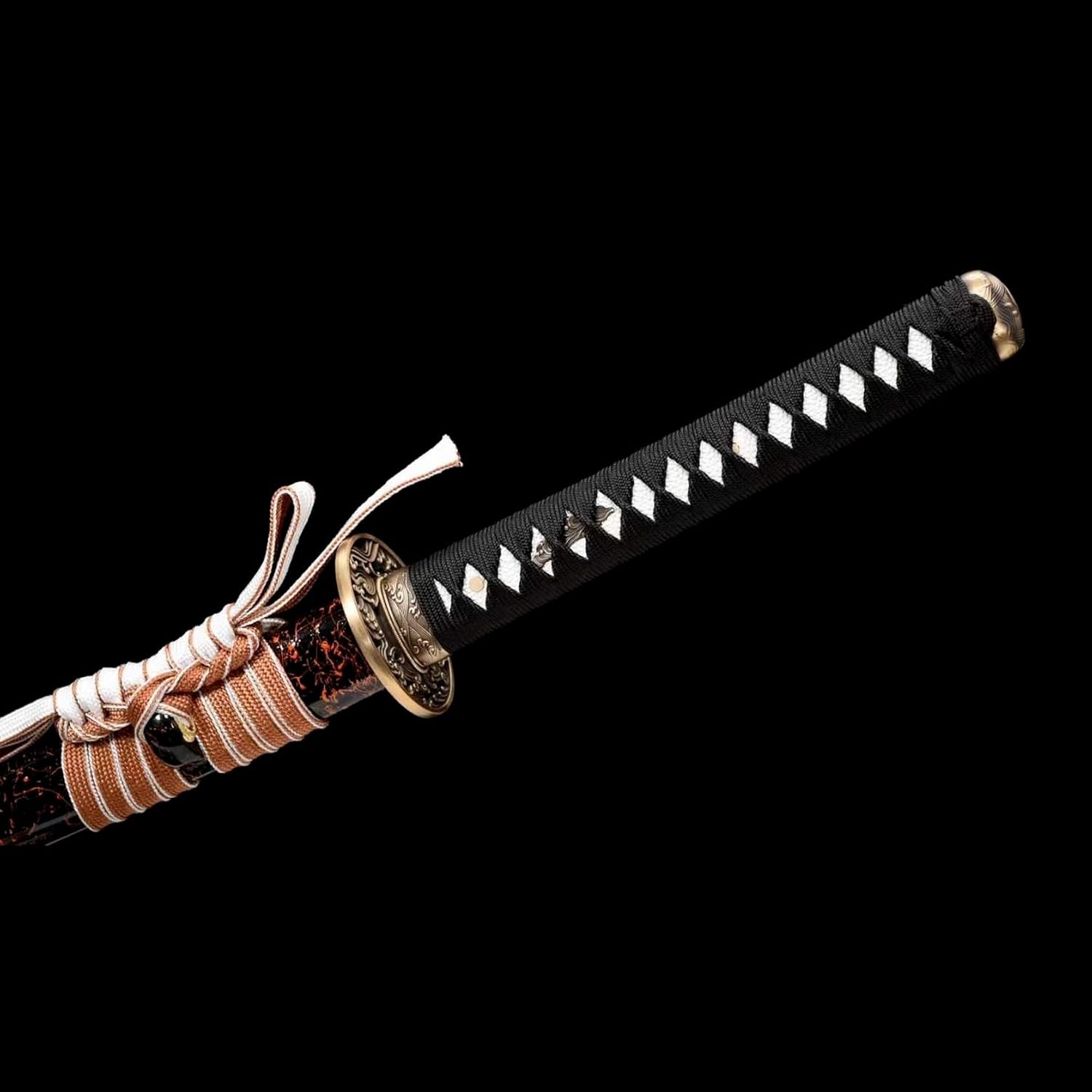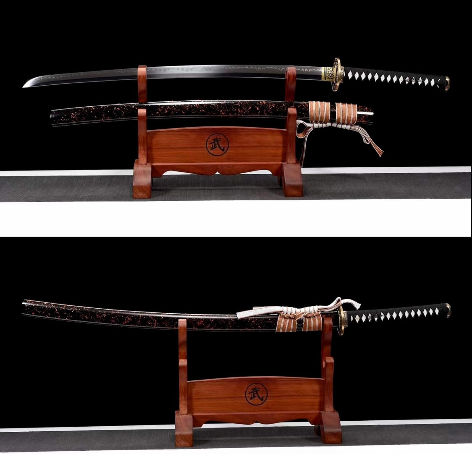 【Buon materiale】: la spada da samurai è realizzata in acciaio T10 di alta qualità ed è realizzata con cura attraverso dozzine di processi. La lama brilla come uno specchio ed è splendidamente coordinata con i motivi di fiamma sparati a mano. Il paramano è accuratamente scolpito in rame puro. Il lussuoso fodero è realizzato in raro legno di cipresso e progettato in uno stile semplice che mostra il suo nobile temperamento. Dimensioni: la lunghezza totale della katana con fodero è di 103 cm, la lunghezza della lama è di 71 cm, la lunghezza del manico è di 26 cm e la larghezza della lama è di 3,2 cm. È molto adatto per esercizi di combattimento con la spada o allenamento di arti marziali. L'impugnatura è progettata ergonomicamente per fornire una presa comoda e sicura per un controllo facile e agevole. 【Buon artigianato】: ogni katana porta l'essenza dell'artigianato tradizionale. Dalla selezione dei materiali alla forgiatura, dall'affilatura alla tempra, ogni passaggio viene accuratamente lucidato dagli artigiani per garantire che ogni coltello sia un'opera d'arte unica. Questo non è solo un coltello, ma anche un pezzo di storia e patrimonio. 【Bello e pratico】: il bellissimo aspetto della katana nasconde le sue eccellenti prestazioni! Perfetta combinazione di eleganza e potenza, questa katana è progettata pensando all'equilibrio e alla praticità, consentendo all'utente di maneggiarla facilmente per la massima potenza e ha una lunga durata per mantenere prestazioni stabili anche nel vivo della battaglia. 【Ampie applicazioni】: che tu sia un artista marziale esperto che vuole sviluppare le tue abilità o semplicemente un fan della cultura e della tradizione giapponese, questa spada soddisferà i tuoi desideri. Possiedilo adesso e lasciati ispirare dalla sua bellezza e potenza!