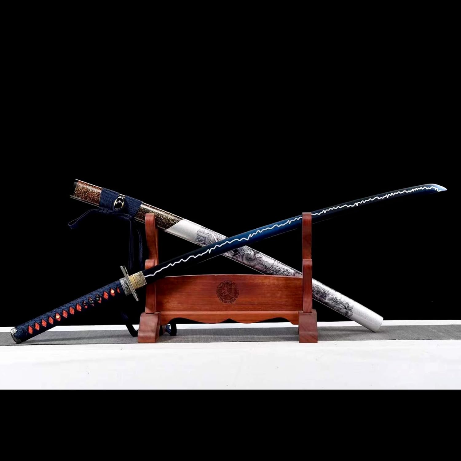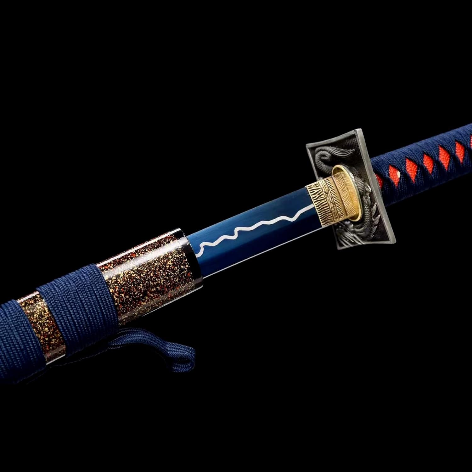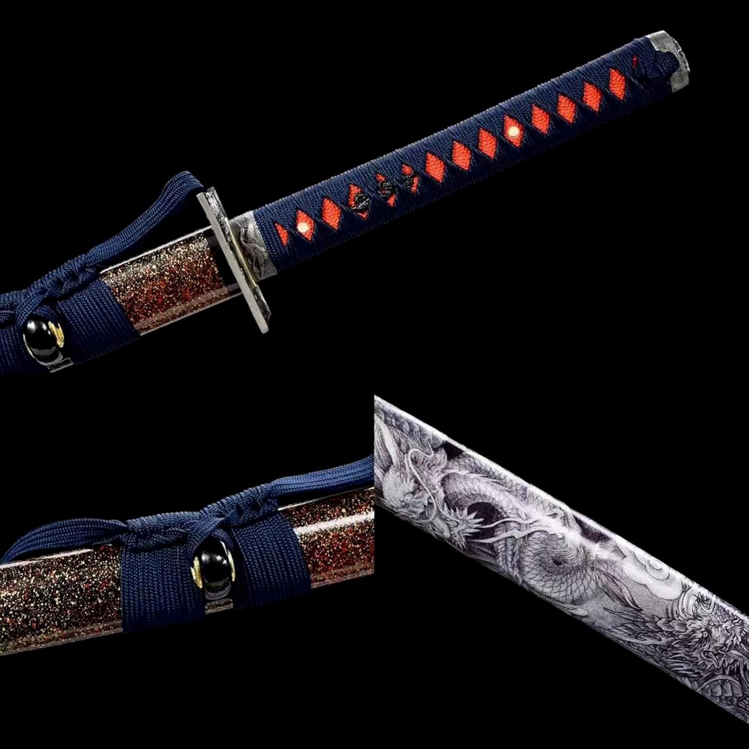 Questa katana è il lavoro perfetto di un abile fabbro e quindi ha un bell'aspetto! Questa bellissima katana è perfetta anche da collezionare o regalare ai tuoi amici. La katana viene fornita con un fodero in legno per riporre in sicurezza la lama. Il fodero è abbinato ad una corda delicata e morbida, conferendo alla katana un'estetica unica. La lama è realizzata in acciaio al manganese di alta qualità ed è prodotta utilizzando il tradizionale processo di forgiatura con una durezza fino a 60°. Forgiato e affilato a mano per creare una lama perfetta. Lunghezza totale 103 cm, lunghezza lama 71 cm, lunghezza manico 26,5 cm, larghezza lama 3,2 cm. Il design di queste dimensioni non solo soddisfa i tradizionali standard estetici della spada da samurai, ma tiene conto anche della comodità e della flessibilità dell'uso quotidiano. L'impugnatura è avvolta da una corda morbida che si adatta perfettamente al palmo della mano, è facile da impugnare e ha buone proprietà antiscivolo e resistenti all'usura, offrendoti il massimo comfort durante l'utilizzo.