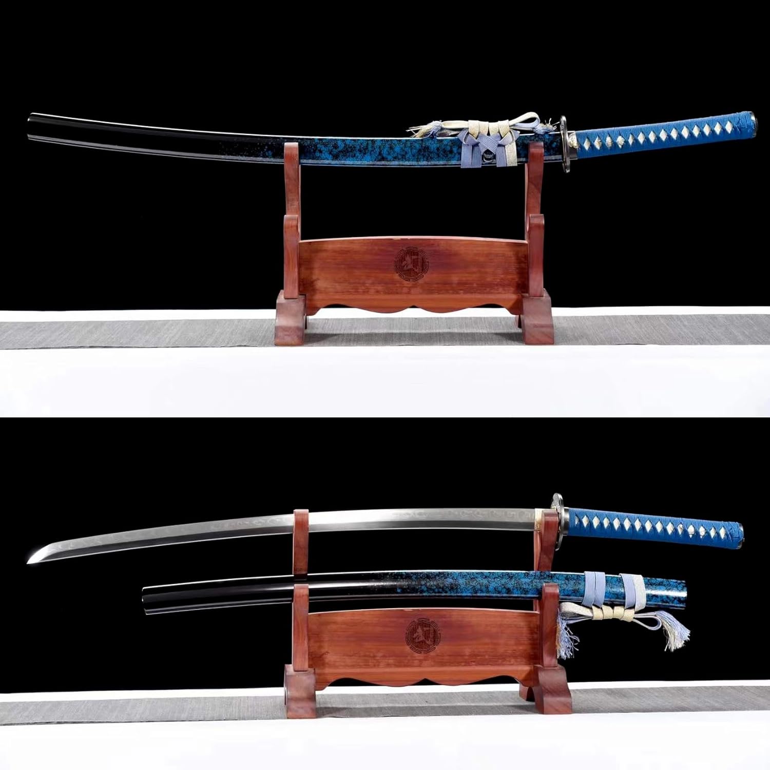 ❀ 【Materiale preferito】: le nostre lame per spada sono realizzate in acciaio T10, prodotte utilizzando la tecnologia delle lame coperte di terra e sparate a mano con modelli di lama unici. Il paramano è realizzato in rame puro, placcato in oro e argento e inciso con un'aquila, con lavorazione squisita. Il fodero è in legno naturale e la superficie è verniciata a spruzzo, conferendogli un aspetto semplice ed elegante. ❀【Artigianato tradizionale】: le spade dei samurai sono realizzate a mano da abili artigiani, forgiate con antiche tecniche di forgiatura tradizionali, molate e lucidate a mano, temprate e affinate in dozzine di processi, con buona tenacità, elevata durezza, tocco delicato, katana da collezione. ❀ 【Sensazione confortevole】: l'impugnatura è caricata manualmente con corda, antiscivolo e assorbe il sudore e ha una presa eccellente. Proporzioni perfette, peso moderato e struttura stabile garantiscono un divertimento unico durante l'allenamento di Kendo. ❀ 【Dimensioni standard】: la lunghezza totale della katana è di 103 cm, la lunghezza della lama è di 71 cm, la lunghezza del manico è di 26 cm, la larghezza della lama è di 3,2 cm e il peso è di circa 1,45 kg; il connubio perfetto tra eleganza e prestazioni insuperabili, flessibilità e praticità. ❀【Ampia applicazione】: questa katana non è adatta solo per essere esposta come collezione a casa o in ufficio, ma anche come giocattolo con cui le persone possono apprezzare e giocare. Inoltre, grazie al suo aspetto squisito e alla sua consistenza nobile, può anche essere regalato a parenti e amici per esprimere sentimenti speciali.