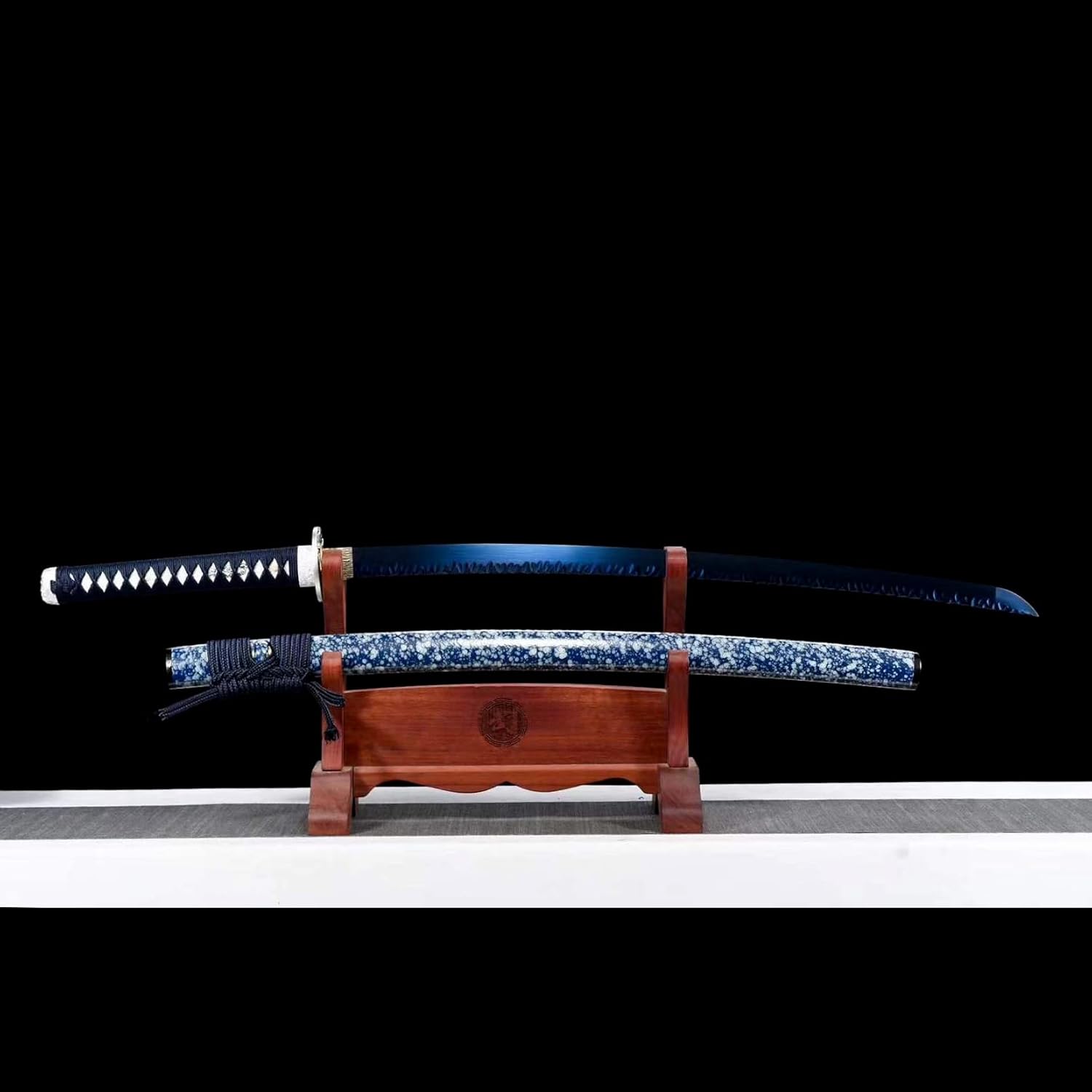 La lama è realizzata in acciaio al carbonio di alta qualità e adotta la tradizionale tecnologia di forgiatura. Forgiato e affilato a mano per creare una lama perfetta. La katana è dotata di un fodero in legno e l'esterno è verniciato a spruzzo, rendendola molto delicata e bella. Non solo protegge la lama da danni esterni, ma conferisce anche alla katana la sua bellezza unica. Lunghezza totale: 103 cm, lunghezza lama: 72 cm, lunghezza manico: 26 cm, spessore lama: 0,7 cm, larghezza lama: 3,2 cm, peso: 1,25 kg. Le proporzioni sono cruciali per la progettazione delle armi. Le proporzioni perfette non solo rendono la katana più bella, ma ne garantiscono anche la praticità e la funzionalità. Ogni katana porta con sé l'essenza dell'artigianato tradizionale. Dalla selezione dei materiali alla forgiatura, dall'affilatura alla tempra, ogni passaggio viene accuratamente lucidato dagli artigiani per garantire che ogni coltello sia un'opera d'arte unica.