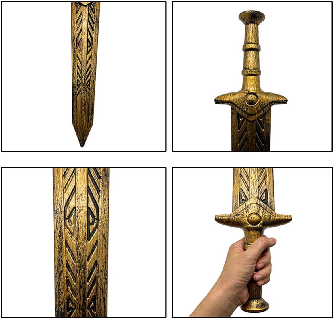 Spada costume in stile romano: puoi facilmente impugnare entrambi gli accessori insieme per un aspetto convincente da gladiatore. Domina l'arena proprio come i leggendari spartani! Dimensioni: la spada da 54 cm e lo scudo da 15,7 '' presentano un design realistico in stile romano e un robusto manico in gomma, garantendo una presa comoda in battaglie intense. Design dipinto a mano: progettata sia per uomini che per donne, la finta lama d'oro e il manico in oro decorato presentano una finitura dipinta a mano per imitare il vero metallo Leggera e sicura: realizzata in plastica resistente, questa spada garantisce una facile maneggevolezza pur mantenendo un aspetto autentico. Il che lo rende l'accessorio perfetto per la battaglia per qualsiasi costume da guerriero. Accessorio perfetto: questo set di alta qualità migliora il tuo ruolo di guerriero spartano, soldato romano, re greco, pirata. Ideale per feste a tema, giochi scolastici, eventi di ruolo!